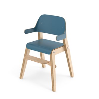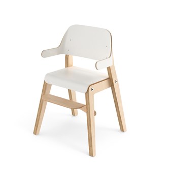 Färgkoordinerad med vårt övriga sortiment. Stativet är i vitpigmenterad björk och sits och rygg är i tåligt högtryckslaminat. Stolen är även försedd med tysta glidtassar för en lugnare miljö. Sits: B34 D28 cm. Höjd från golv till armstöd 52 cm.