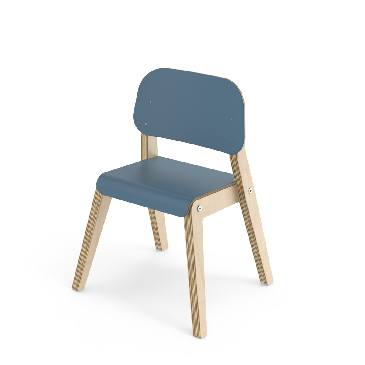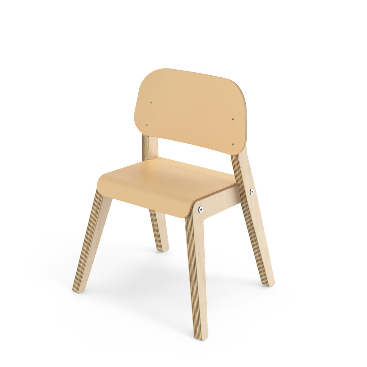 Grow har en cirkulär design där alla delar kan bytas ut, vilket ger en lång livstid. Benramen är av klarlackad björkplywood, och sits och rygg är av plywood med tåligt högtryckslaminat. Ryggstödet är mjukt skålat för att ge komfort och stöd. Den lätt bakåtlutade sitsen med sin rundade framkant ger en mjuk känsla och förebygger att barnet glider ner. Sitsen har inga skruvhål i ytskiktet vilket gör den enkel att torka av och hålla ren. Stolens sittdjup och sitthöjd är anpassade för barn 105-120 cm. Stapelbar upp till tre i höjd. Stolen uppfyller de höga kraven enligt standard EN 17191.