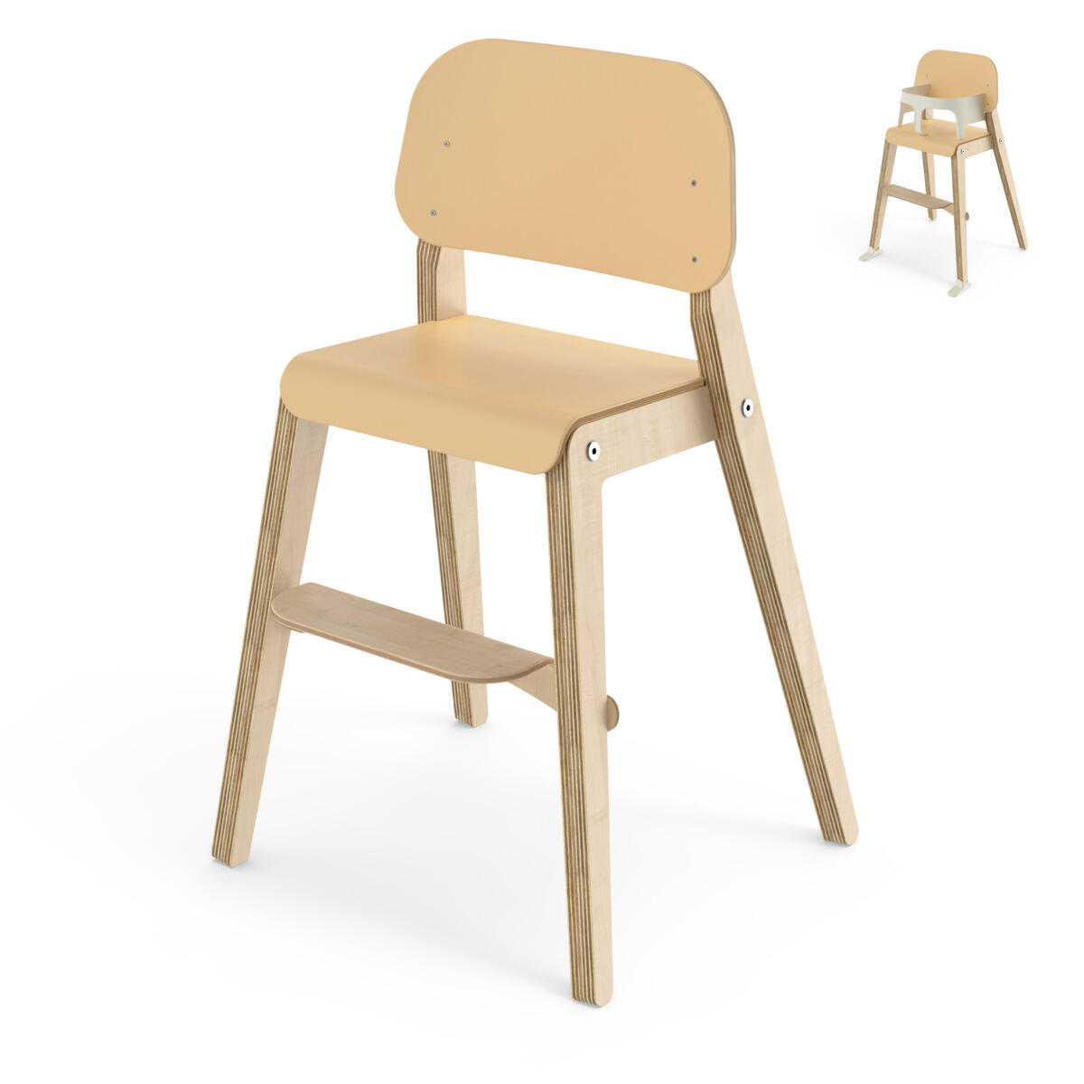Grow har en cirkulär design där alla delar kan bytas ut, vilket ger en lång livstid. Benramen är av klarlackad björkplywood, och sits och rygg är av plywood med tåligt högtryckslaminat. Ryggstödet är mjukt skålat för att ge komfort och stöd. Den lätt bakåtlutade sitsen med sin rundade framkant ger en mjuk känsla och förebygger att barnet glider ner. Sitsen har inga skruvhål i ytskiktet vilket gör den enkel att torka av och hålla ren. Stolens sittdjup och sitthöjd är anpassade för barn 80-120 cm. Fotstödet går att justera i fyra sitthöjder 15-30 cm, intervall om 5 cm. Stapelbar upp till tre i höjd. Stolen uppfyller de höga kraven enligt standard EN 17191.