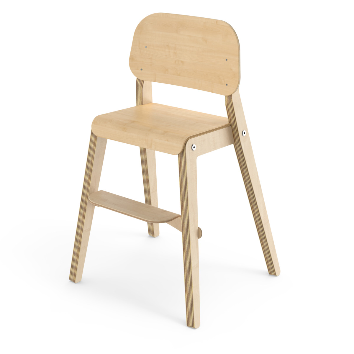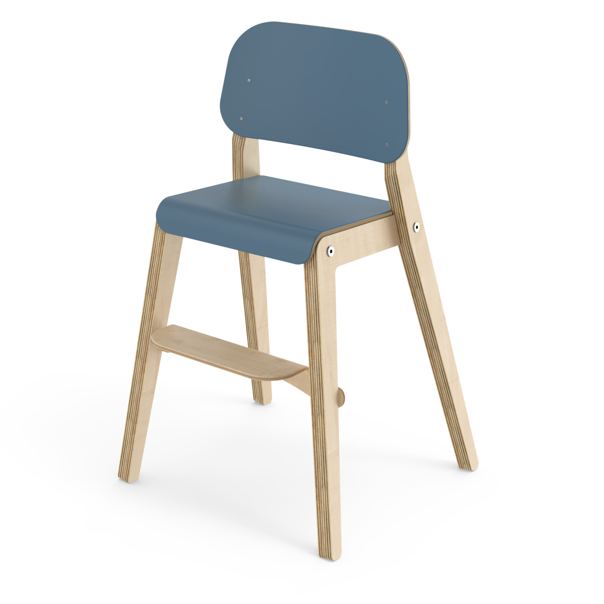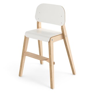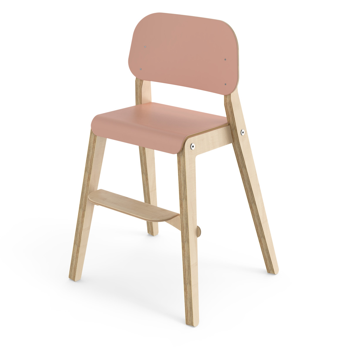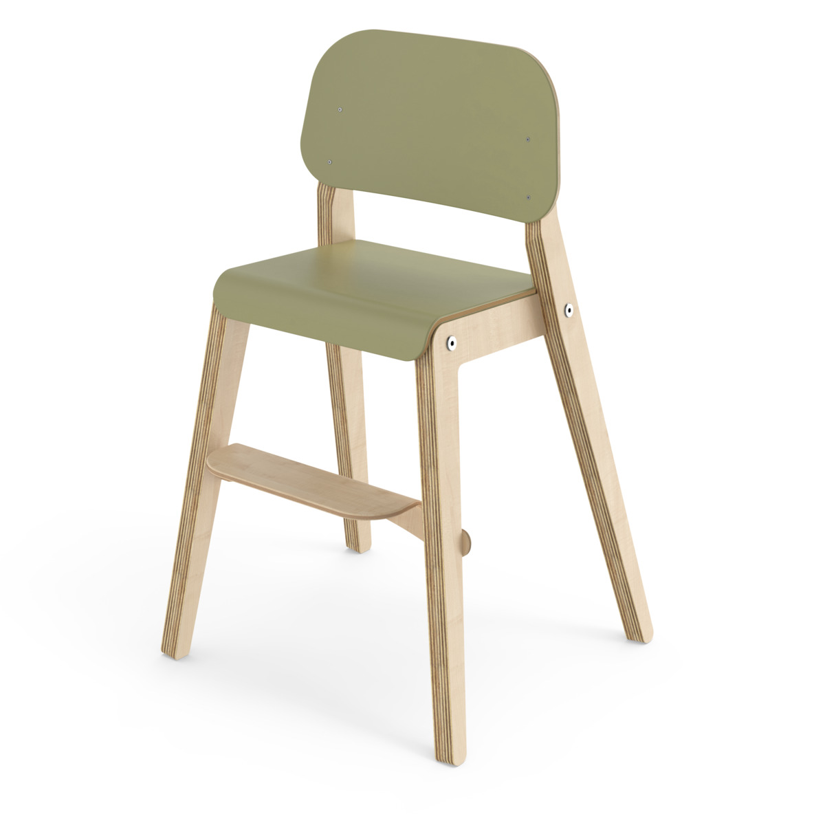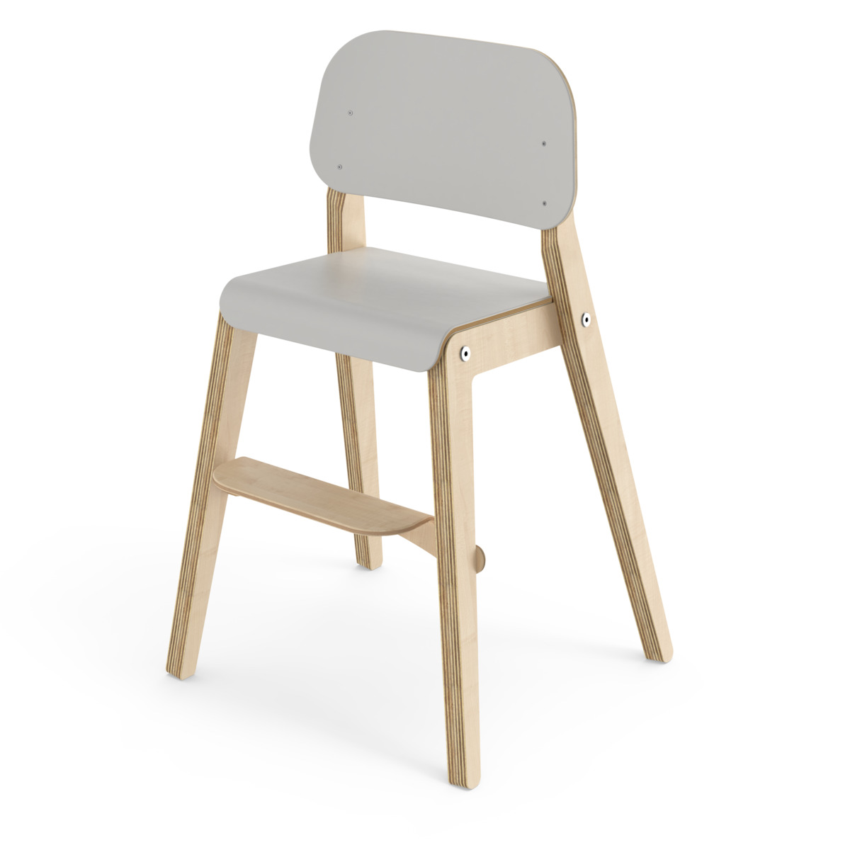 Grow har en cirkulär design där alla delar kan bytas ut, vilket ger en lång livstid. Benramen är av klarlackad björkplywood, och sits och rygg är av plywood med tåligt högtryckslaminat. Ryggstödet är mjukt skålat för att ge komfort och stöd. Den lätt bakåtlutade sitsen med sin rundade framkant ger en mjuk känsla och förebygger att barnet glider ner. Sitsen har inga skruvhål i ytskiktet vilket gör den enkel att torka av och hålla ren. Stolens sittdjup och sitthöjd är anpassade för barn 80-120 cm. Fotstödet går att justera i fyra sitthöjder 15-30 cm, intervall om 5 cm. Stapelbar upp till tre i höjd. Stolen uppfyller de höga kraven enligt standard EN 17191.