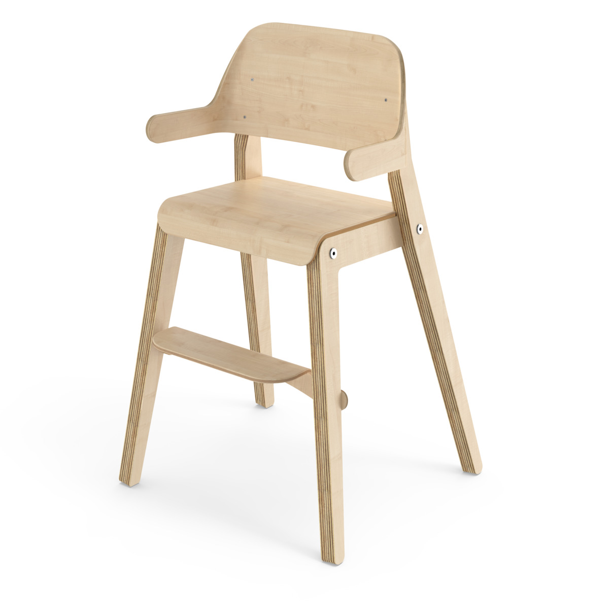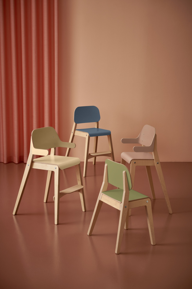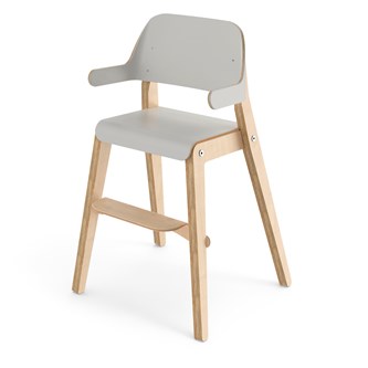 Grow har en cirkulär design där alla delar kan bytas ut, vilket ger en lång livstid. Benramen är av klarlackad björkplywood, och sits och rygg är av plywood med tåligt högtryckslaminat. Ryggstödet är mjukt skålat för att ge komfort och stöd. Den lätt bakåtlutade sitsen med sin rundade framkant ger en mjuk känsla och förebygger att barnet glider ner. Sitsen har inga skruvhål i ytskiktet vilket gör den enkel att torka av och hålla ren. Stolens sittdjup och sitthöjd är anpassade för barn 80-120 cm. Fotstödet går att justera i fyra sitthöjder 15-30 cm, intervall om 5 cm. Stapelbar upp till tre i höjd. Stolen uppfyller de höga kraven enligt standard EN 17191.