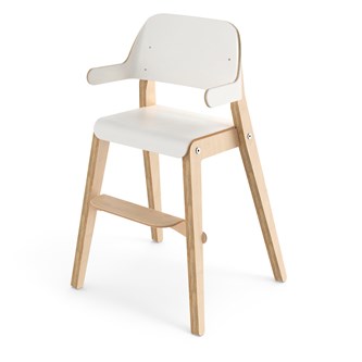 Grow har en cirkulär design där alla delar kan bytas ut, vilket ger en lång livstid. Benramen är av klarlackad björkplywood, och sits och rygg är av plywood med tåligt högtryckslaminat. Ryggstödet med armstöd är mjukt skålat för att ge barnet extra komfort och stöd. Den lätt bakåtlutade sitsen med sin rundade framkant ger en mjuk känsla och förebygger att barnet glider ner. Sitsen har inga skruvhål i ytskiktet vilket gör den enkel att torka av och hålla ren. Stolens sittdjup och sitthöjd är anpassade för barn 80-120 cm. Fotstödet går att justera i fyra sitthöjder 15-30 cm, intervall om 5 cm. Stapelbar upp till tre i höjd. Stolen uppfyller de höga kraven enligt standard EN 17191.