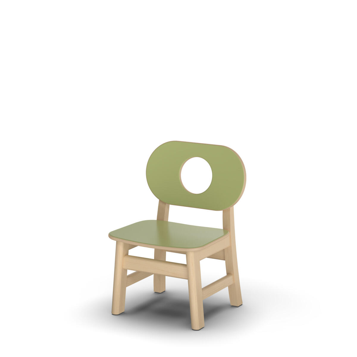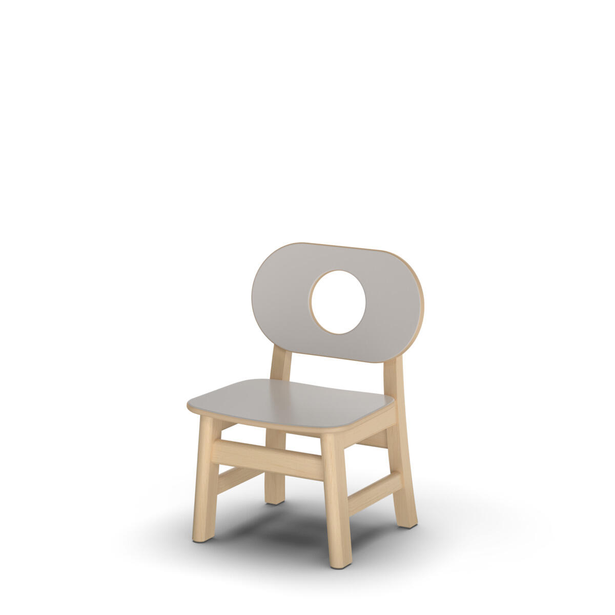Grow har en cirkulär design där alla delar kan bytas ut, vilket ger en lång livstid. Benramen är av klarlackad björkplywood, och sits och rygg är av plywood med tåligt högtryckslaminat. Ryggstödet är mjukt skålat för att ge komfort och stöd. Den lätt bakåtlutade sitsen med sin rundade framkant ger en mjuk känsla och förebygger att barnet glider ner. Sitsen har inga skruvhål i ytskiktet vilket gör den enkel att torka av och hålla ren. Stolens sittdjup och sitthöjd är anpassade för barn 80-120 cm. Fotstödet går att justera i fyra sitthöjder 15-30 cm, intervall om 5 cm. Stapelbar upp till tre i höjd. Stolen uppfyller de höga kraven enligt standard EN 17191.