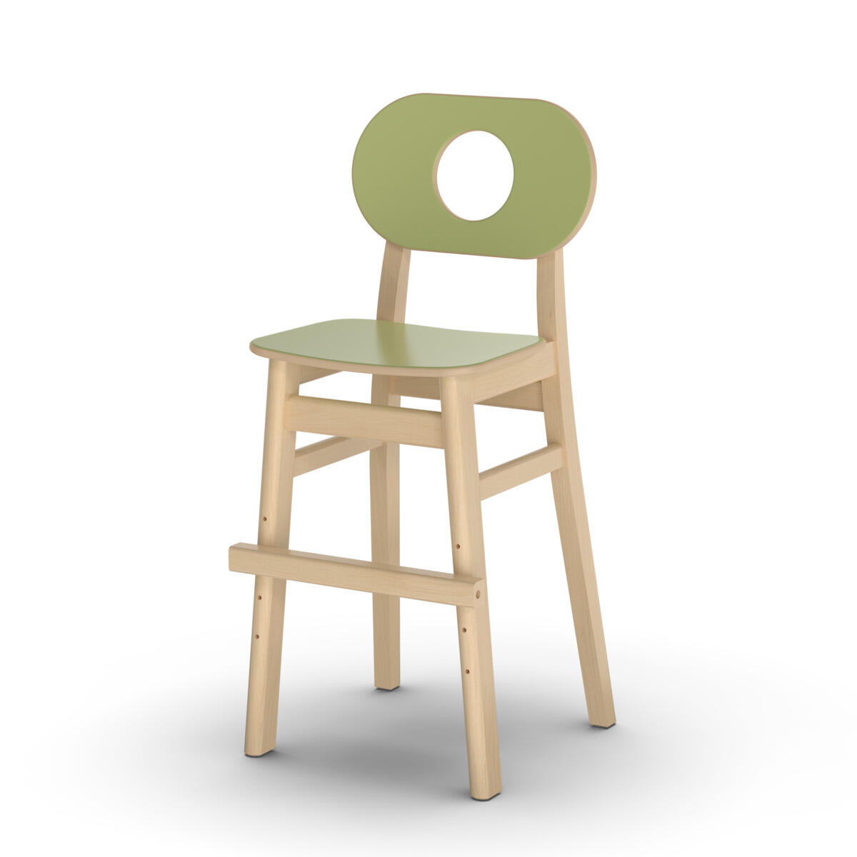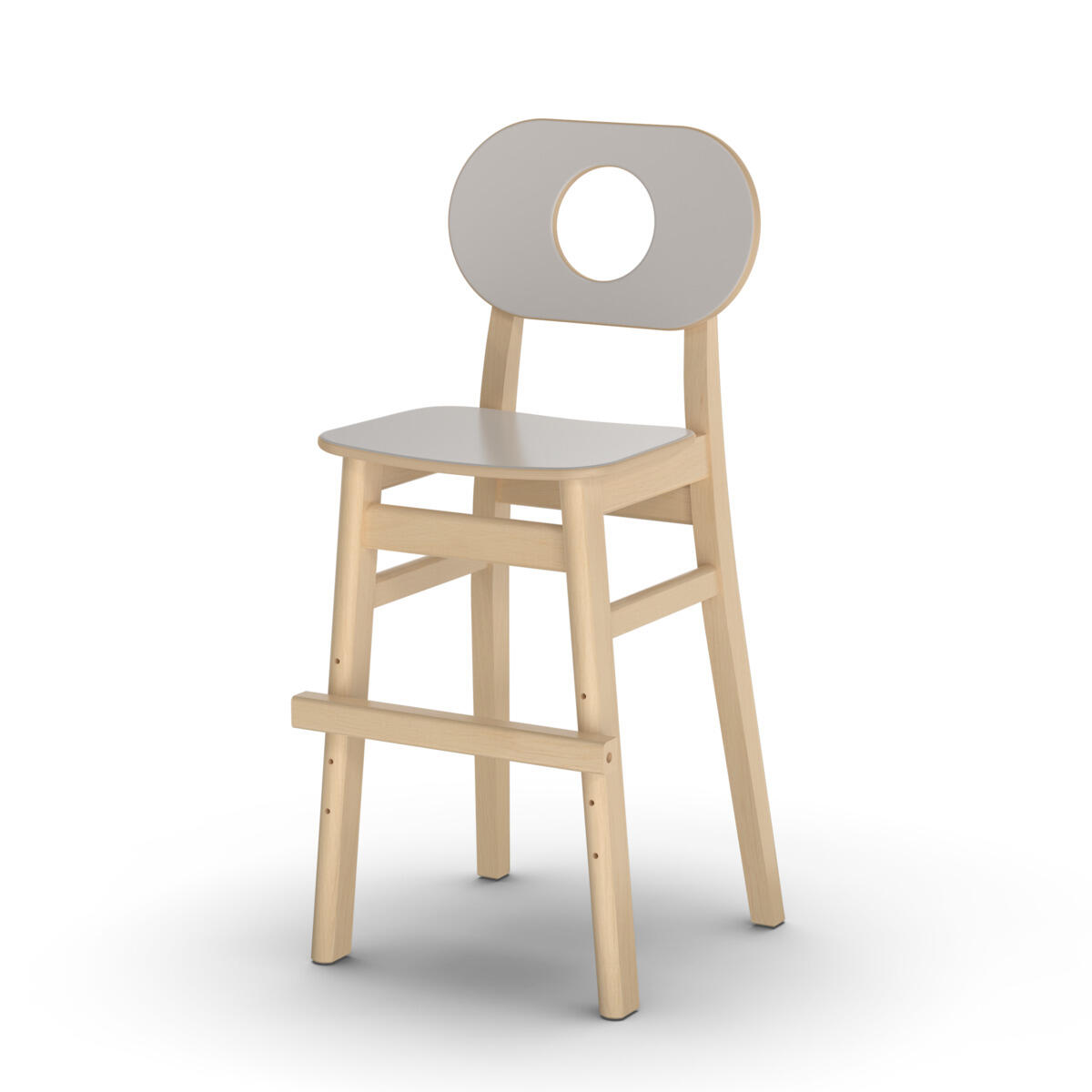 Grow har en cirkulär design där alla delar kan bytas ut, vilket ger en lång livstid. Benramen är av klarlackad björkplywood, och sits och rygg är av plywood med tåligt högtryckslaminat. Ryggstödet är mjukt skålat för att ge komfort och stöd. Den lätt bakåtlutade sitsen med sin rundade framkant ger en mjuk känsla och förebygger att barnet glider ner. Sitsen har inga skruvhål i ytskiktet vilket gör den enkel att torka av och hålla ren. Stolens sittdjup och sitthöjd är anpassade för barn 80-120 cm. Fotstödet går att justera i fyra sitthöjder 15-30 cm, intervall om 5 cm. Stapelbar upp till tre i höjd. Stolen uppfyller de höga kraven enligt standard EN 17191.