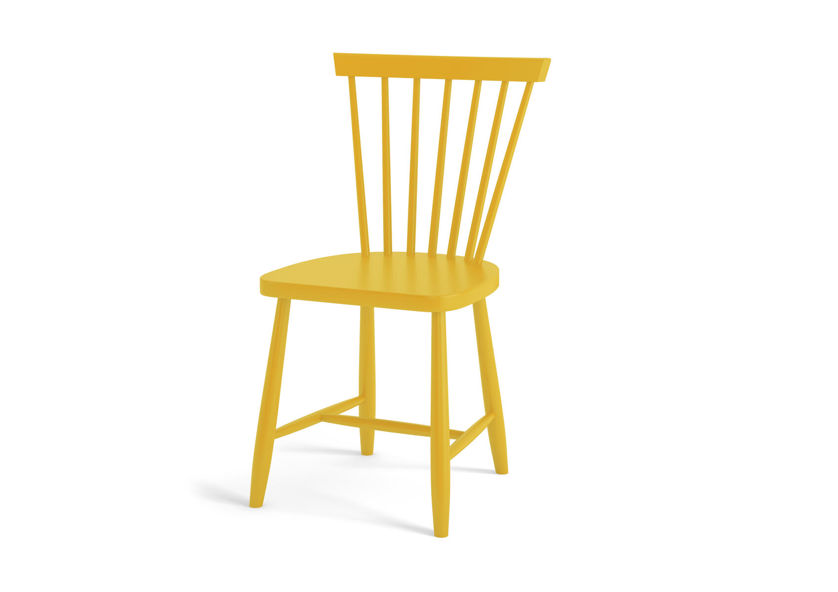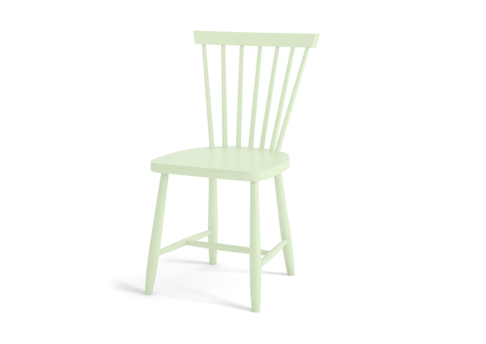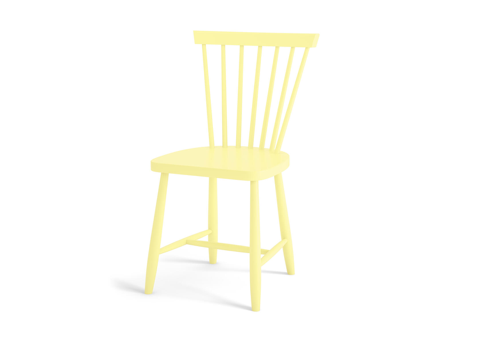 En klassisk pinnstol i My-familjen. Armstöden gör det möjligt att hänga upp stolen på bordet. Massiv björk. Vid färgval björk är stolen klarlackad, övriga färger är täckmålade. Uppfyller kraven enligt standard EN 16139:2013.