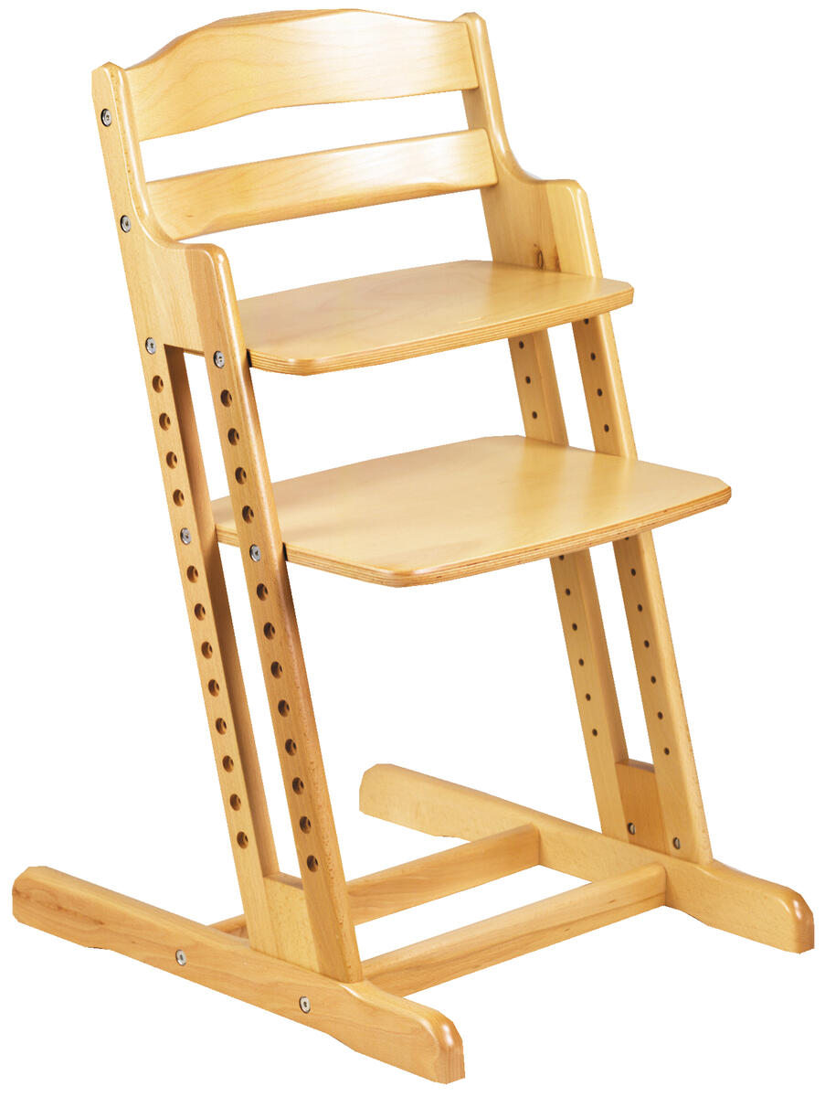 Kiddo är en stol som erbjuder en bekväm och ergonomisk sittställning oavsett ålder. Designen ger barnen en större rörelsefrihet. Fot- och sittbräda kan flyttas och justeras i både höjdled och djup så att stolen växer med barnet. Principen går ut på att skapa ett mer aktivt sittande genom att öka höftvinkeln och föra över en del av belastningen från rygg till ben. Björk, klarlackerad. Stolen samt tillbehör är testad och godkänd enligt lagstadgad säkerhetsstandard för högstolar, EN 14988. Detta EU-krav fokuserar på stabilitet, tipprisk och hålrum. Produkten är avsedd för barn upp till 8 års ålder eller till en vikt av max 60 kg och som kan sitta själva.