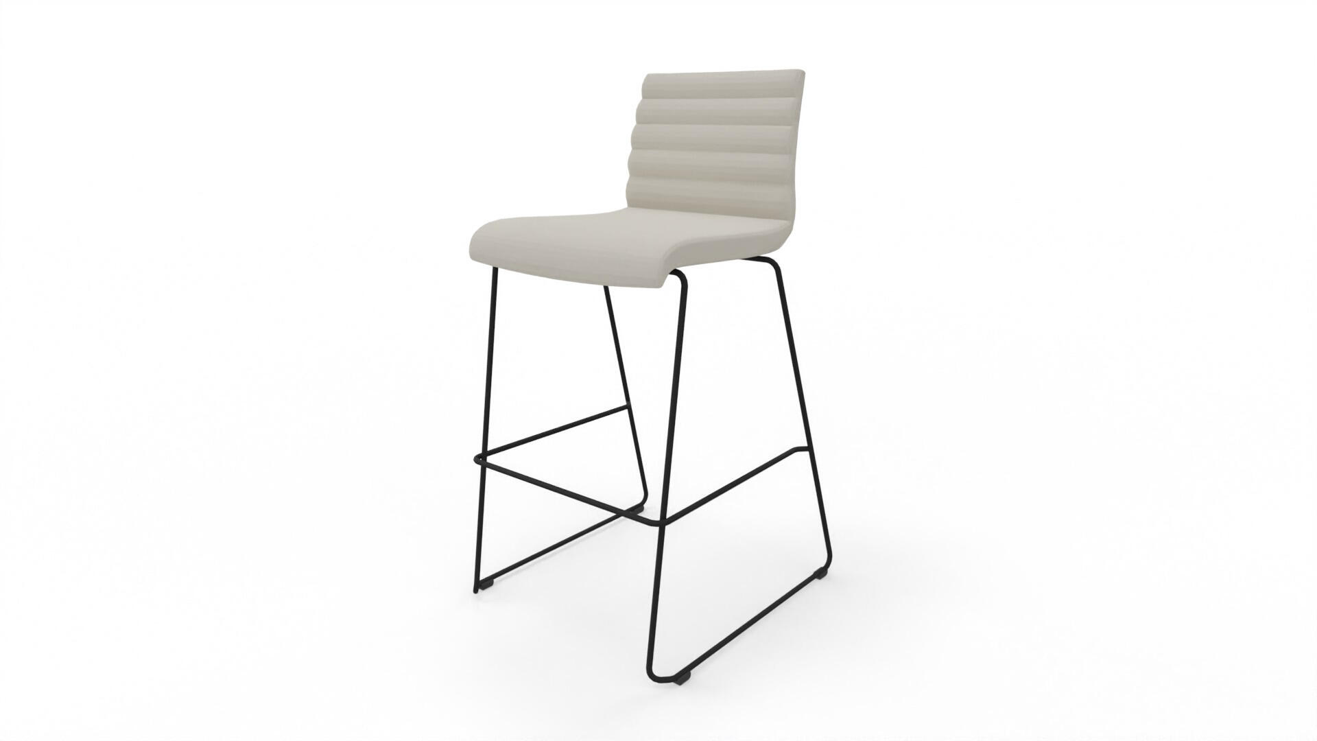 Stilren och komfortabel barstol för lunch-, konferens- och mötesrum. Den har en quiltad rygg och en sittdel av formpressad faner klädd med kallskum, vilket ger både komfort och stöd. Stabilt pulverlackat medstativ av ø 11 mm rör med filtbelagda möbeltassar för att skydda golvet. Stolen är stapelbar, max 5 i höjd. Fotstöd placerat 30 cm från golv.