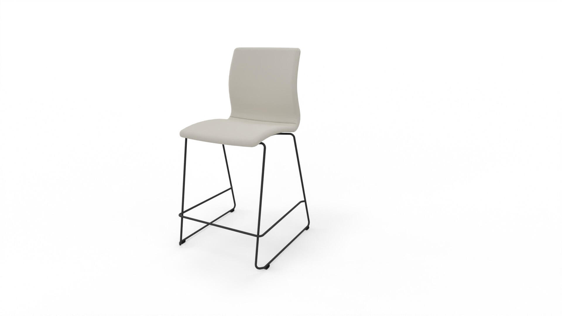 En tidlös, ergonomisk och bekväm barstol för lunch-, konferens- och mötesrum. Den har en slät rygg och en sittdel av formpressad faner klädd med kallskum, vilket ger både komfort och stöd. Stabilt pulverlackat medstativ av ø 11 mm rör med filtbelagda möbeltassar för att skydda golvet. Stolen är stapelbar, max 5 i höjd. Fotstöd placerat 19 cm från golv.