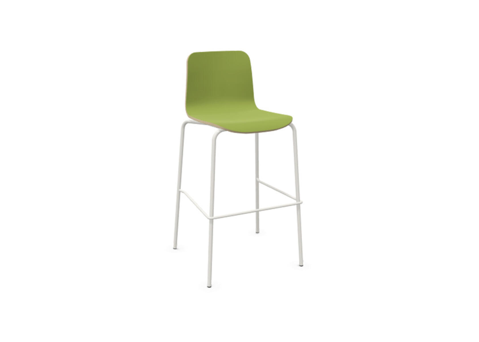 Sittskal i formpressad plywood belagd med högtryckslaminat. Stabilt pulverlackat stativ av ø 12 mm rör med möbeltassar för att skydda golvet. Fotstöd placerat 34 cm från golv. Maxvikt 110 kg. Stolen är ej stapelbar.