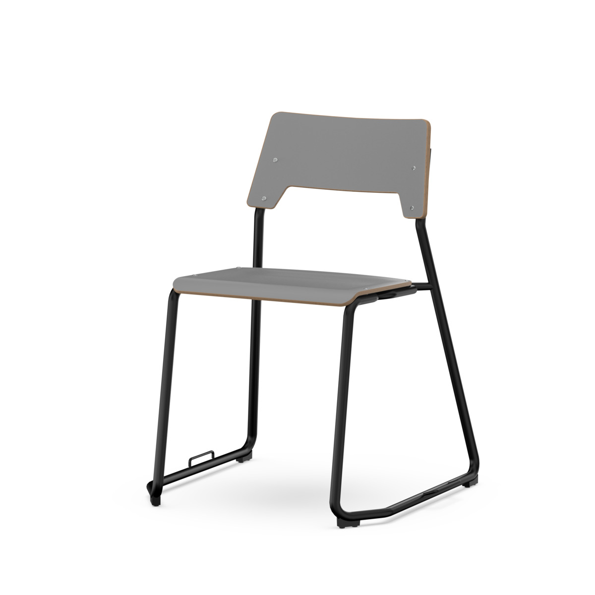 Sits och rygg är tillverkade av plywood med en yta av högtryckslaminat. Sitsen är skålad vilket gör den behaglig att sitta på. Stativet är lackerat i svart, RAL 9005. Tassar med filt. Stolen uppfyller kraven enligt EN 1729-1 & 2. En distans mellan rygg och stativ möjliggör upphängning av stolen med hjälp av ryggen. För att förhindra skador på bordet vid upphängning är glidskydd monterade på ryggen. Distansen gör det även möjligt att använda stativet som en praktisk väskkrok. Reglarbart fotstöd i tre fasta lägen (26, 31 och 36 cm från sits).