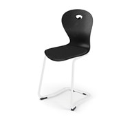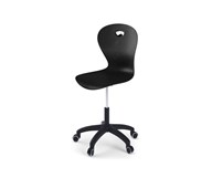 Plastskal av 100 % återvunnet material. Stolen uppfyller EN 1729-1 Sixemark 5&6, vilket innebär att användare mellan 146 och 188 cm sitter bekvämt och ergonomiskt riktigt. Väskkrok på baksidan. Stapelbar och upphängningsbar när man vänder den. Lätt att rengöra. Svartlackerat stativ RAL 9005. Mått: Sitthöjd 45 cm. Sitsbredd 42 cm. Sitsdjup 40 cm. Välj till klädd sits i 100 % återvunnet material.