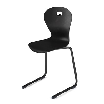 Plastskal av 100 % återvunnet material. Stolen uppfyller EN 1729-1&2 Sizemark 4-5, vilket innebär att användare mellan 133 och 176 cm sitter bekvämt och ergonomiskt riktigt. Väskkrok på baksidan. Stapelbar med max 4 stolar och stativet är utformat för att enkelt kunna hänga upp den. Lätt att rengöra. Svartlackerat stativ RAL 9005.
