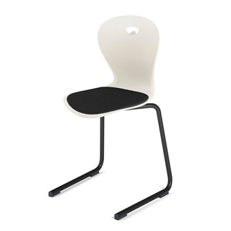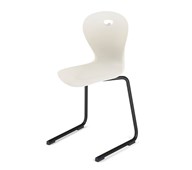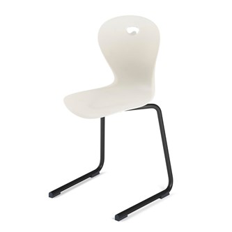 Plastskal av 100 % återvunnet material. Stolen uppfyller EN 1729-1&2 Sizemark 4-5, vilket innebär att användare mellan 133 och 176 cm sitter bekvämt och ergonomiskt riktigt. Väskkrok på baksidan. Stapelbar med max 4 stolar och stativet är utformat för att enkelt kunna hänga upp den. Lätt att rengöra. Vitlackerat stativ RAL 9003.