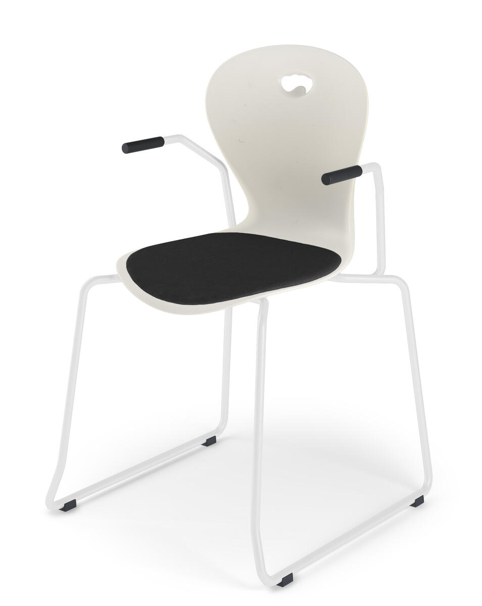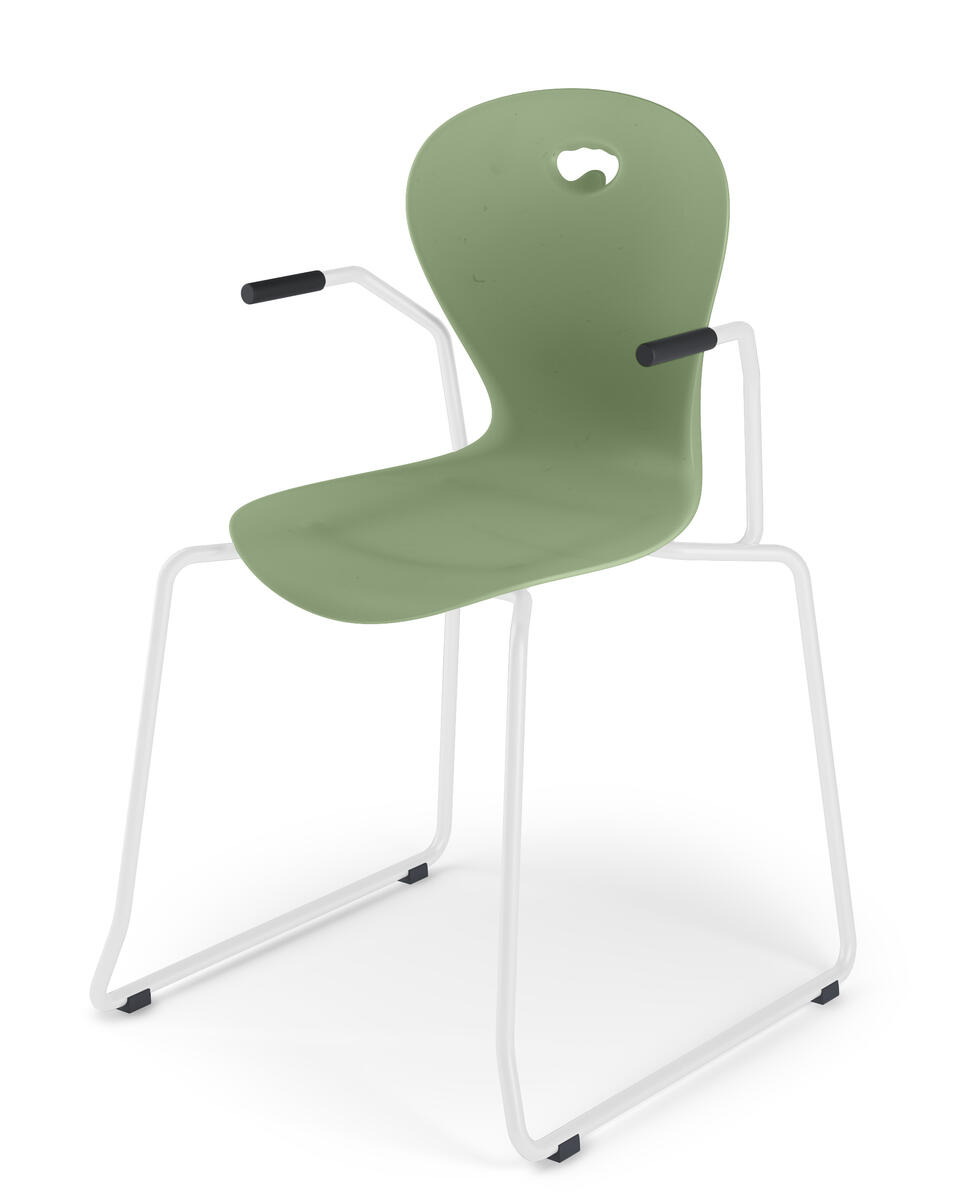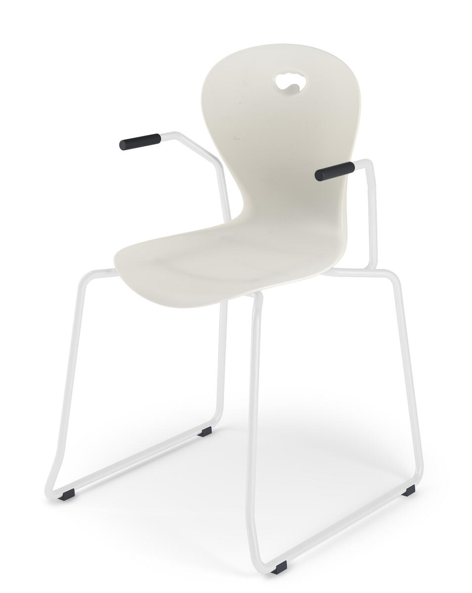 Plastskal av 100 % återvunnet material. Stolen uppfyller EN 1729-1 Sixemark 5&6, vilket innebär att användare mellan 146 och 188 cm sitter bekvämt och ergonomiskt riktigt. Väskkrok på baksidan. Lätt att rengöra. Vitlackerat stativ RAL 9003. Mått: Sitthöjd 45 cm. Sitsbredd 42 cm. Sitsdjup 40 cm. Välj till klädd sits i 100 % återvunnet material.