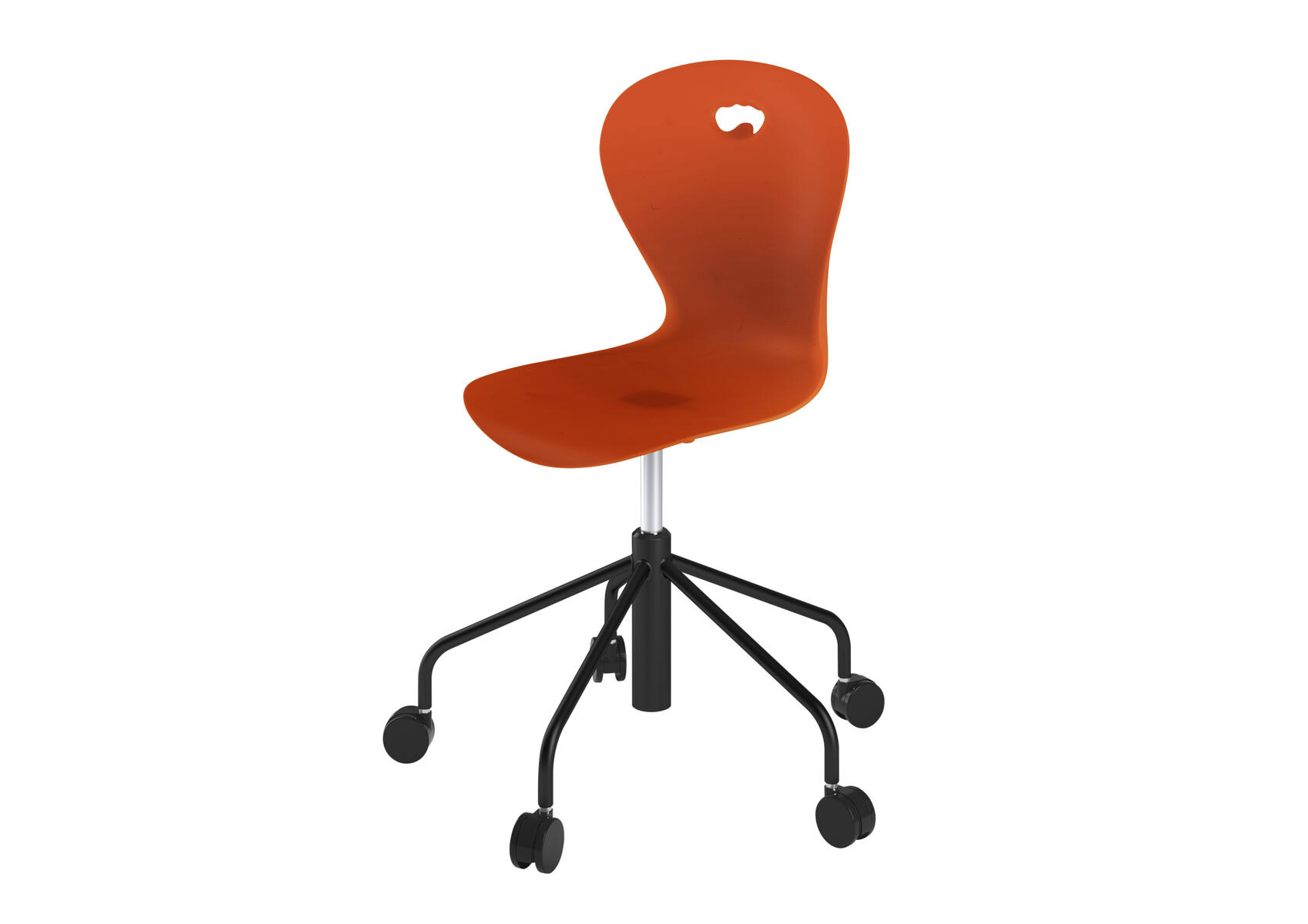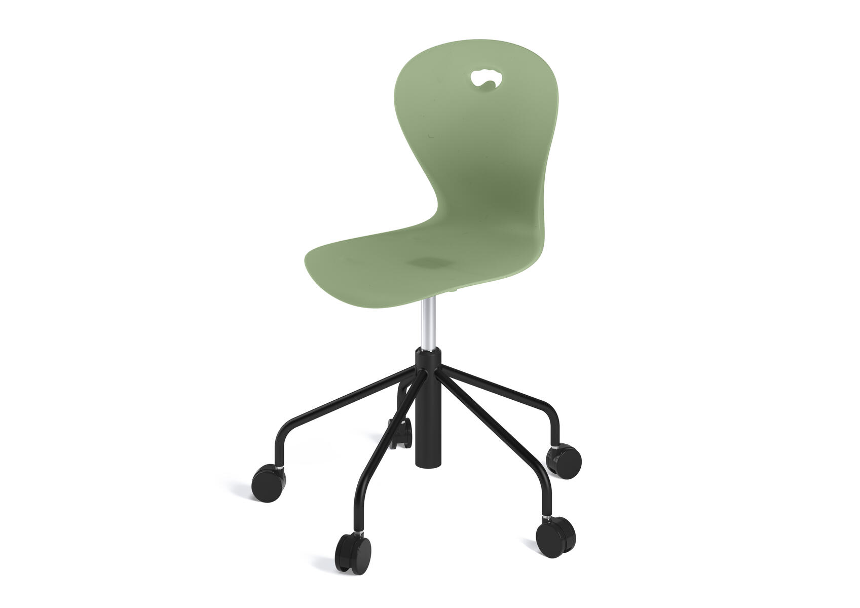 Stol Karoline med ett högt 5-krysstativ på hjul lackerat i RAL 9005. Sitthöjd justeras med gasfjäder i intervallerna 46-57. Plastskal av 100 % återvunnet material. Stolen uppfyller EN 1729-1 Sixemark 5&6, vilket innebär att användare mellan 146 och 188 cm sitter bekvämt och ergonomiskt riktigt. Väskkrok på baksidan. Välj till klädd sits i 100 % återvunnet material.
