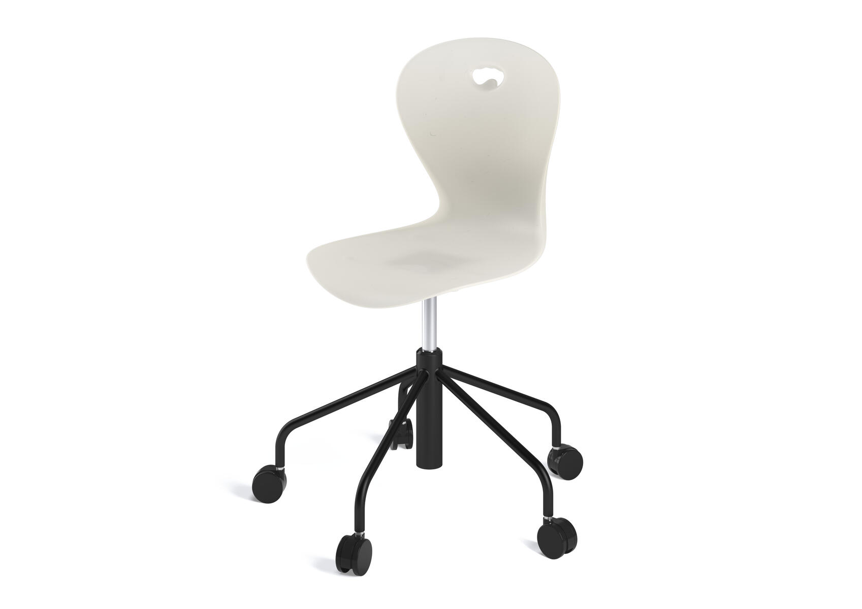 Stol Karoline med ett högt 5-krysstativ på hjul lackerat i RAL 9003. Sitthöjd justeras med gasfjäder i intervallerna 46-57. Plastskal av 100 % återvunnet material. Stolen uppfyller EN 1729-1 Sixemark 5&6, vilket innebär att användare mellan 146 och 188 cm sitter bekvämt och ergonomiskt riktigt. Väskkrok på baksidan. Välj till klädd sits i 100 % återvunnet material.