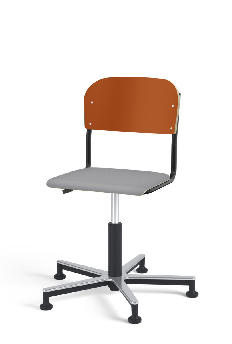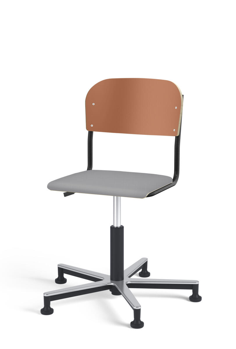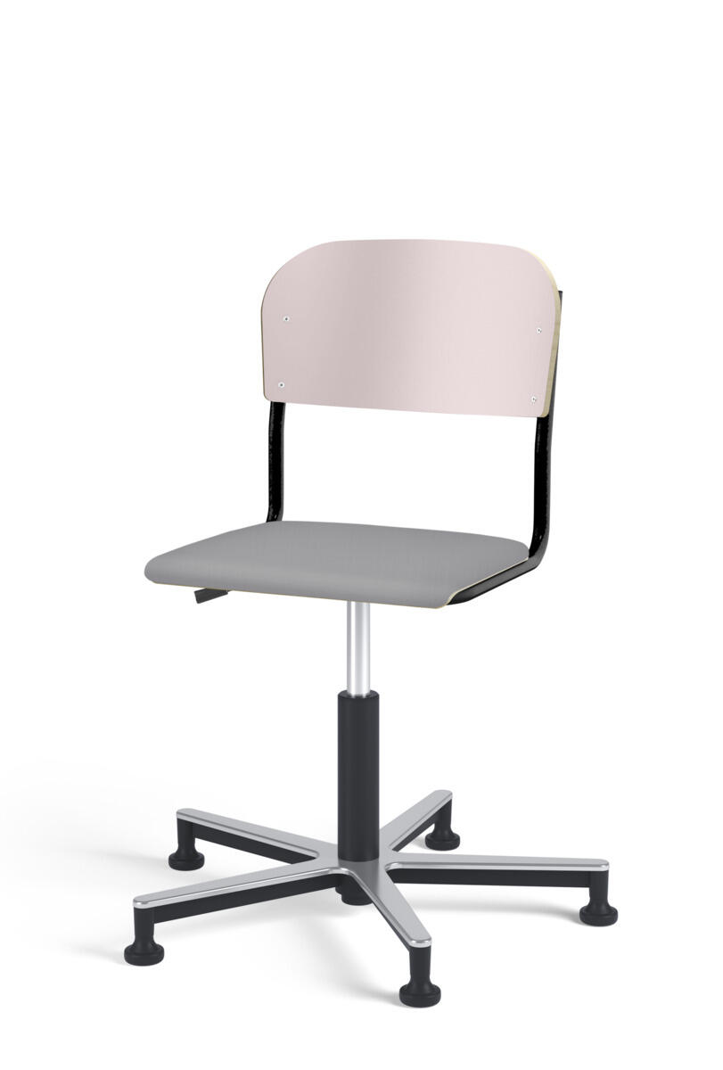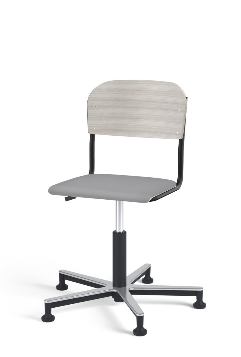 Stol Matte med gasfjäder för reglering av sitthöjd med hjälp av en spak. Sits och rygg i högtryckslaminat. Ram till sits och rygg i pulverlackerat stål, silver. Kryss i aluminium med glidfötter.