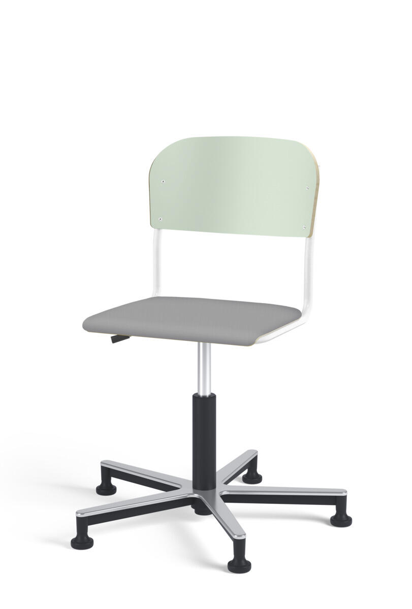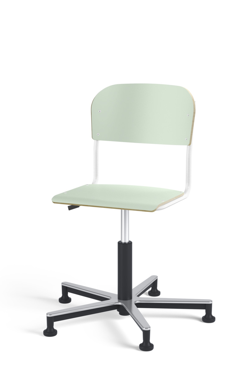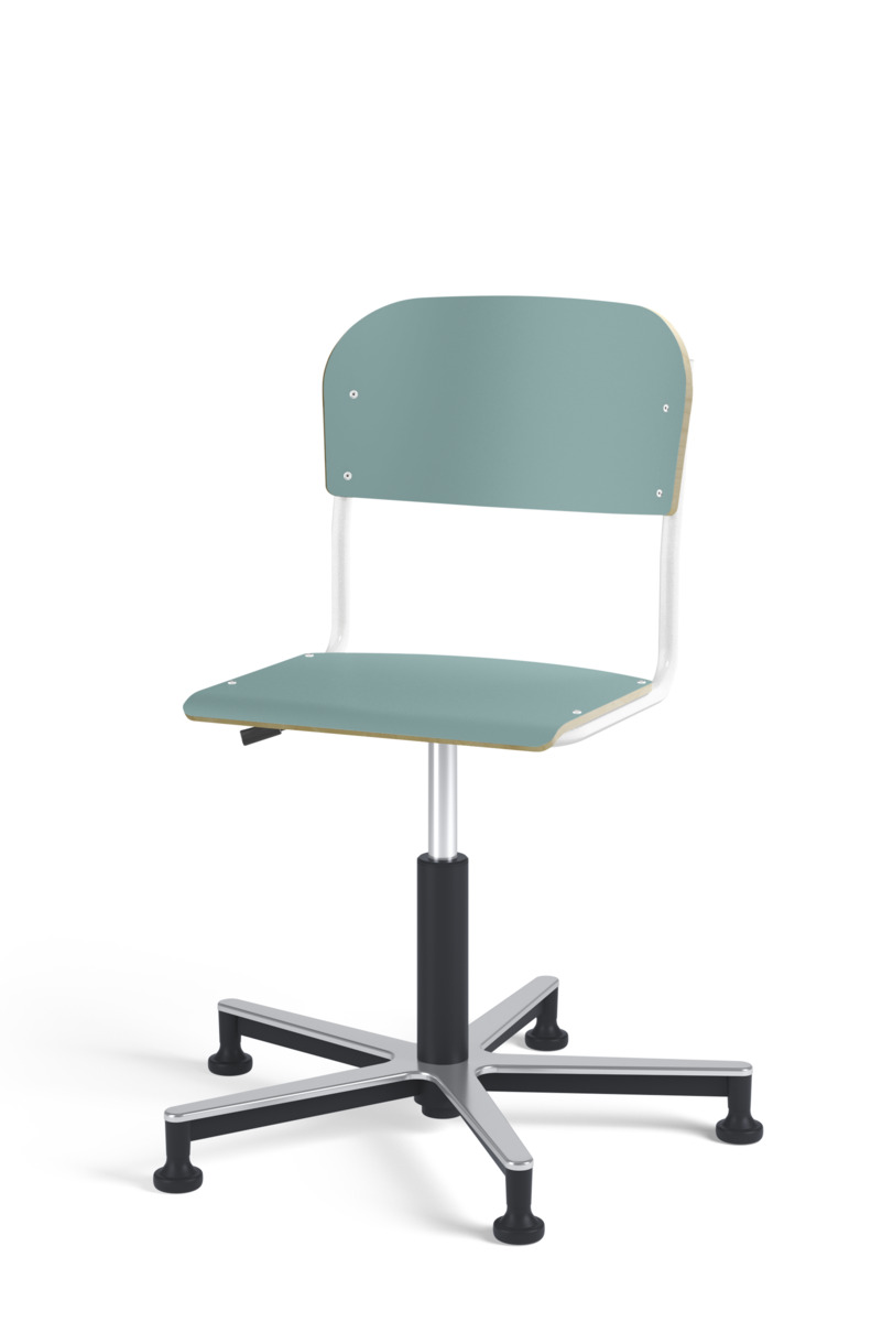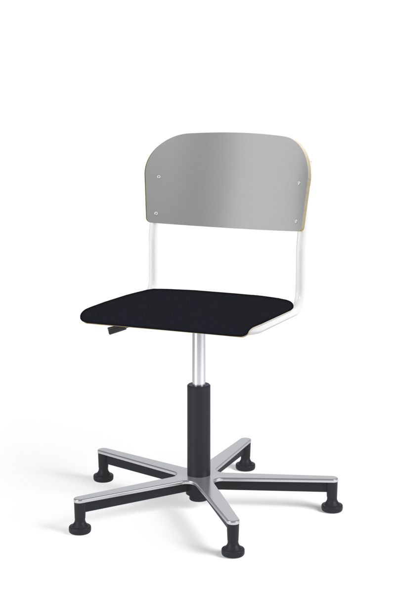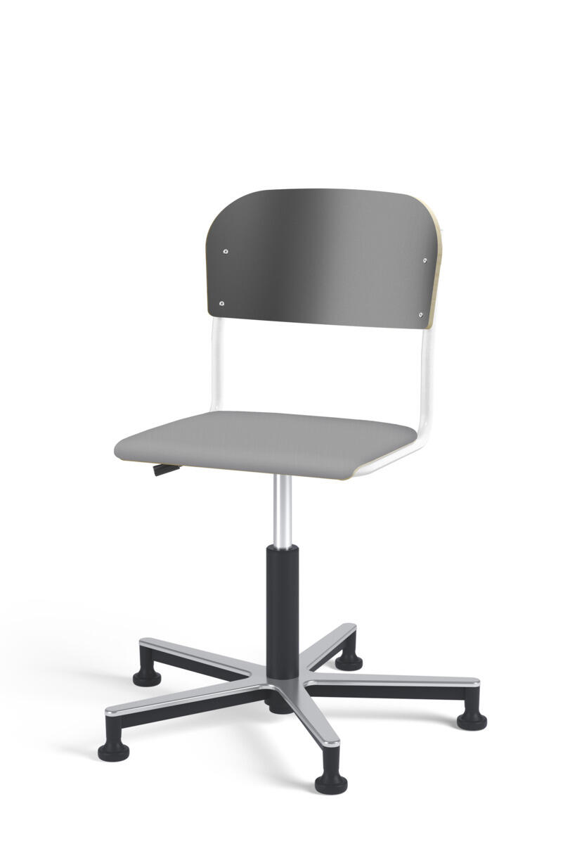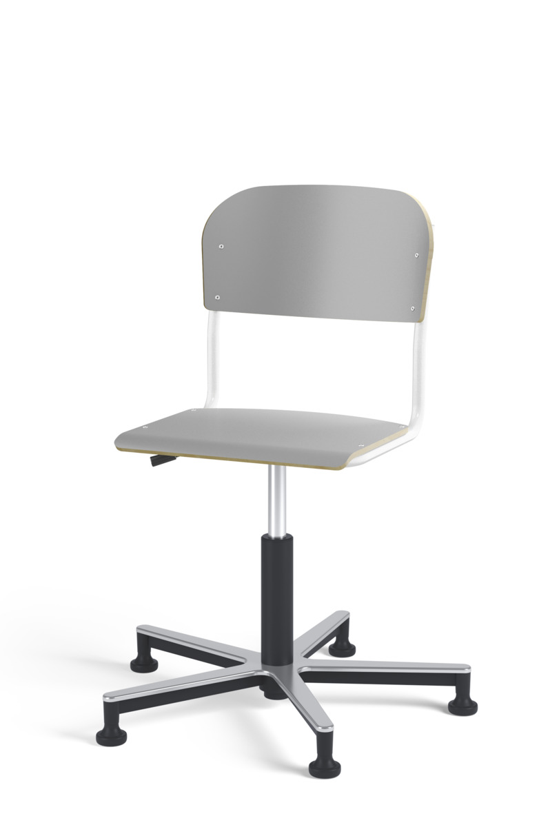 Stol Matte med gasfjäder för reglering av sitthöjd med hjälp av en spak. Sits och rygg i högtryckslaminat. Ram till sits och rygg i pulverlackerat stål, silver. Kryss i aluminium med glidfötter.