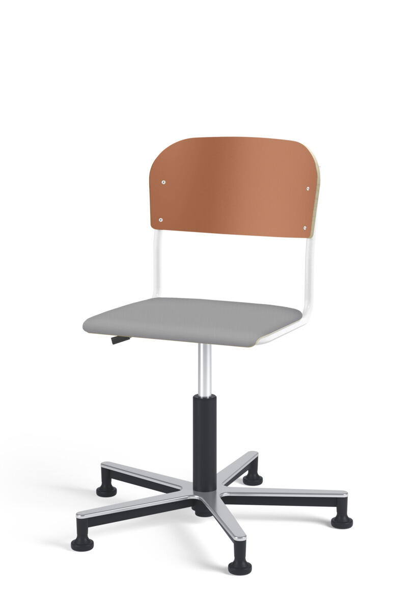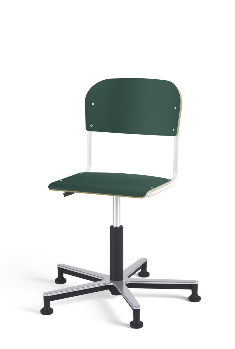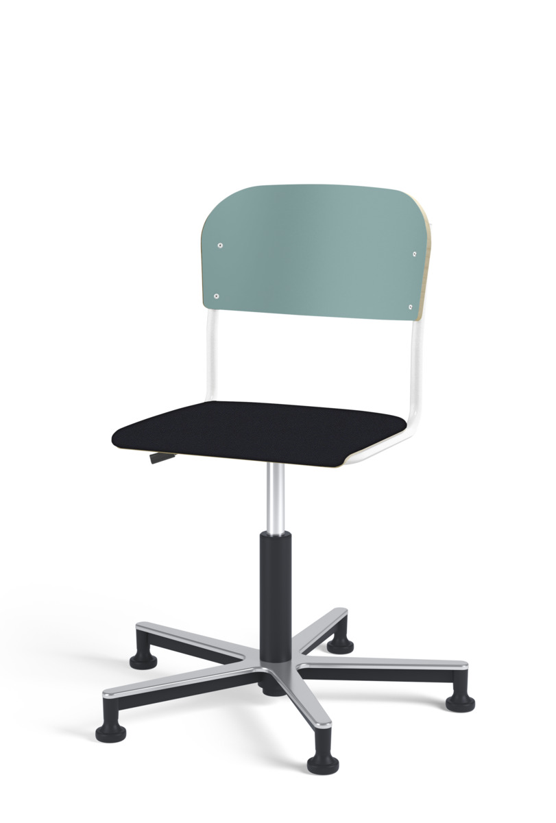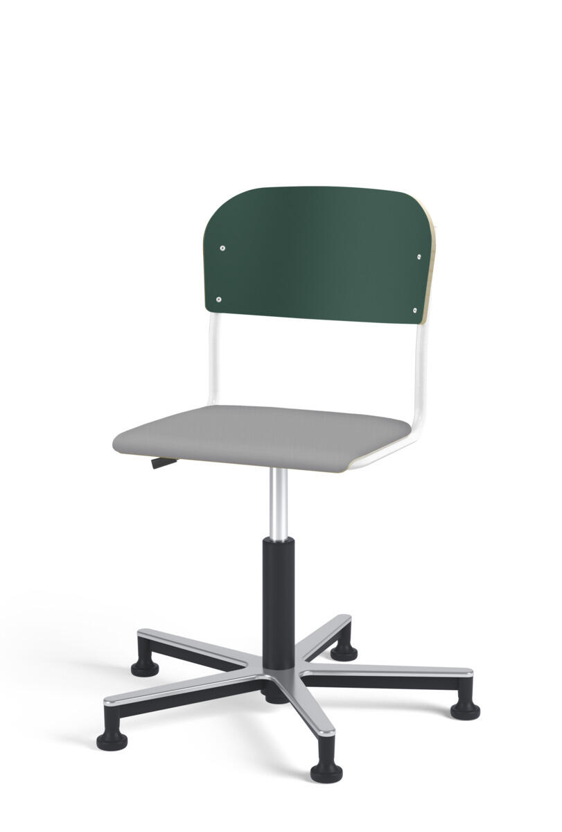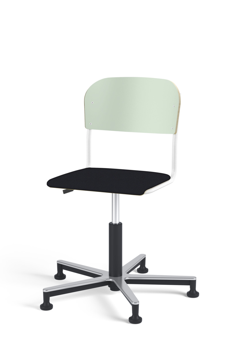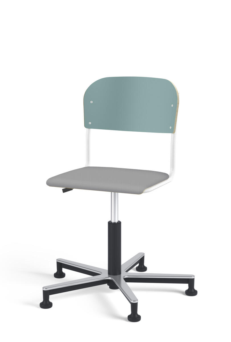 Stol Matte med gasfjäder för reglering av sitthöjd med hjälp av en spak. Sits och rygg i högtryckslaminat. Ram till sits och rygg i pulverlackerat stål, silver. Kryss i aluminium med glidfötter.