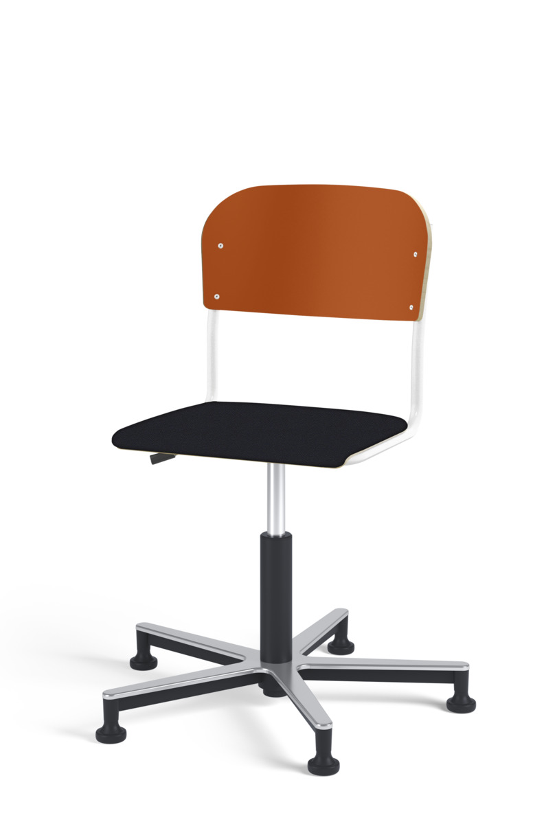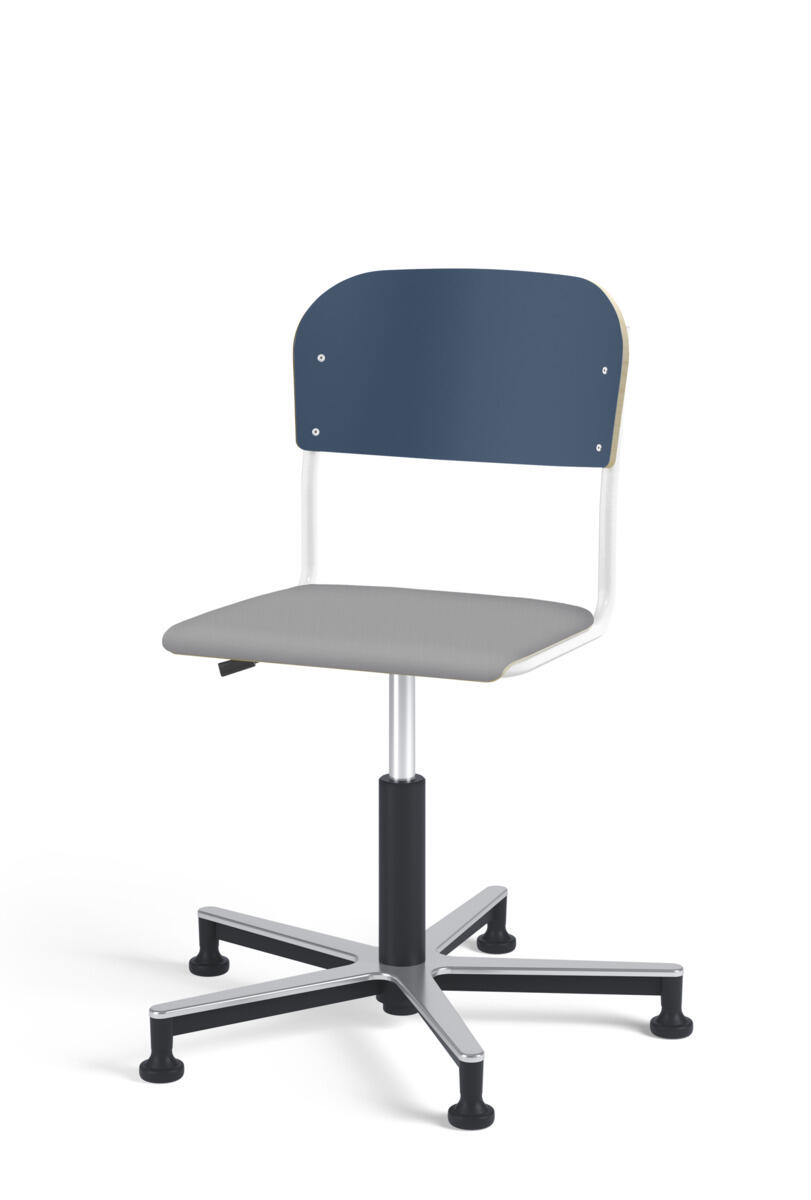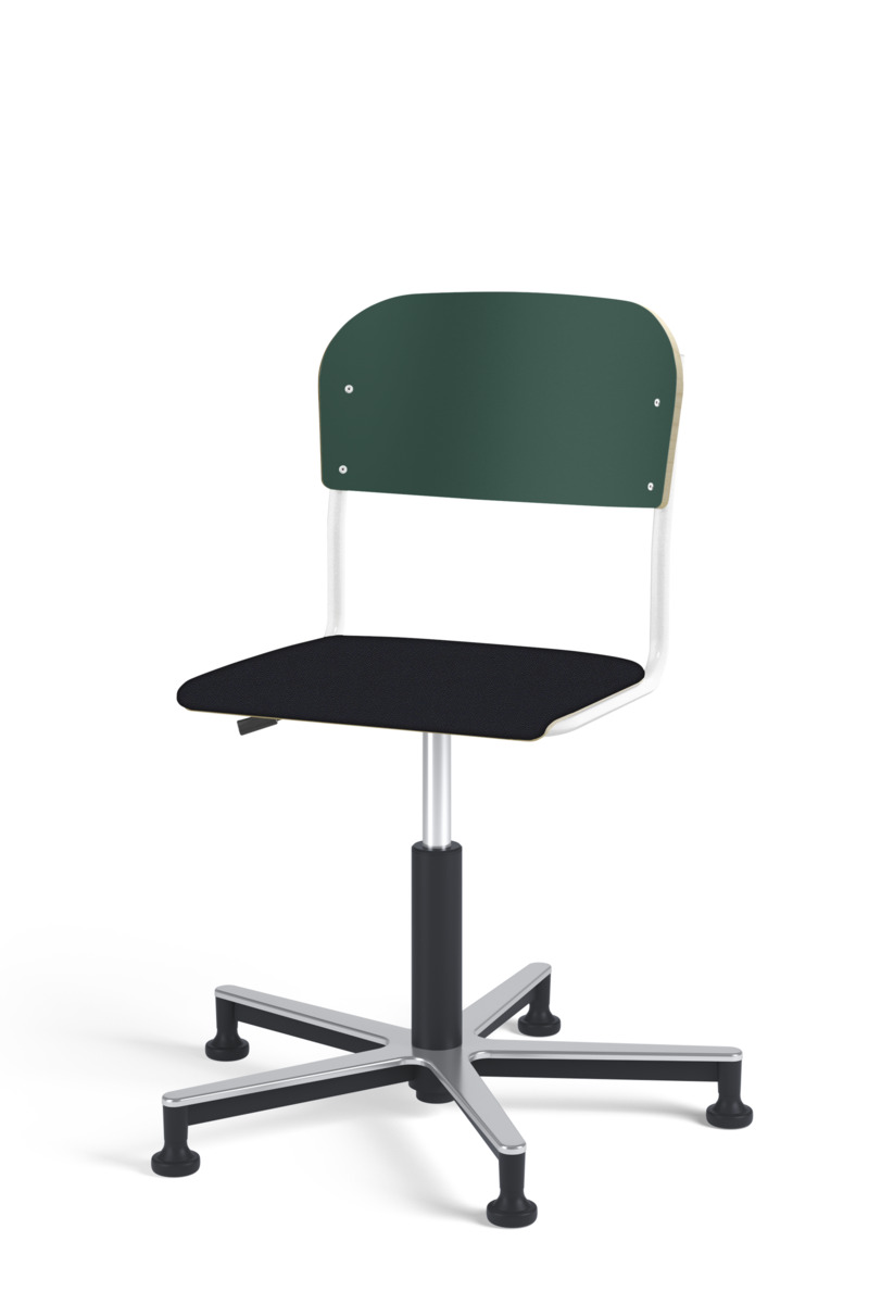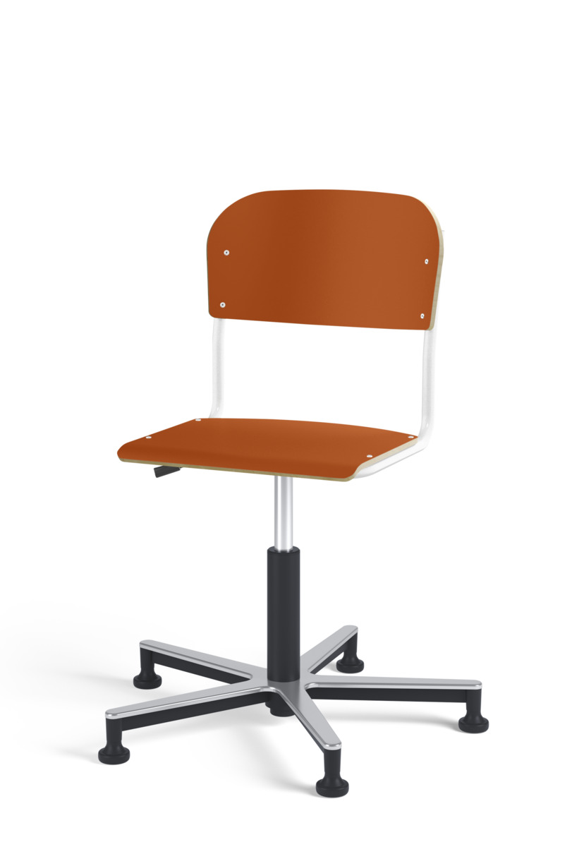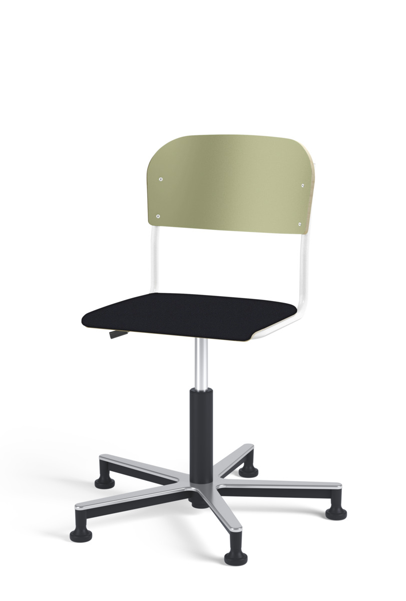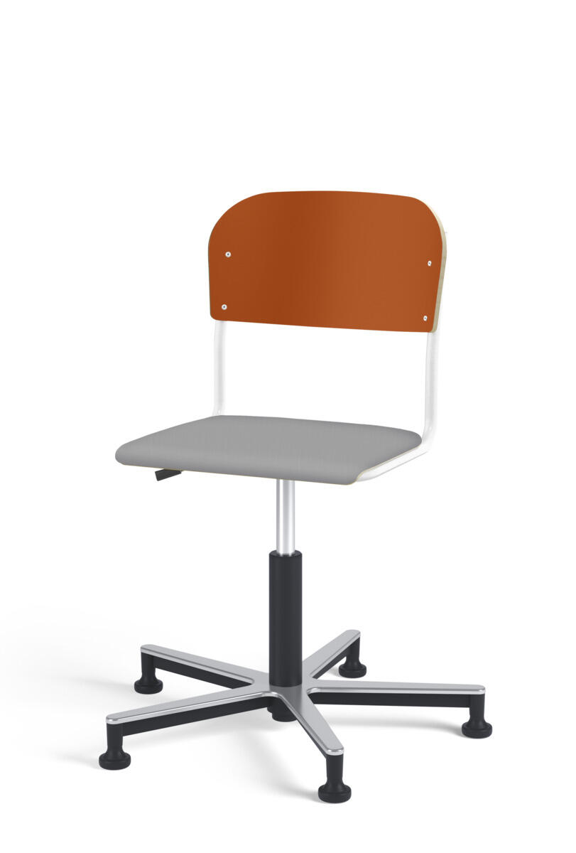 Stol Matte med gasfjäder för reglering av sitthöjd med hjälp av en spak. Sits och rygg i högtryckslaminat. Ram till sits och rygg i pulverlackerat stål, silver. Kryss i aluminium med glidfötter.