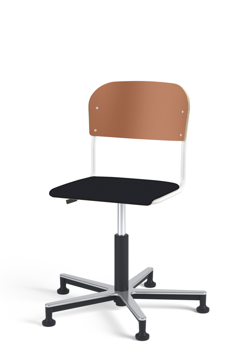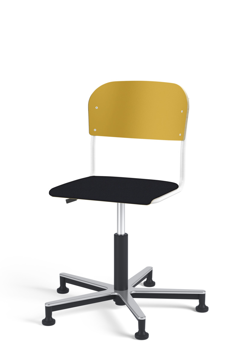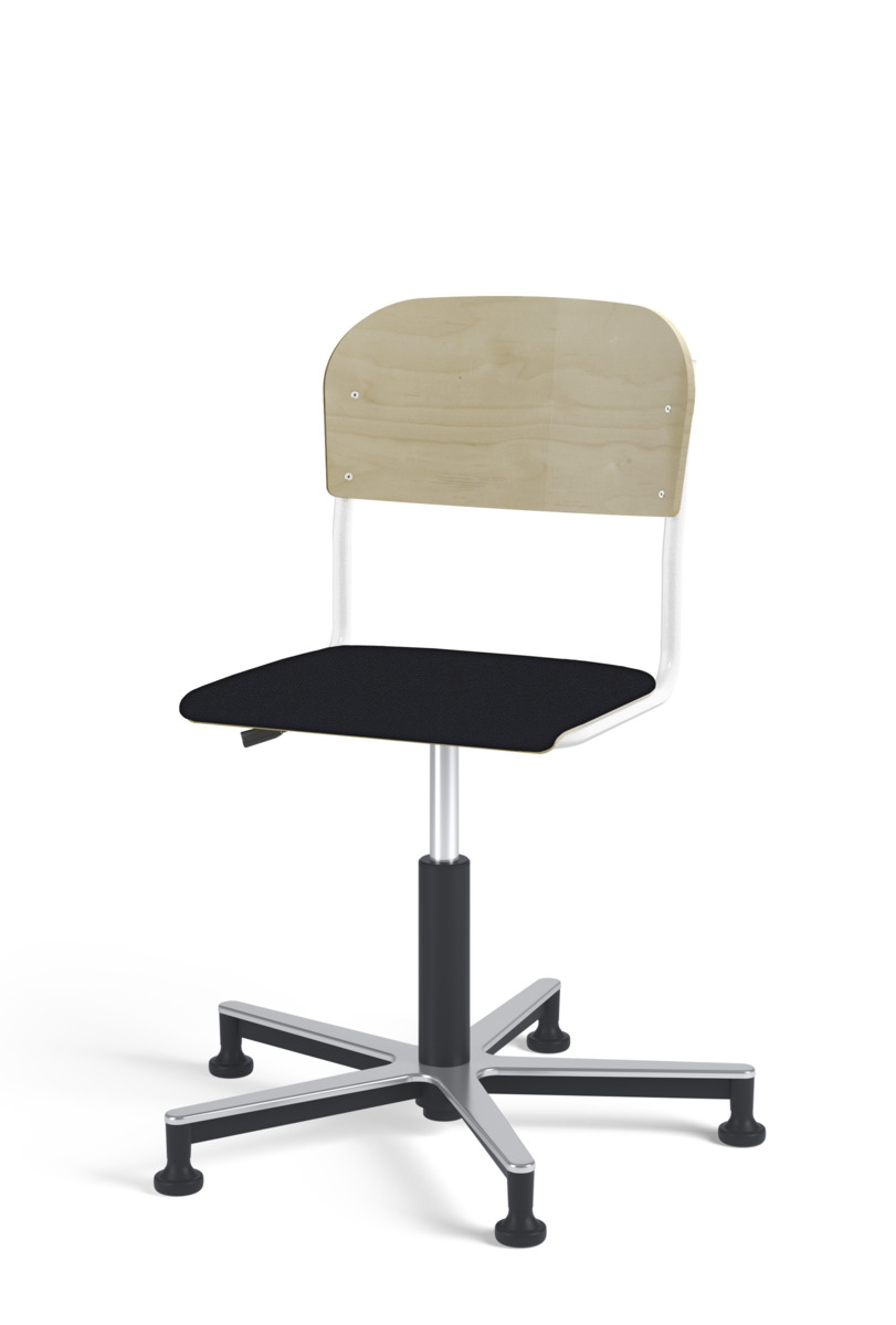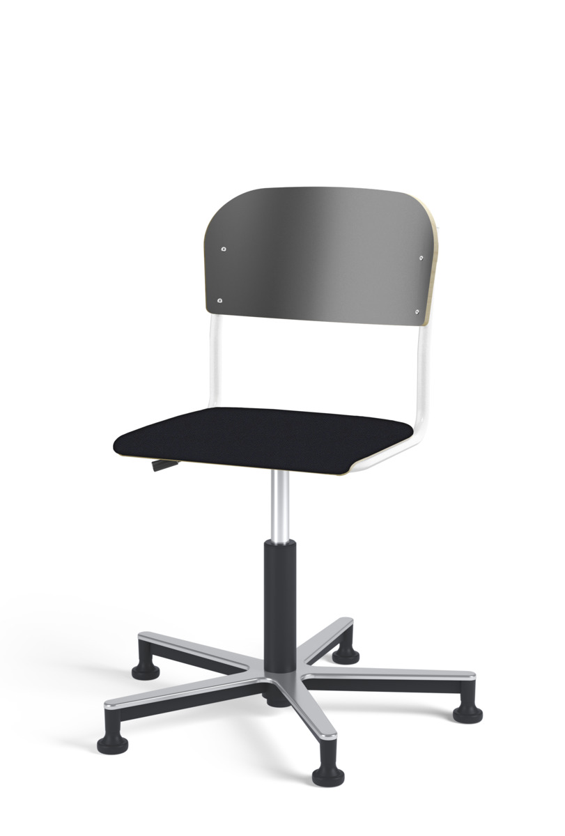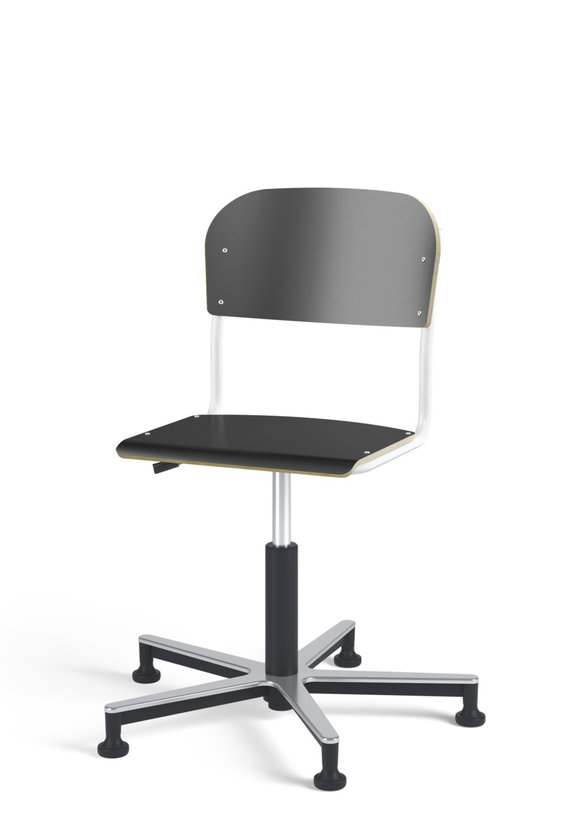 Stol Matte med gasfjäder för reglering av sitthöjd med hjälp av en spak. Sits och rygg i högtryckslaminat. Ram till sits och rygg i pulverlackerat stål, svart. Kryss i aluminium med glidfötter.