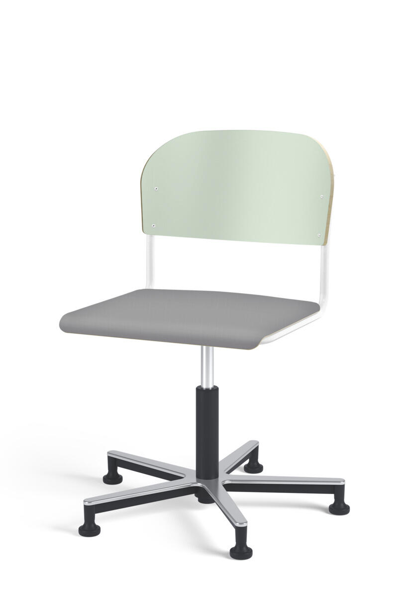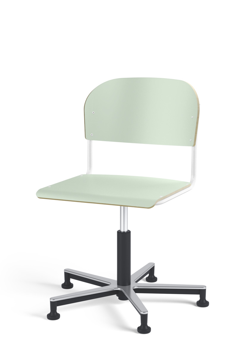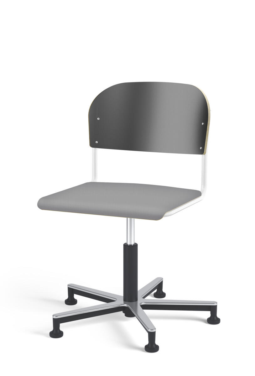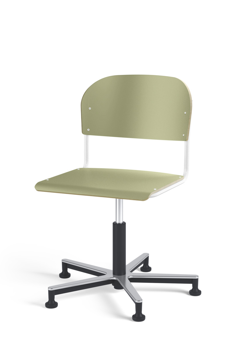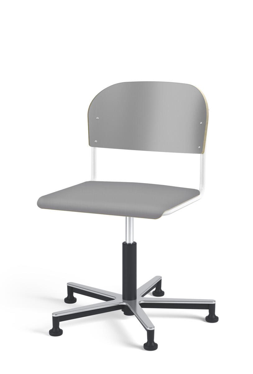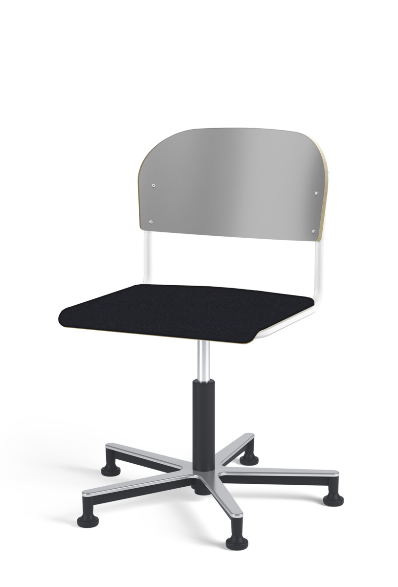 Stol Matte med gasfjäder för reglering av sitthöjd med hjälp av en spak. Sits och rygg i högtryckslaminat. Ram till sits och rygg i pulverlackerat stål, silver. Kryss i aluminium med glidfötter.