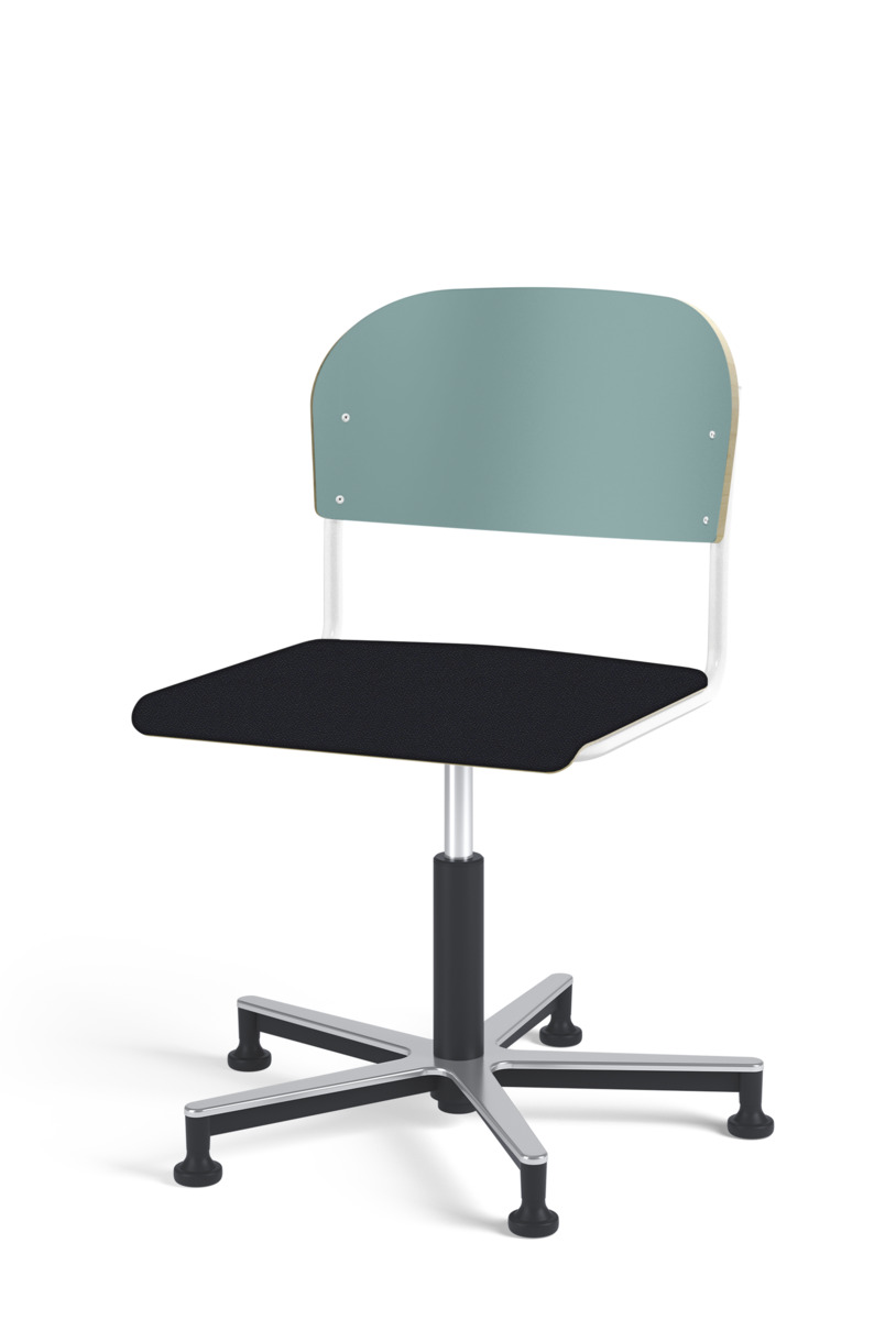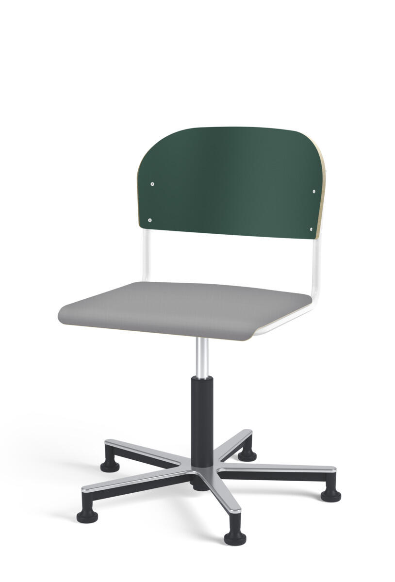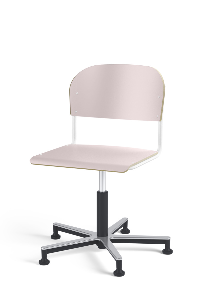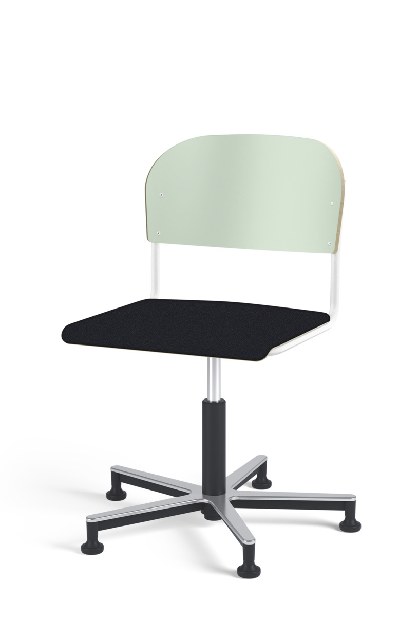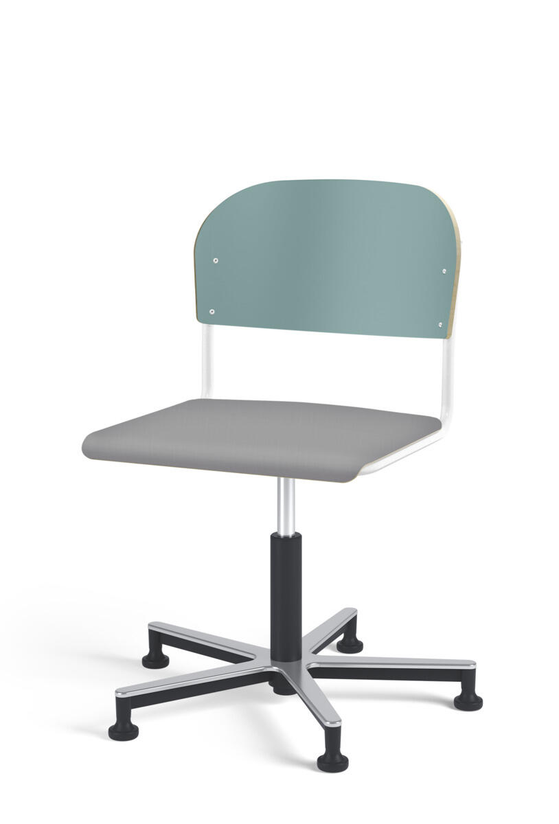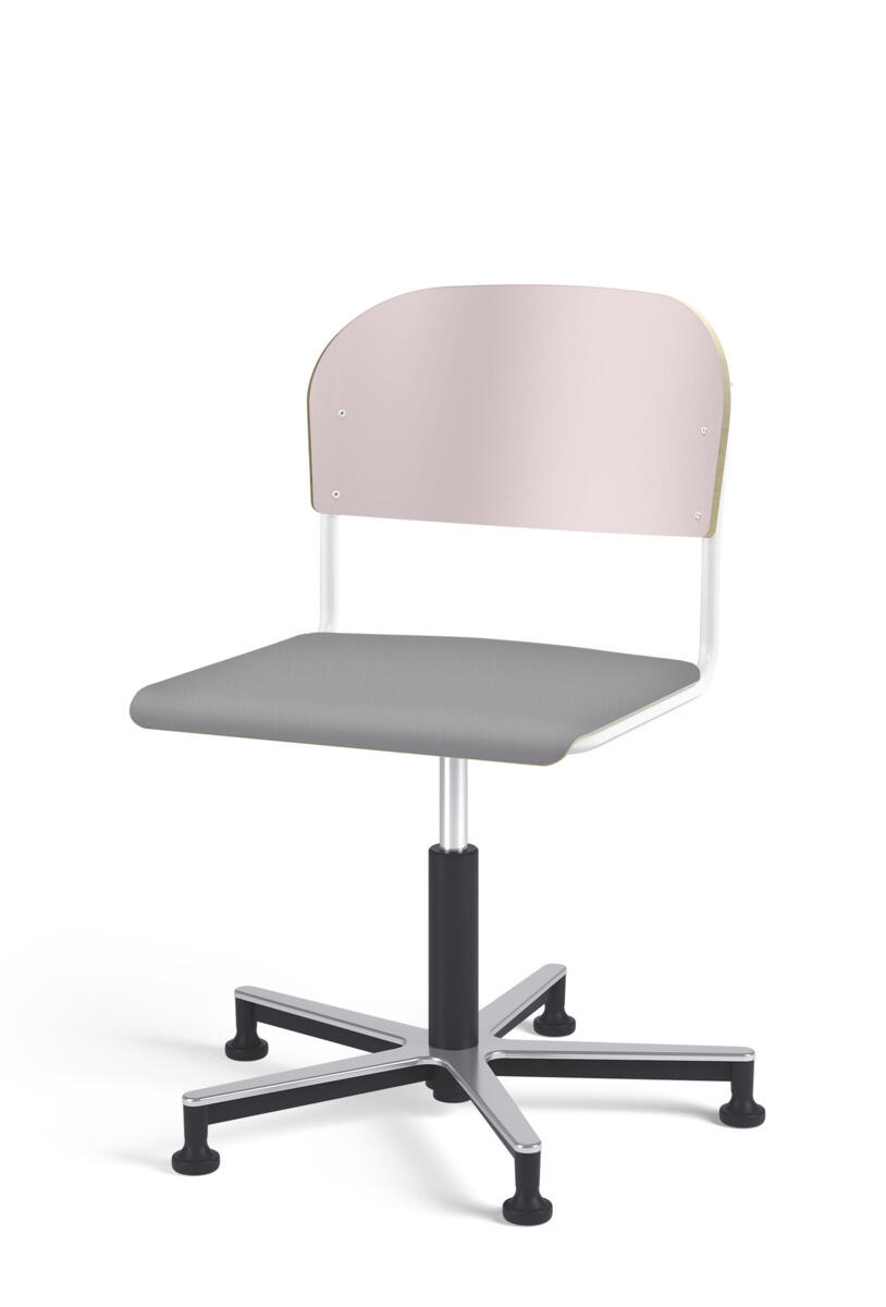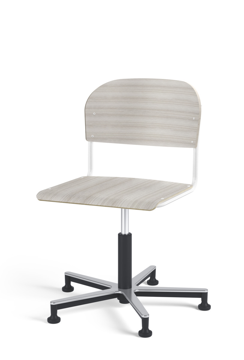 Stol Matte med gasfjäder för reglering av sitthöjd med hjälp av en spak. Sits och rygg i högtryckslaminat. Ram till sits och rygg i pulverlackerat stål, silver. Kryss i aluminium med glidfötter.