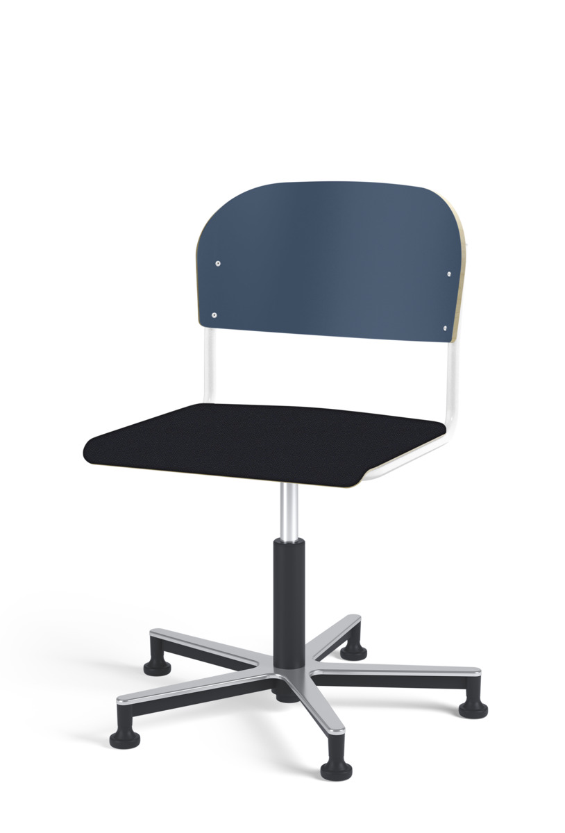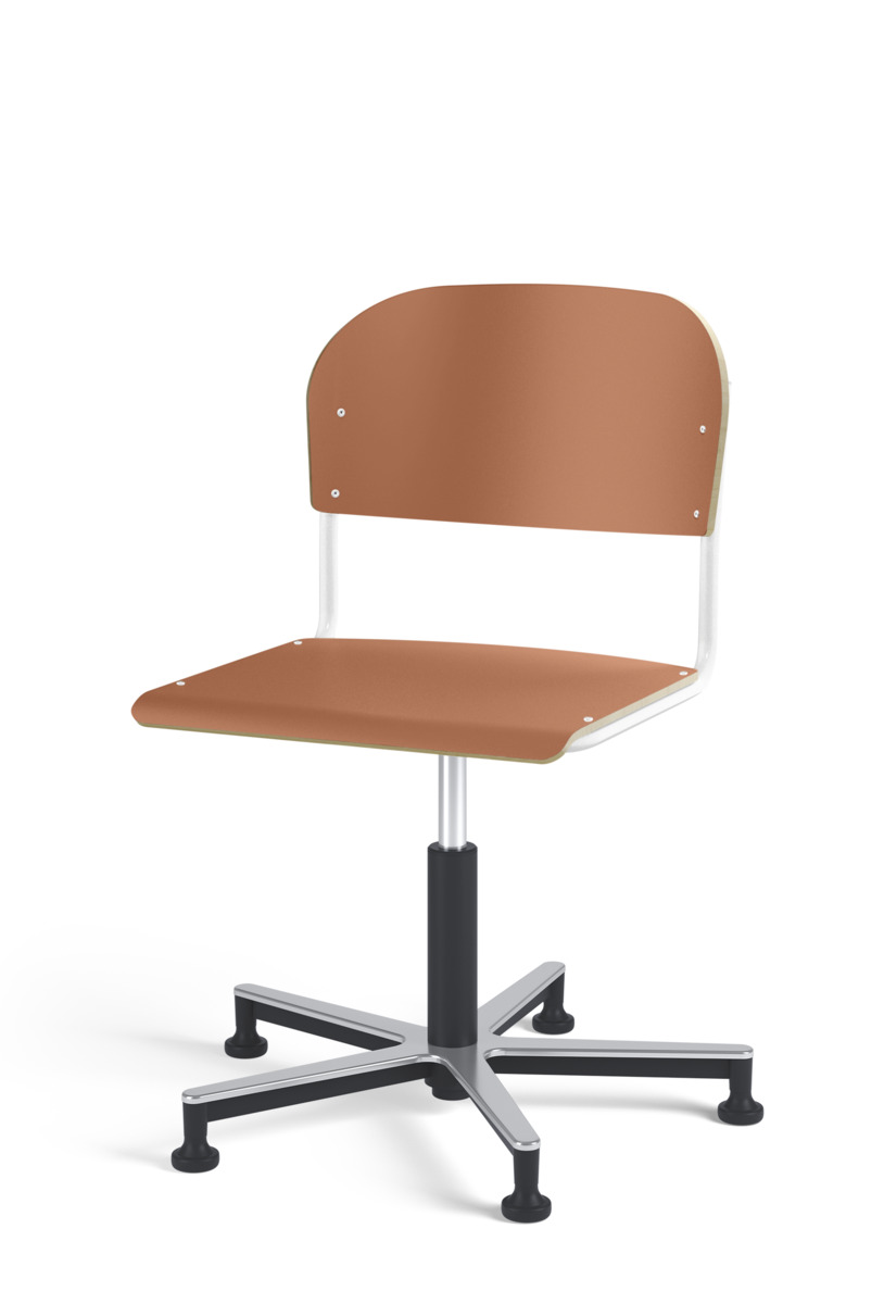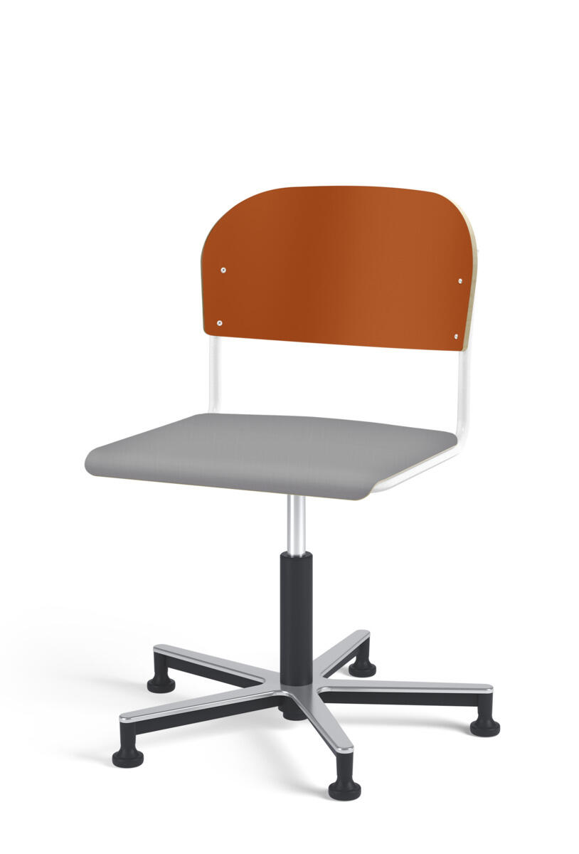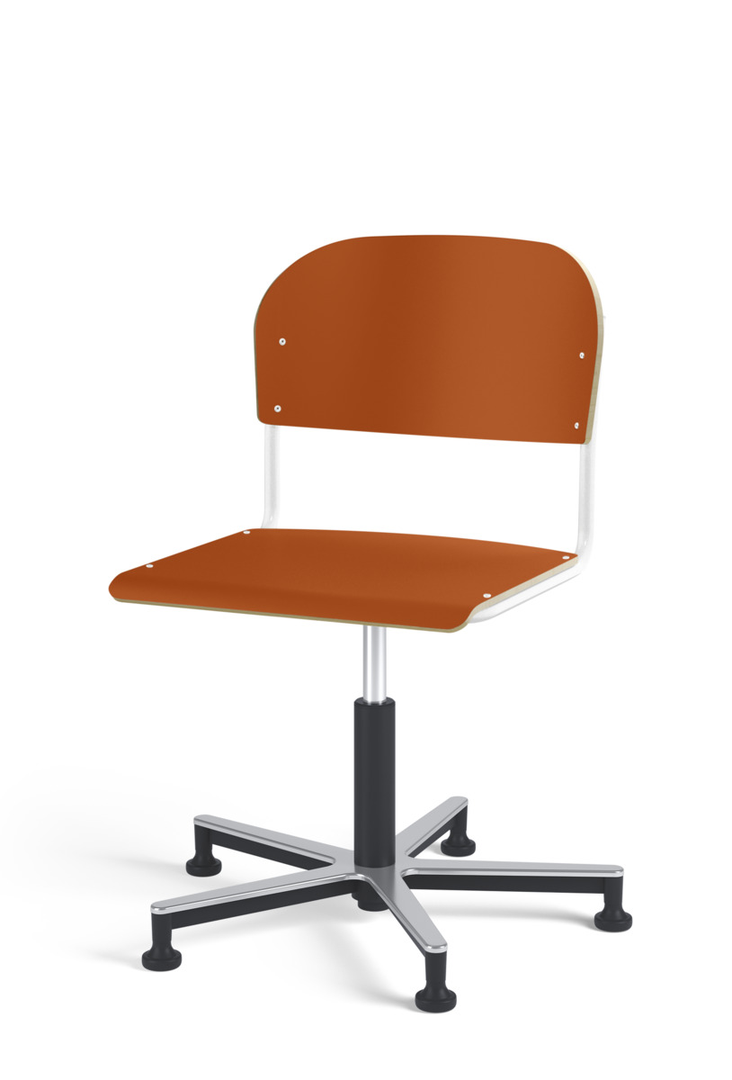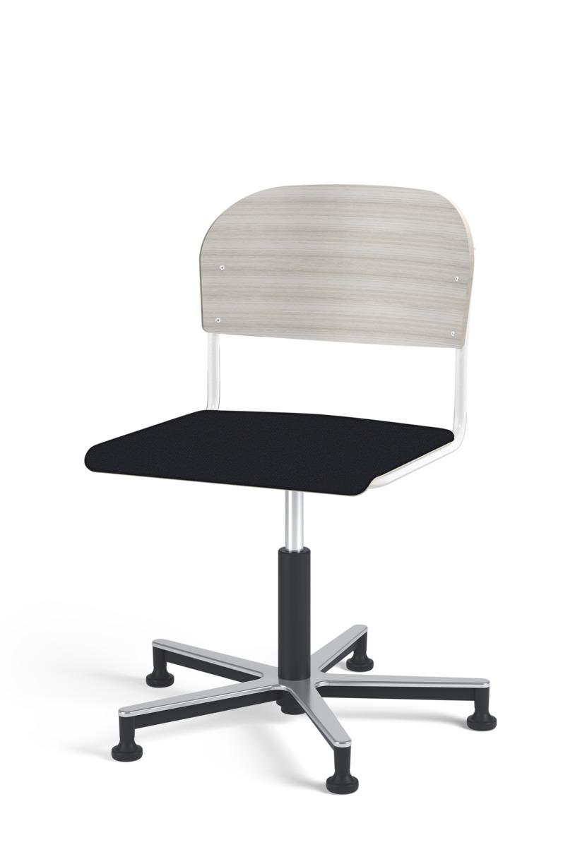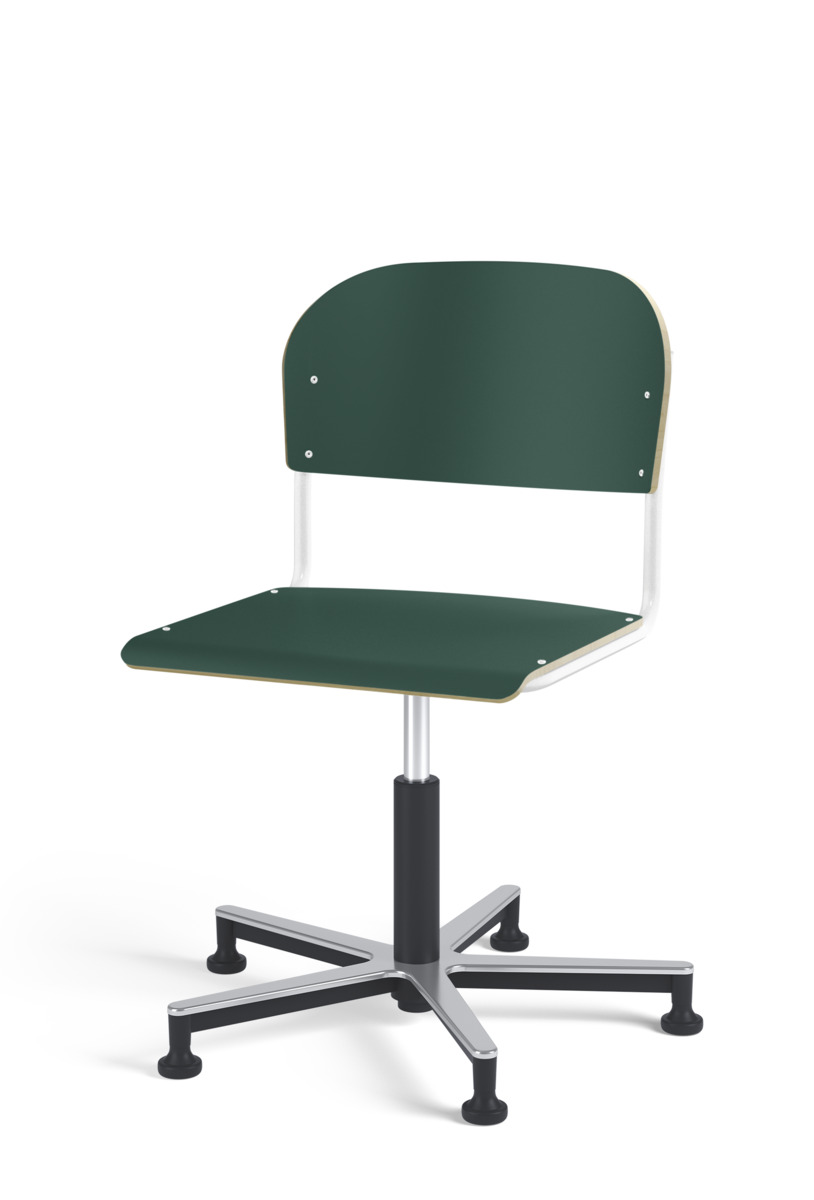 Stol Matte med gasfjäder för reglering av sitthöjd med hjälp av en spak. Sits och rygg i högtryckslaminat. Ram till sits och rygg i pulverlackerat stål, silver. Kryss i aluminium med glidfötter.