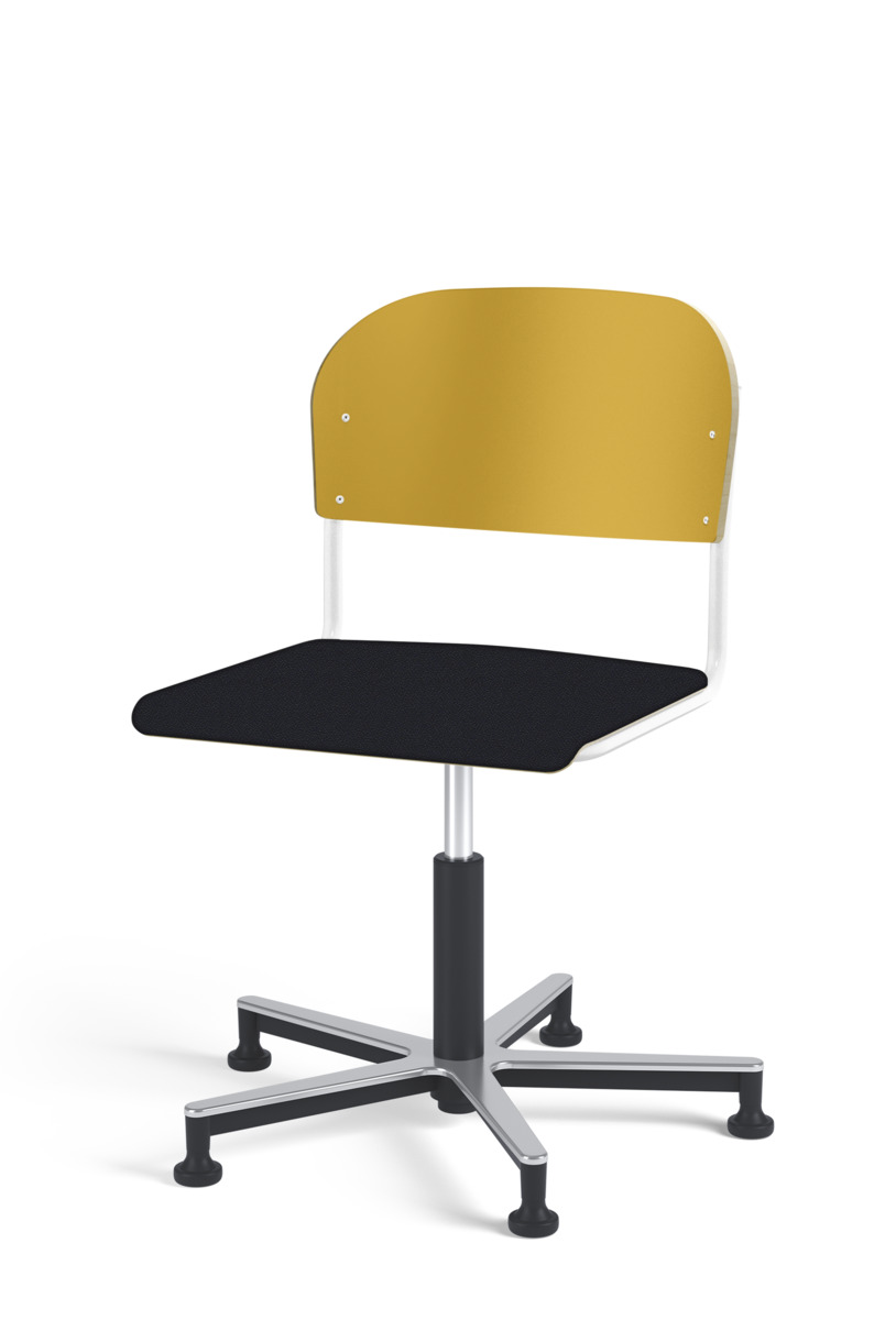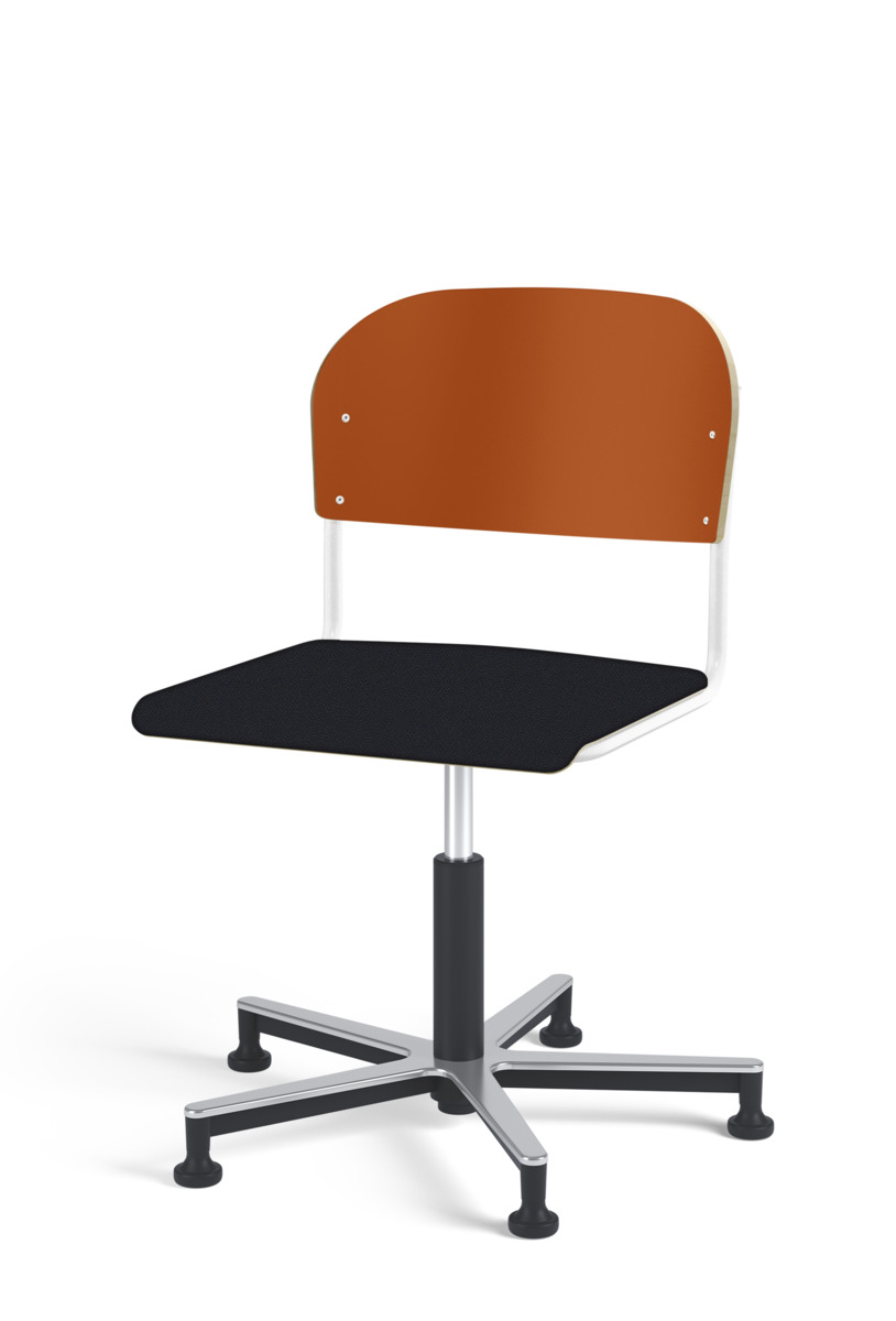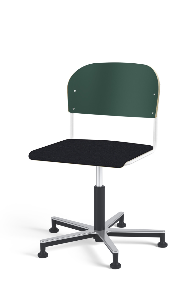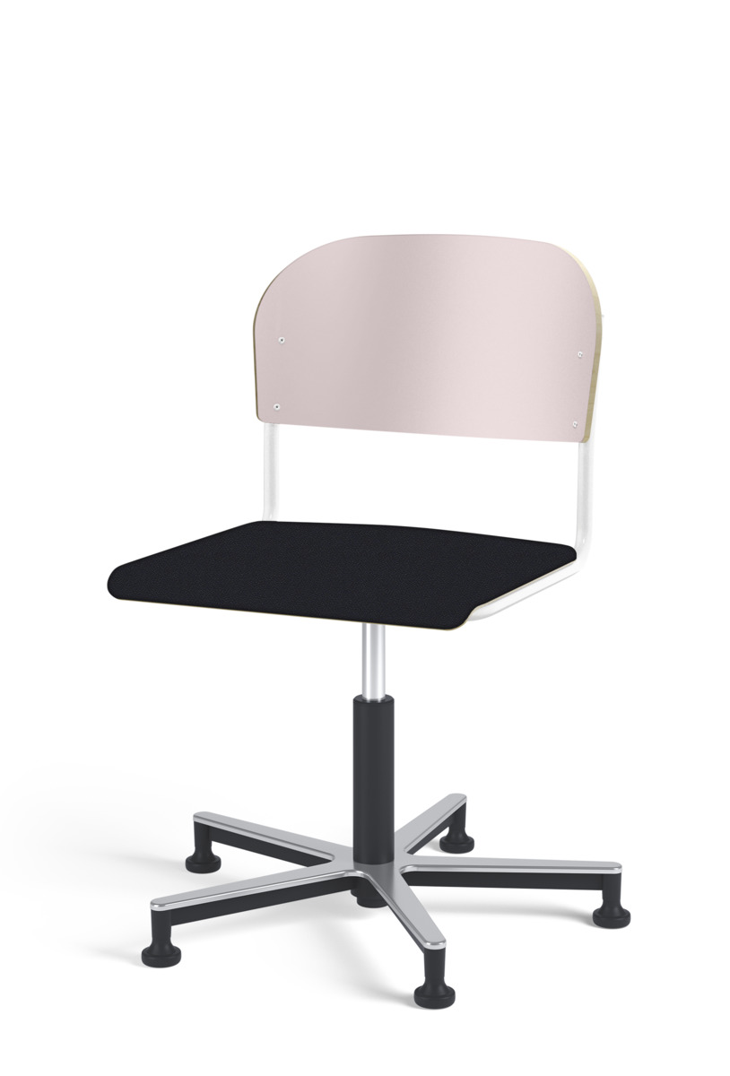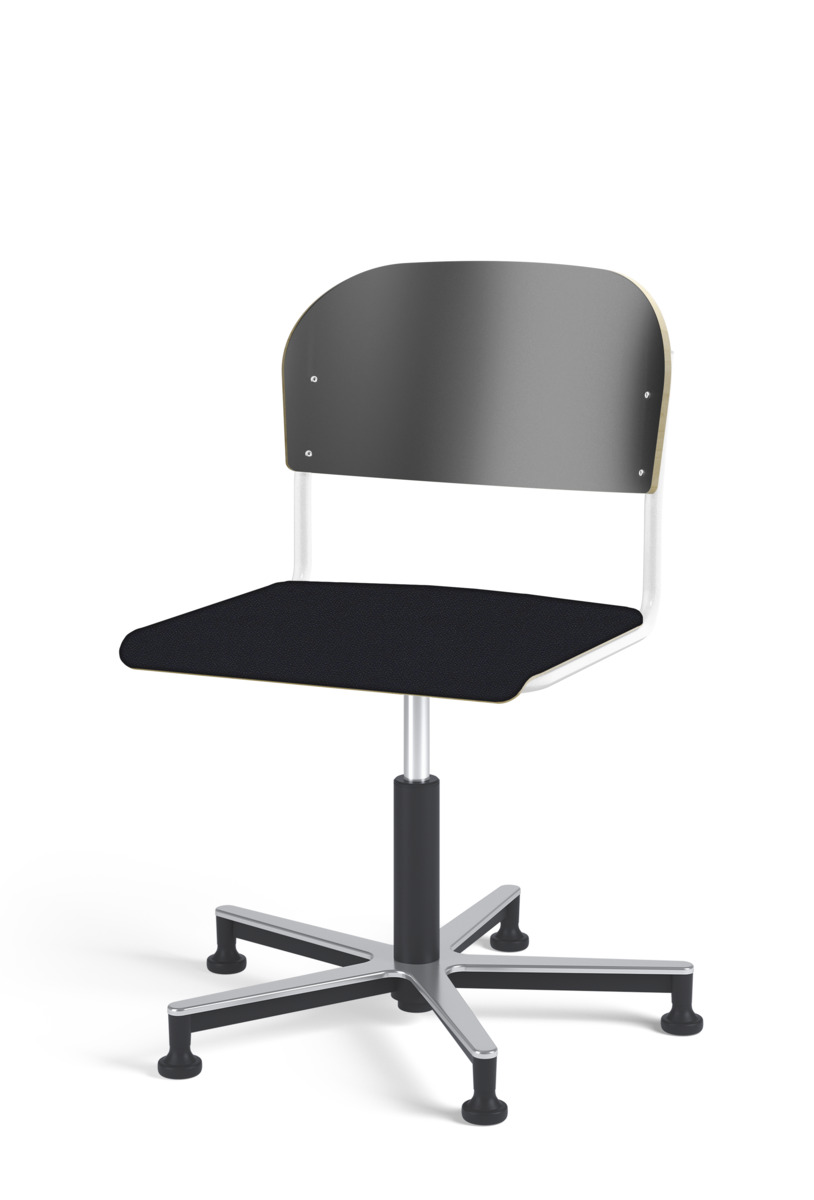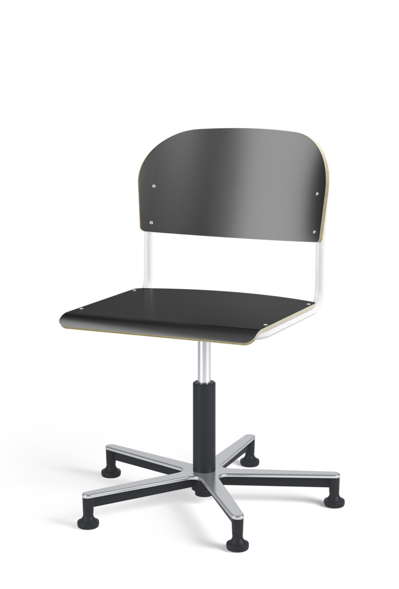 Stol Matte med gasfjäder för reglering av sitthöjd med hjälp av en spak. Sits och rygg i högtryckslaminat. Ram till sits och rygg i pulverlackerat stål, svart. Kryss i aluminium med glidfötter.