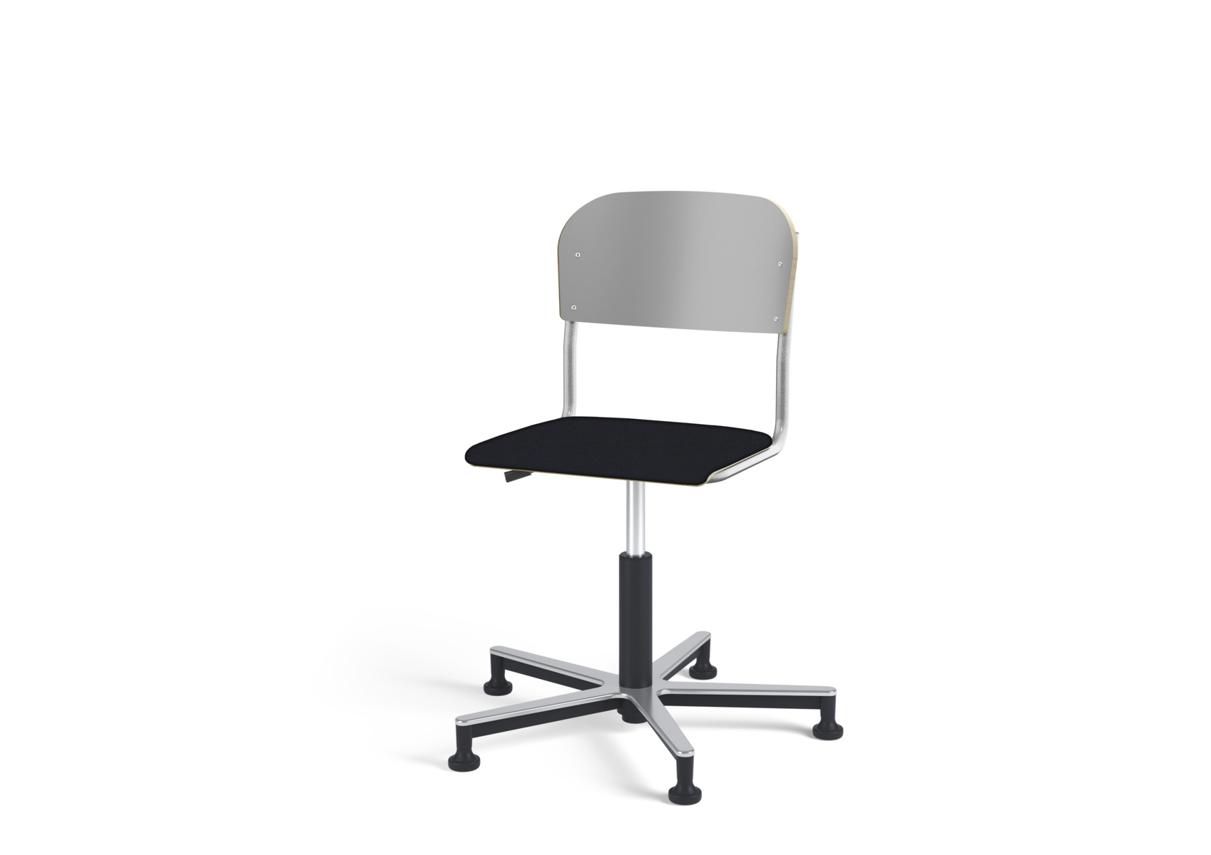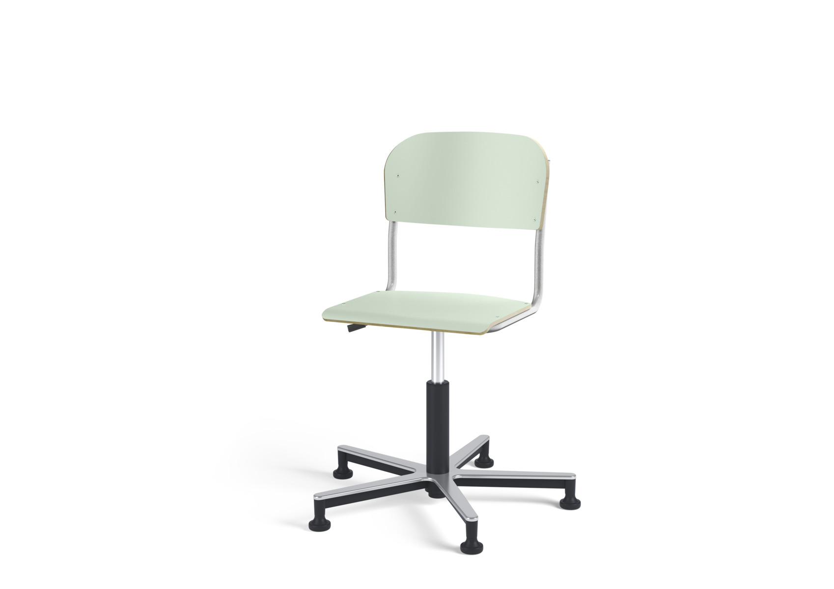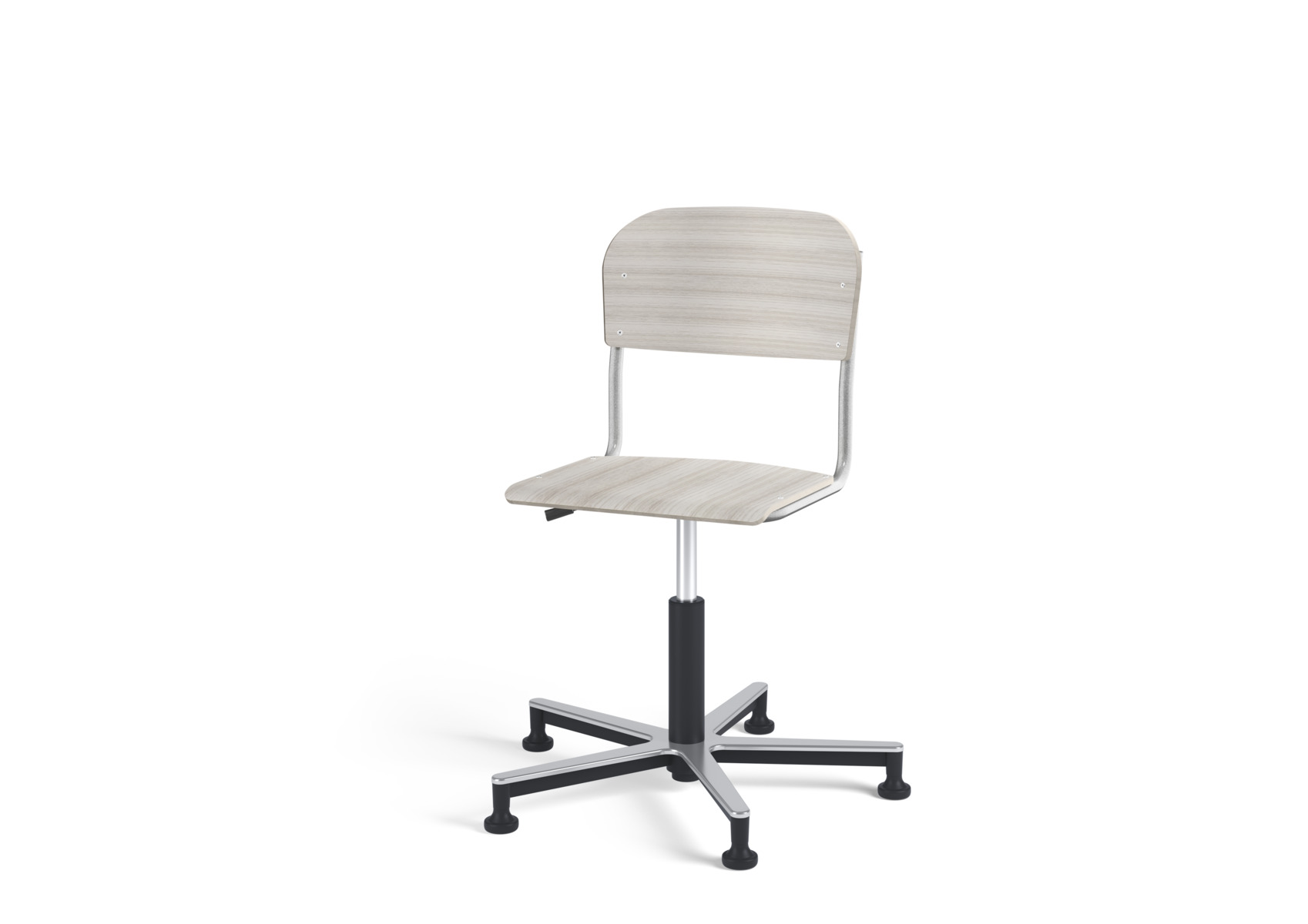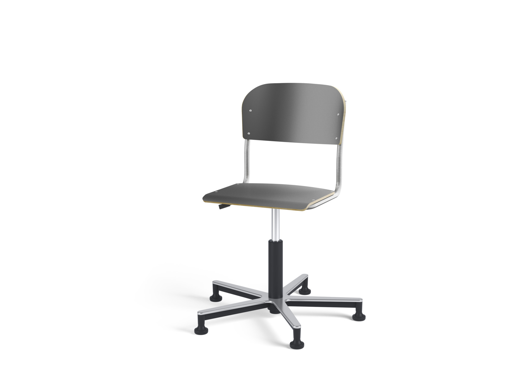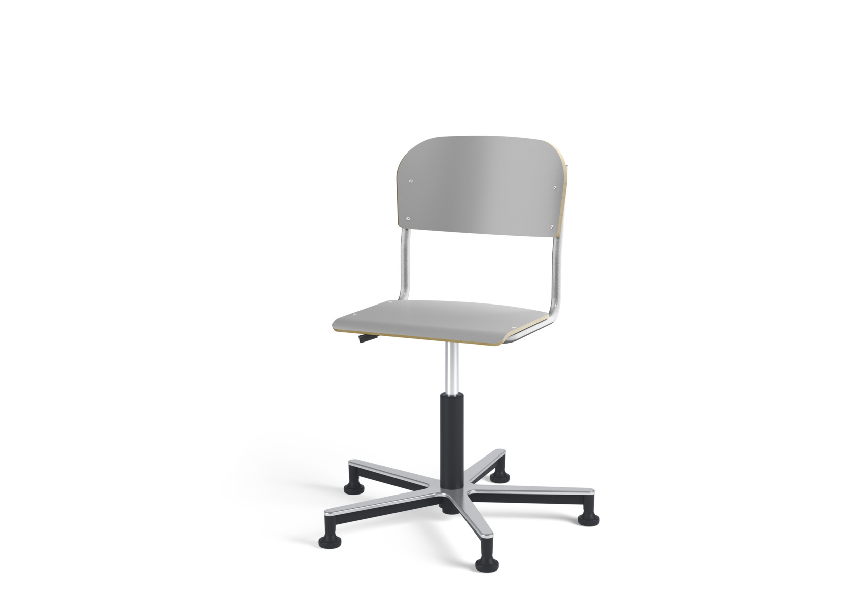 Stol Matte med gasfjäder för reglering av sitthöjd med hjälp av en spak. Sits och rygg i högtryckslaminat. Ram till sits och rygg i pulverlackerat stål, silver. Kryss i aluminium med glidfötter.