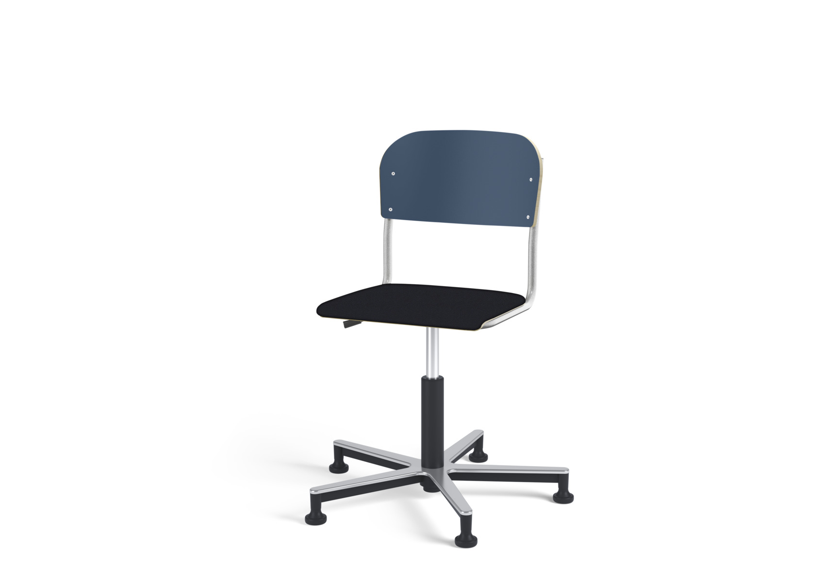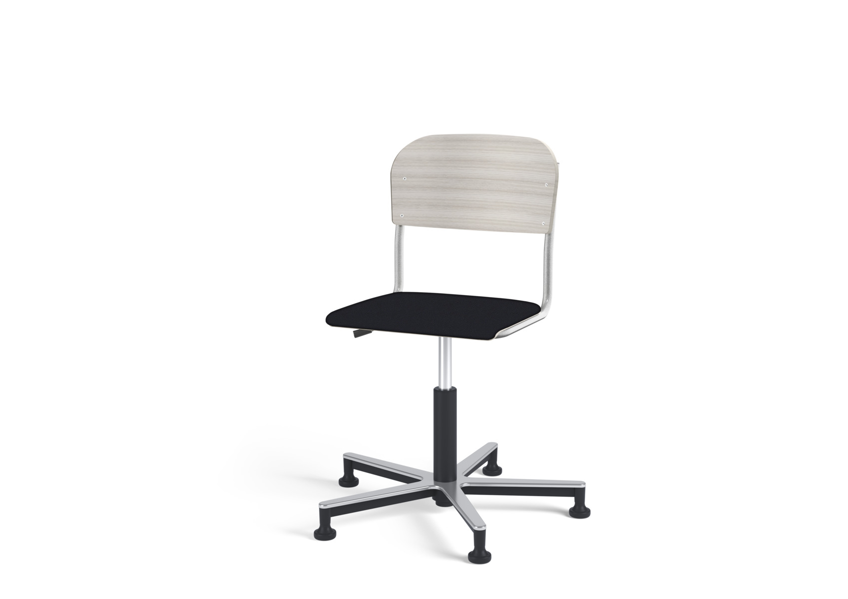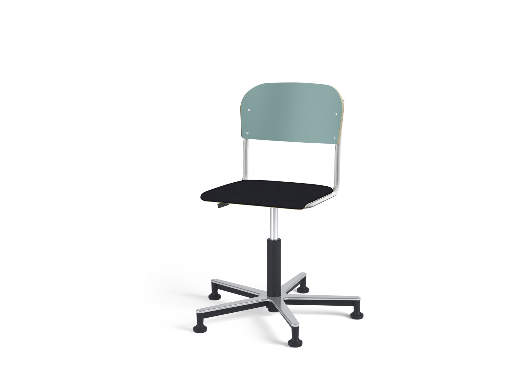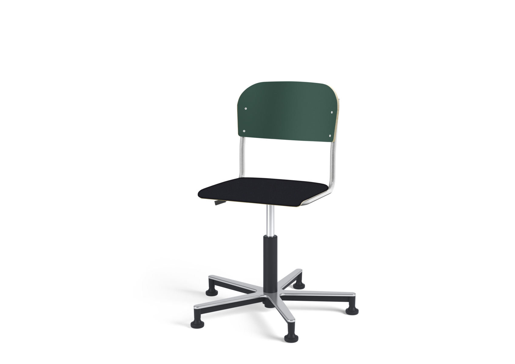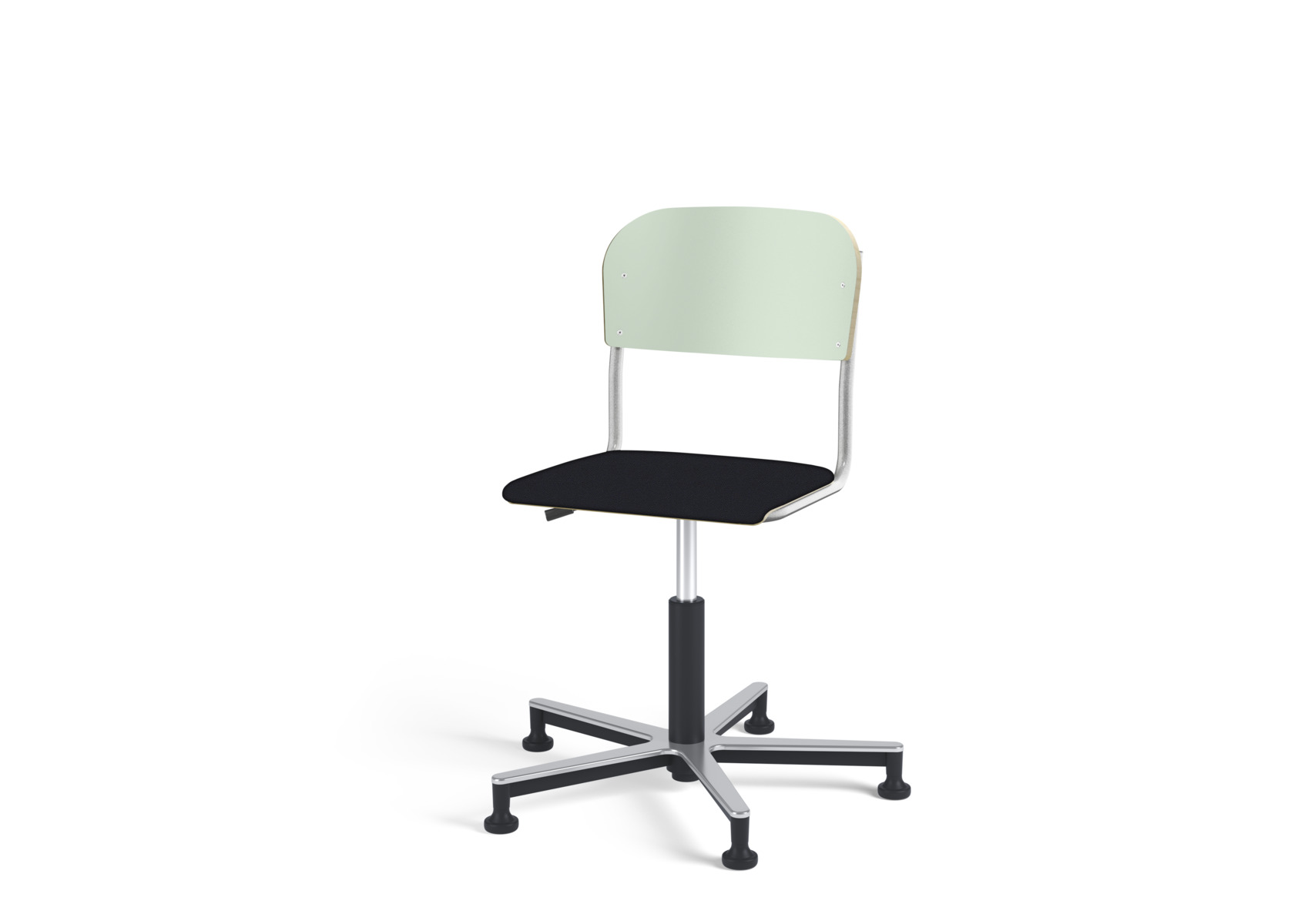 Stol Matte med gasfjäder för reglering av sitthöjd med hjälp av en spak. Sits och rygg i högtryckslaminat. Ram till sits och rygg i pulverlackerat stål, silver. Kryss i aluminium med glidfötter.