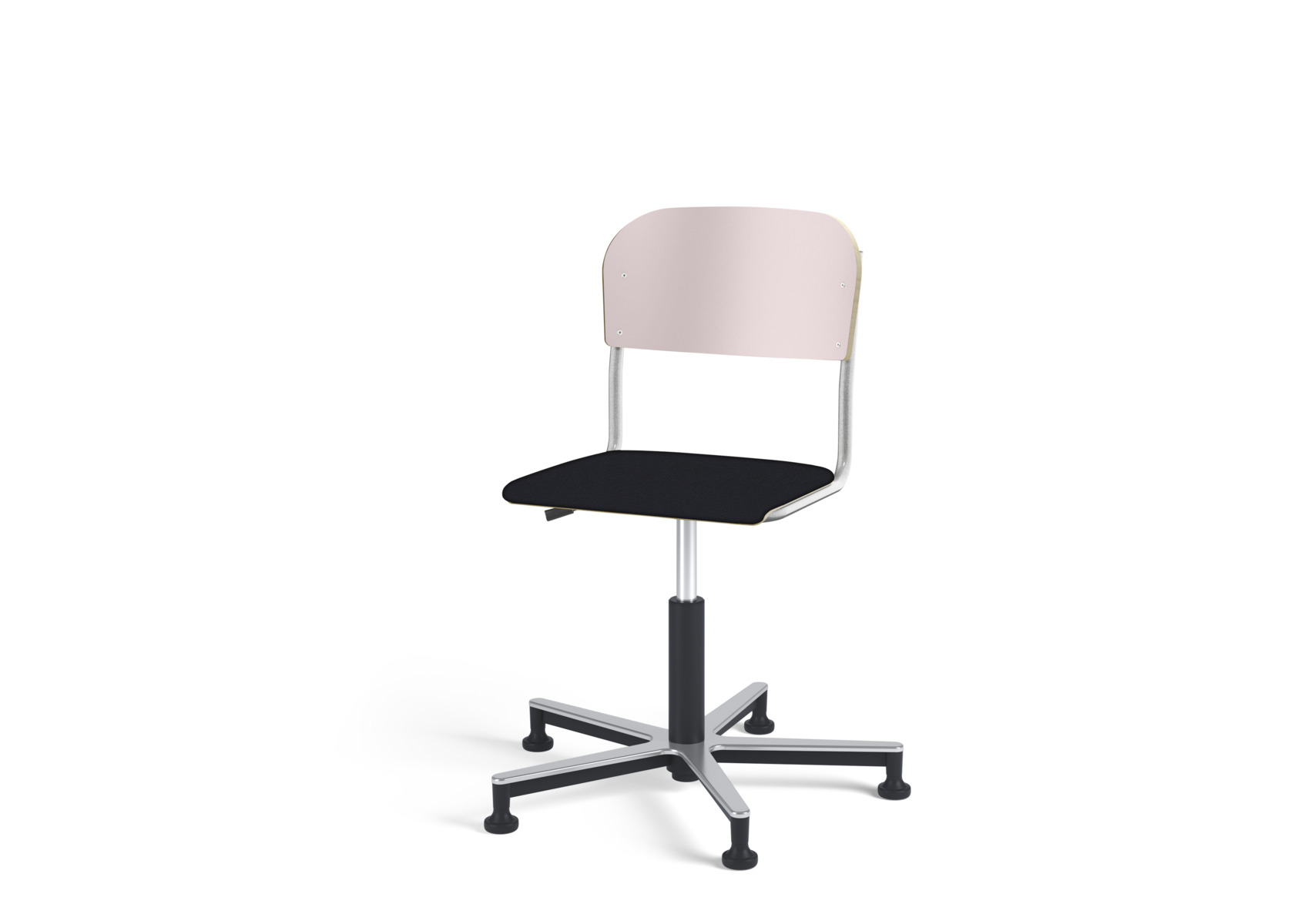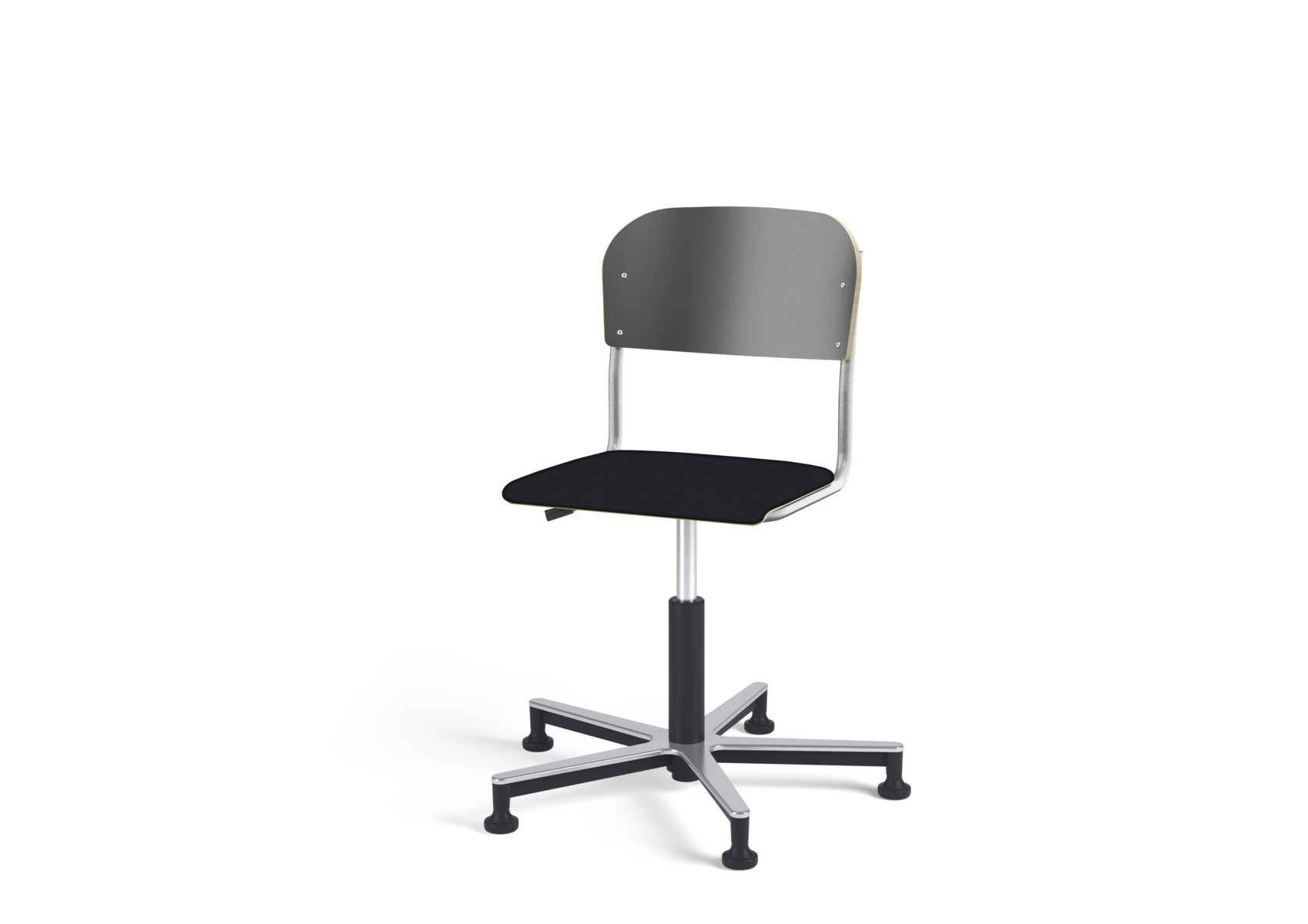 Stol Matte med gasfjäder för reglering av sitthöjd med hjälp av en spak. Sits och rygg i högtryckslaminat. Ram till sits och rygg i pulverlackerat stål, svart. Kryss i aluminium med glidfötter.