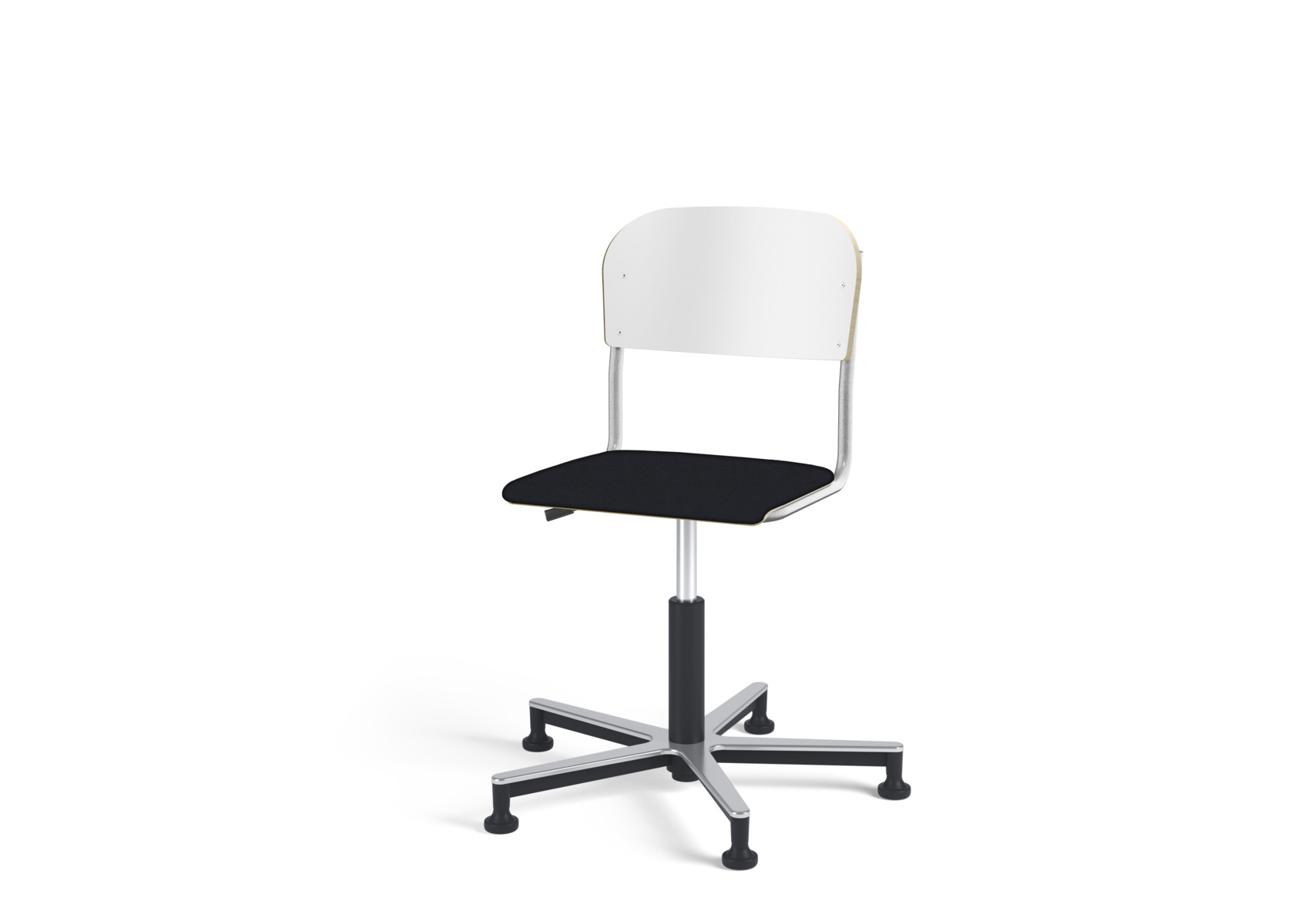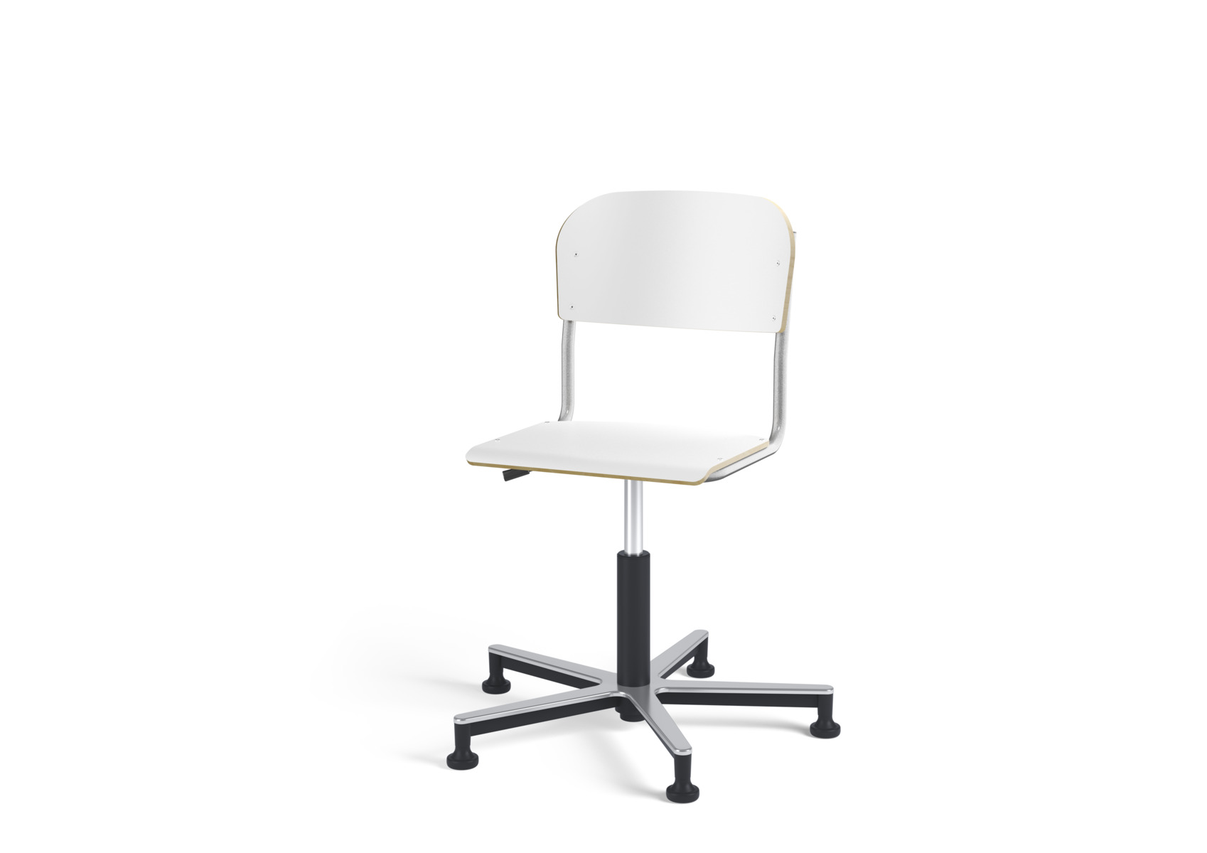 Stol Matte med gasfjäder för reglering av sitthöjd med hjälp av en spak. Sits och rygg i högtryckslaminat. Ram till sits och rygg i pulverlackerat stål, vit. Kryss i aluminium med glidfötter.