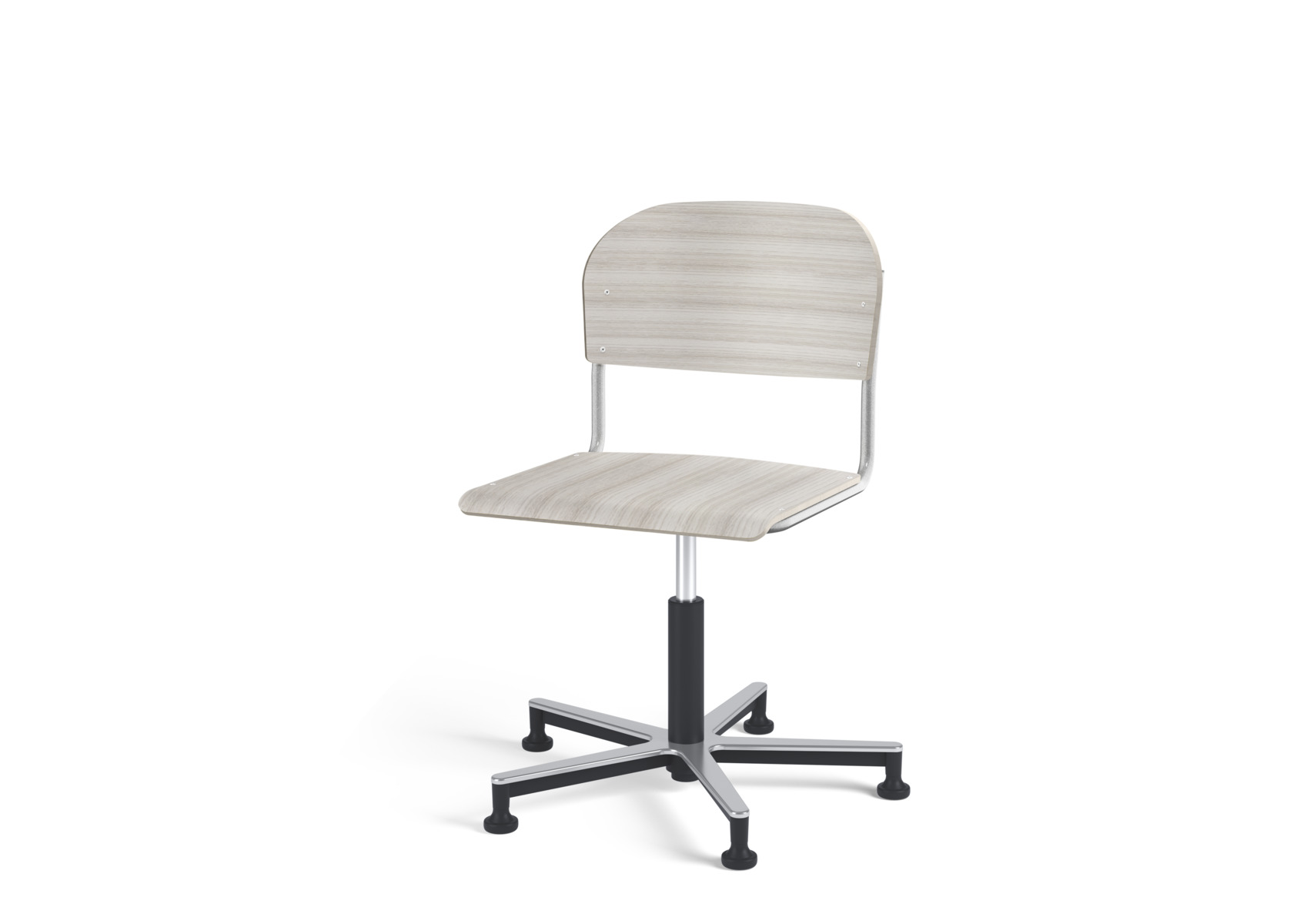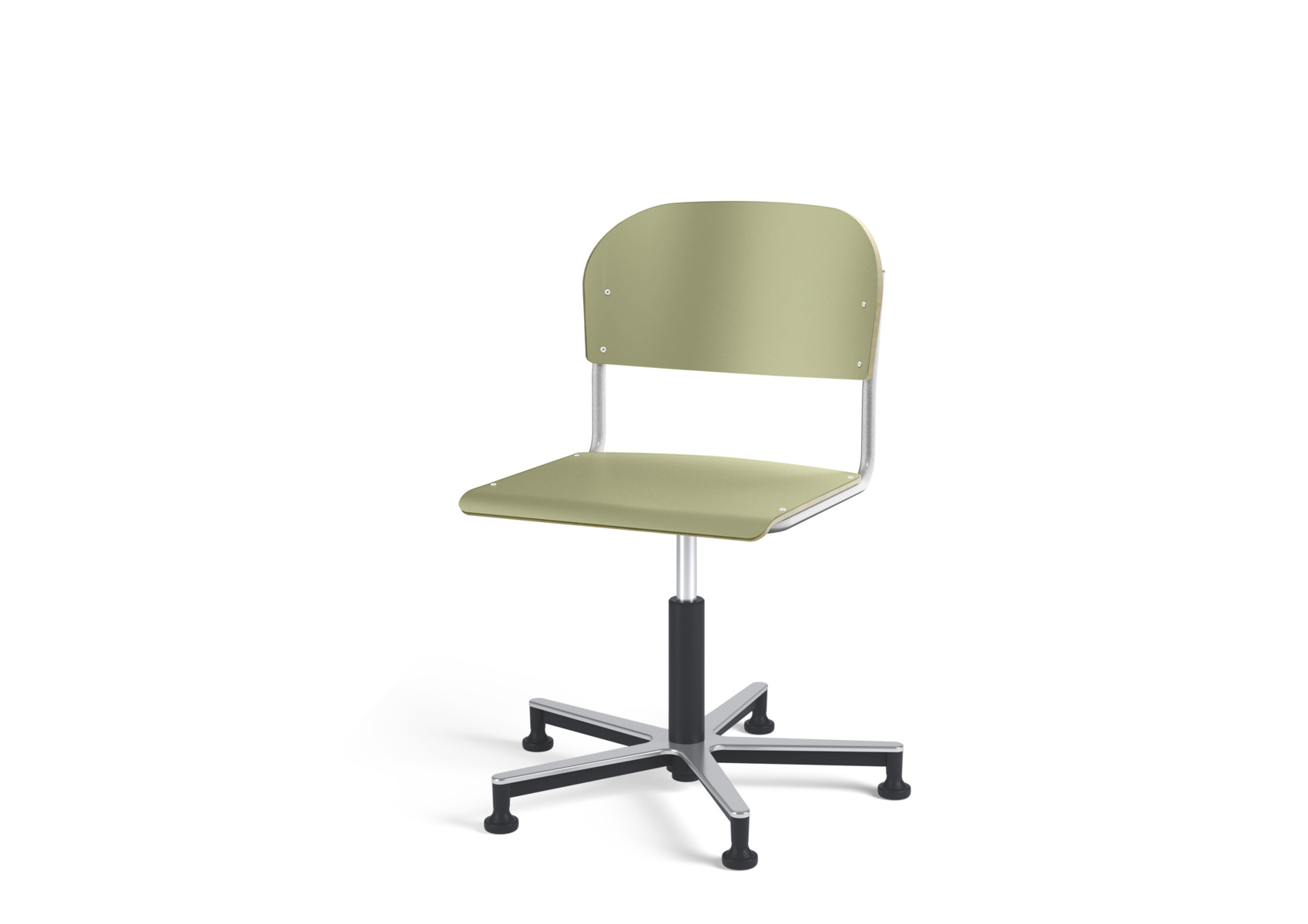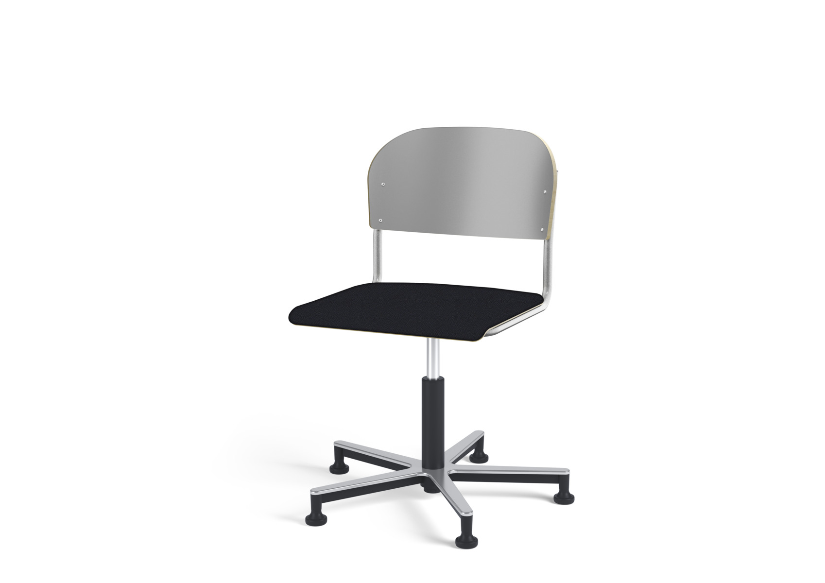 Stol Matte med gasfjäder för reglering av sitthöjd med hjälp av en spak. Sits och rygg i högtryckslaminat. Ram till sits och rygg i pulverlackerat stål, silver. Kryss i aluminium med glidfötter.