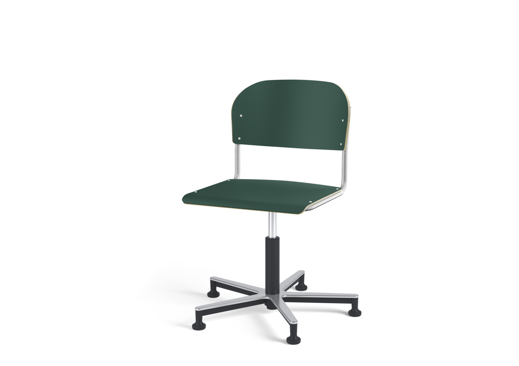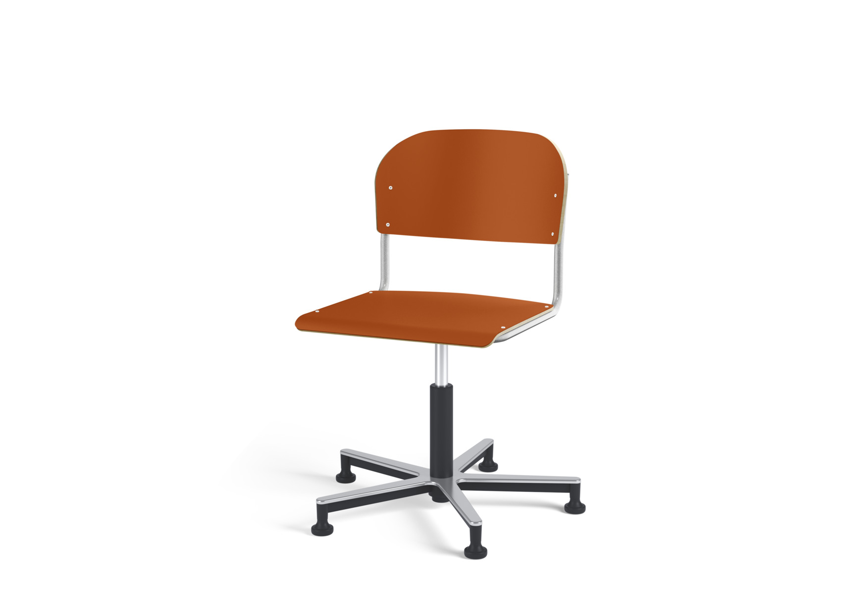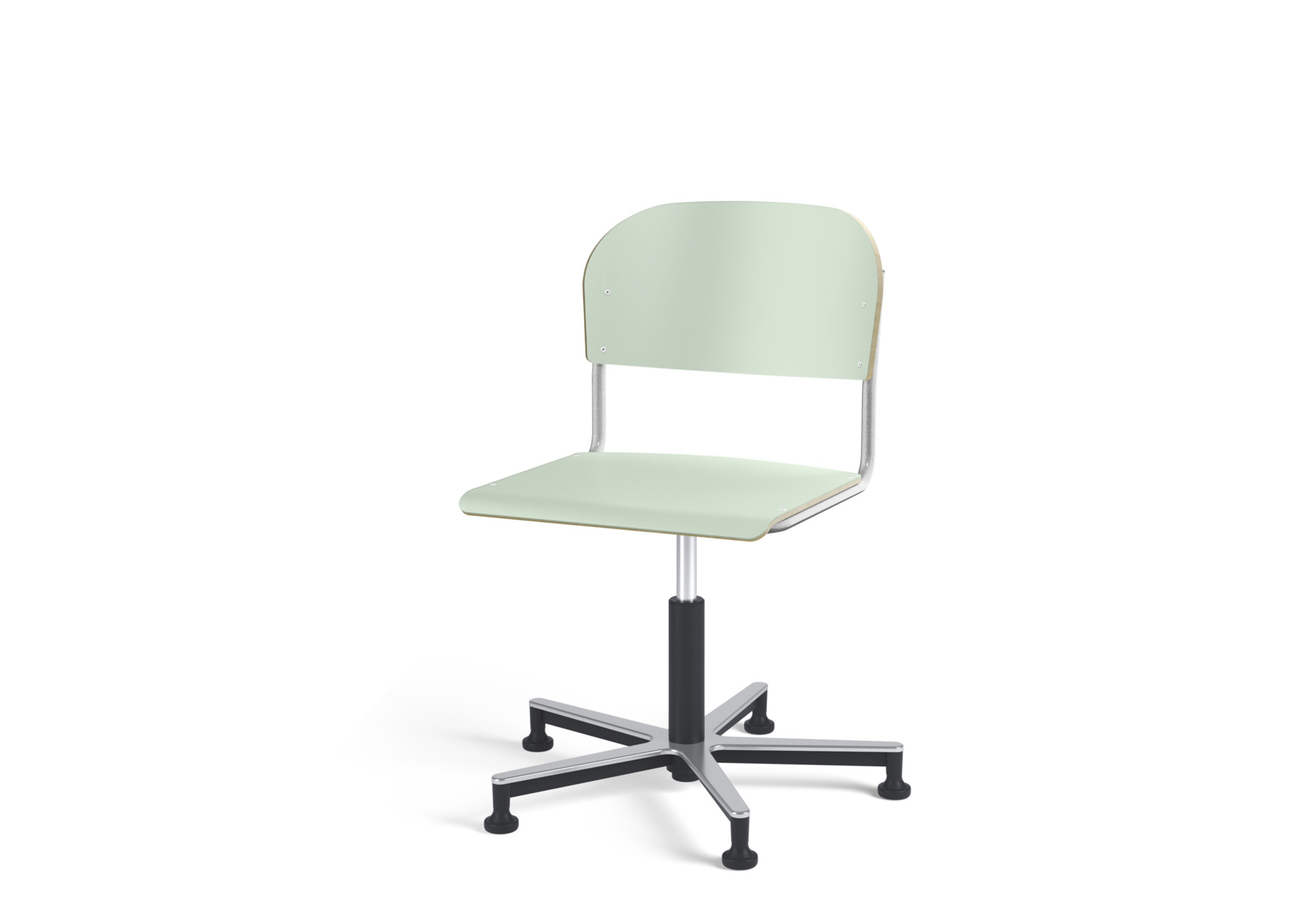 Stol Matte med gasfjäder för reglering av sitthöjd med hjälp av en spak. Sits och rygg i högtryckslaminat. Ram till sits och rygg i pulverlackerat stål, silver. Kryss i aluminium med glidfötter.