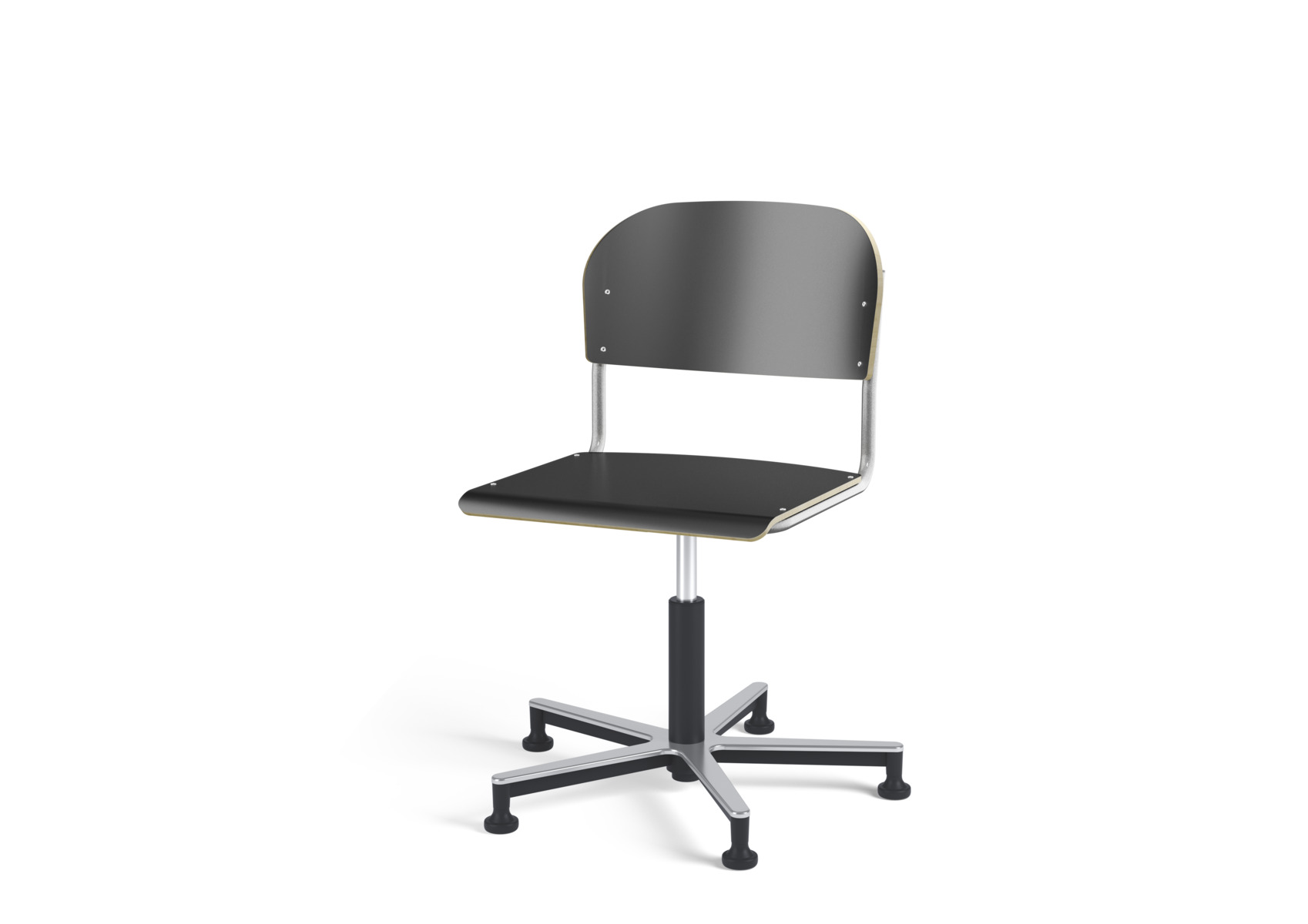 Stol Matte med gasfjäder för reglering av sitthöjd med hjälp av en spak. Sits och rygg i högtryckslaminat. Ram till sits och rygg i pulverlackerat stål, svart. Kryss i aluminium med glidfötter.