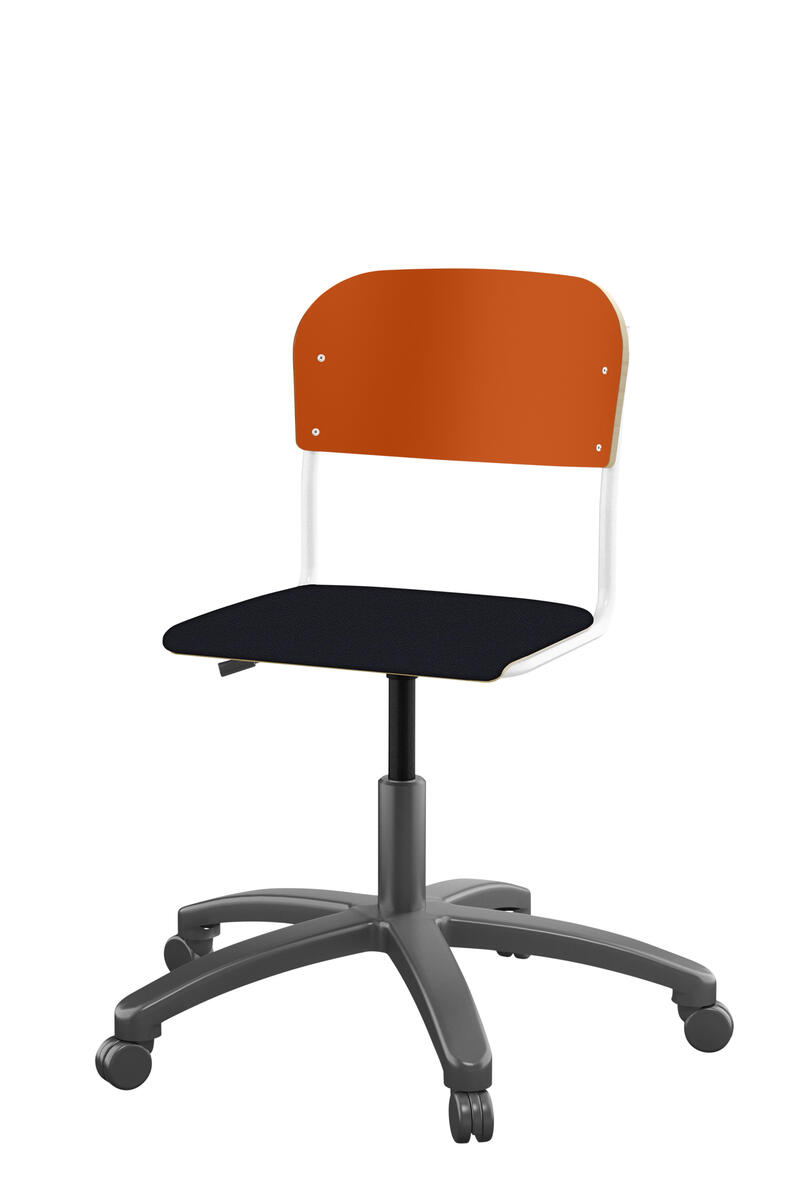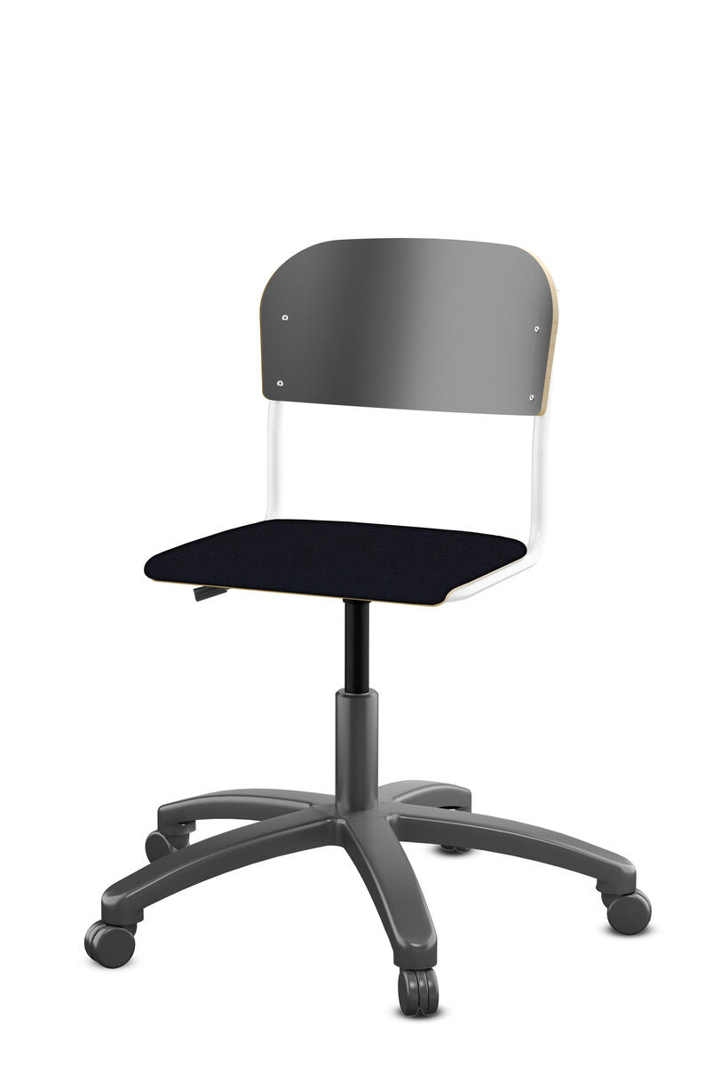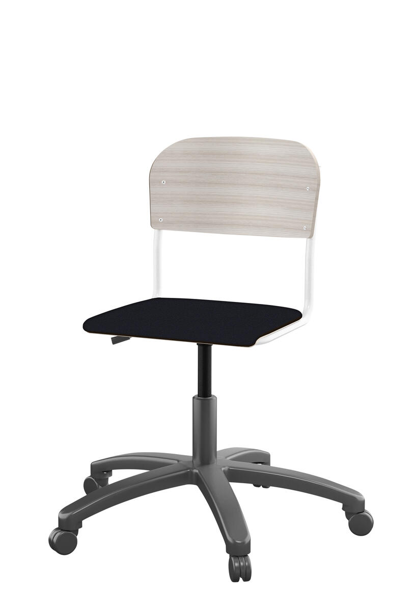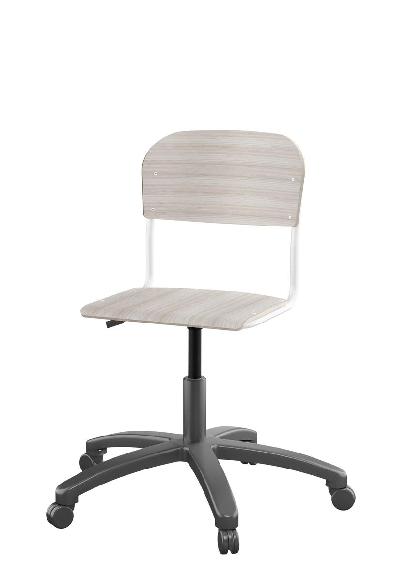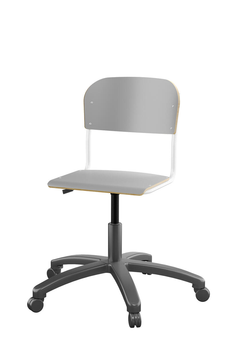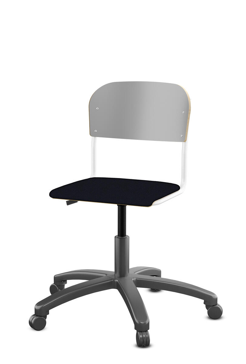 Med gasfjäder. Levereras omonterad. Sitthöjd: steglöst ställbar 38-51 cm. Sitsmått: 36x35 cm. Vikt 7 kg. Sits och rygg i högtryckslaminat.