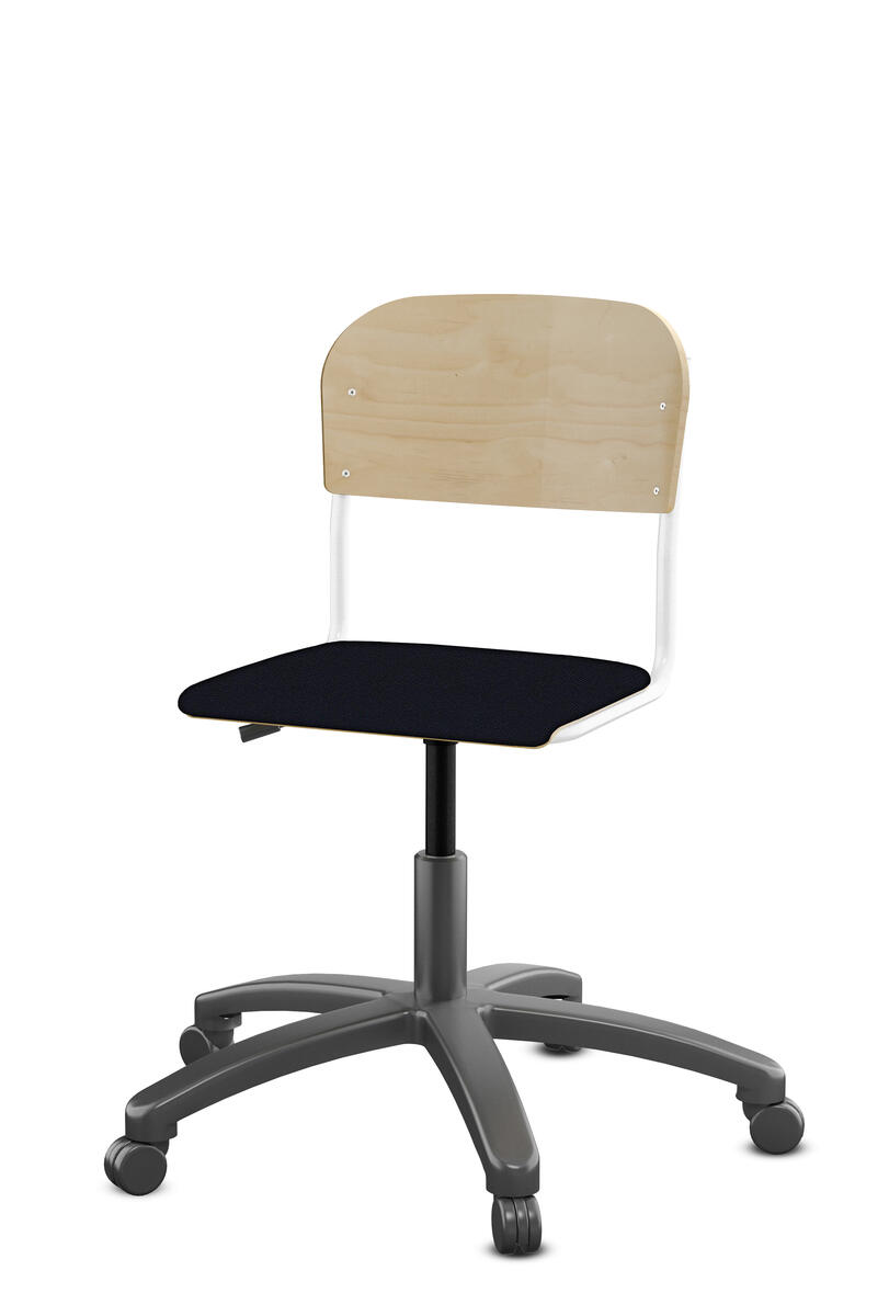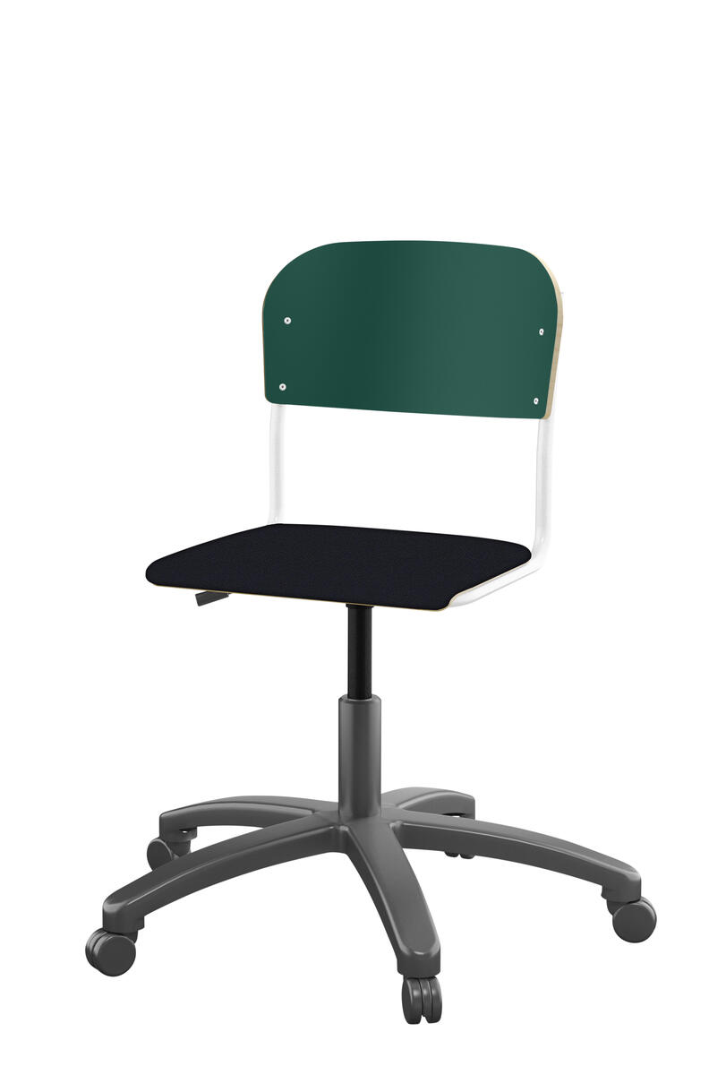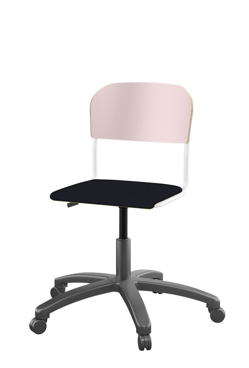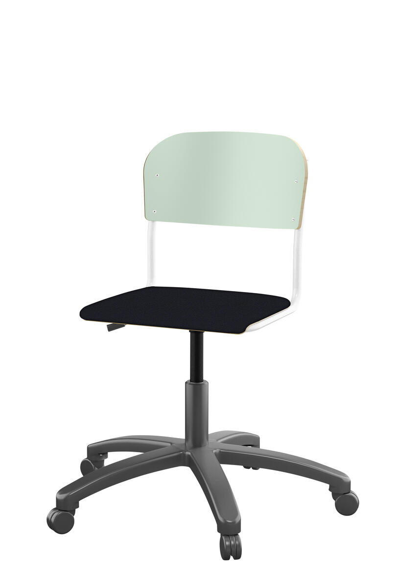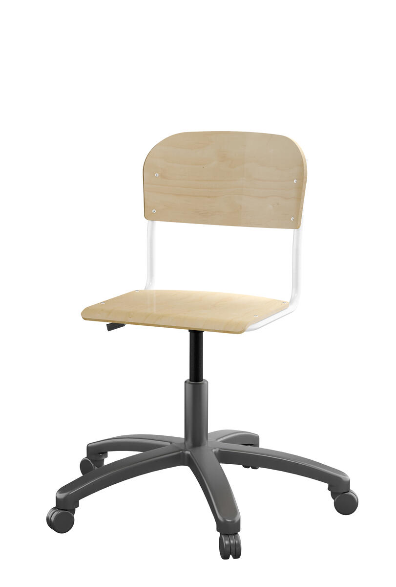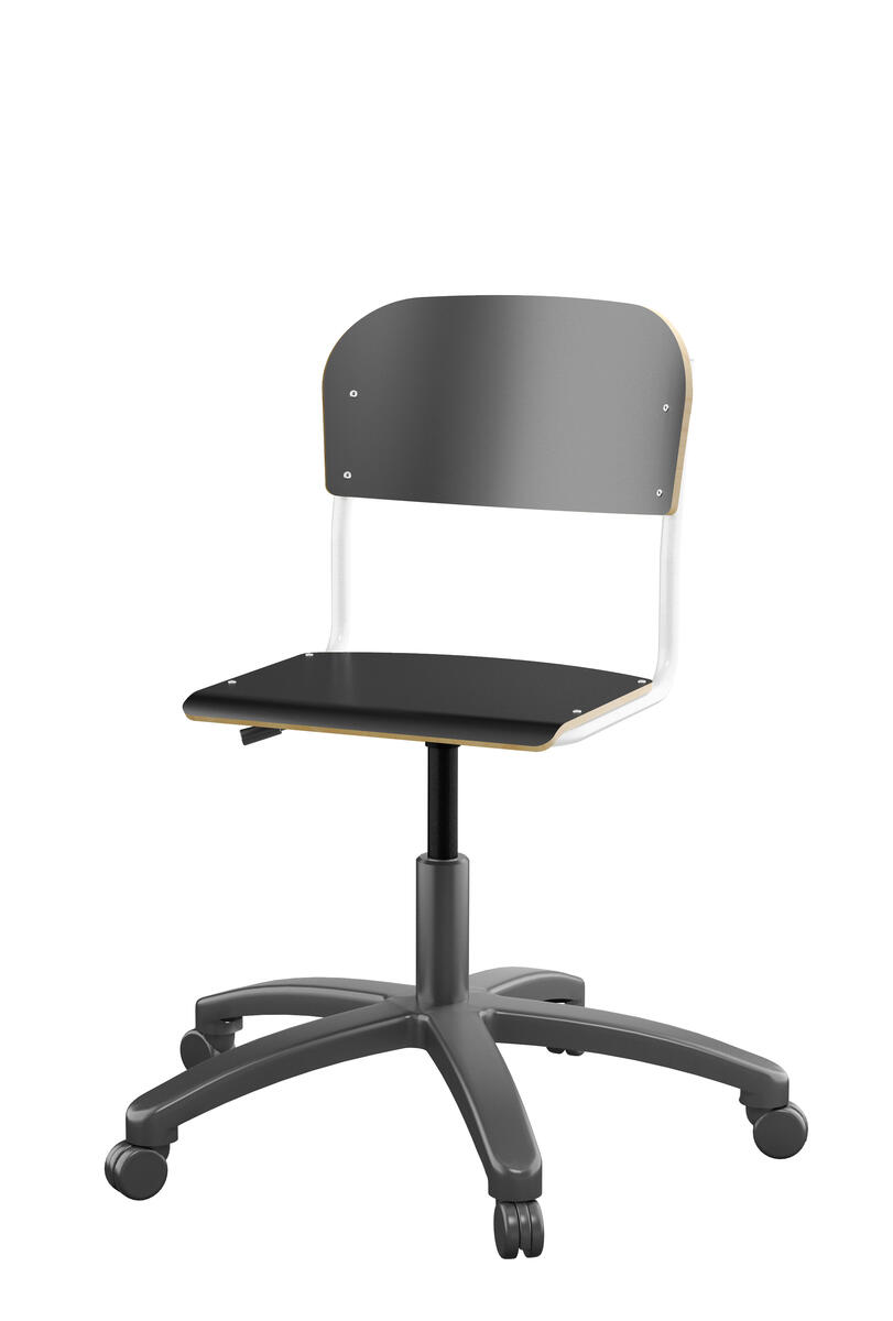 Med gasfjäder. Levereras omonterad. Sitthöjd: steglöst ställbar 38-51 cm. Sitsmått: 36x35 cm. Vikt 7 kg. Sits och rygg i högtryckslaminat.