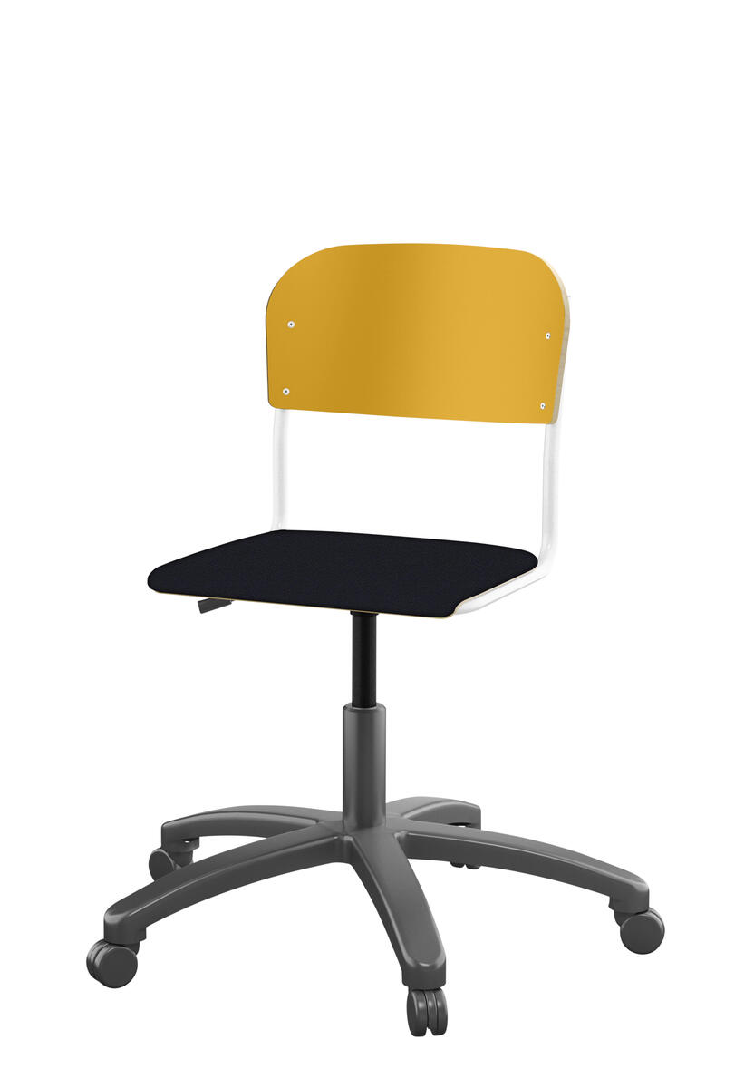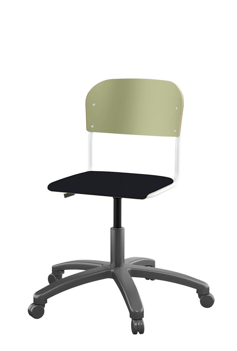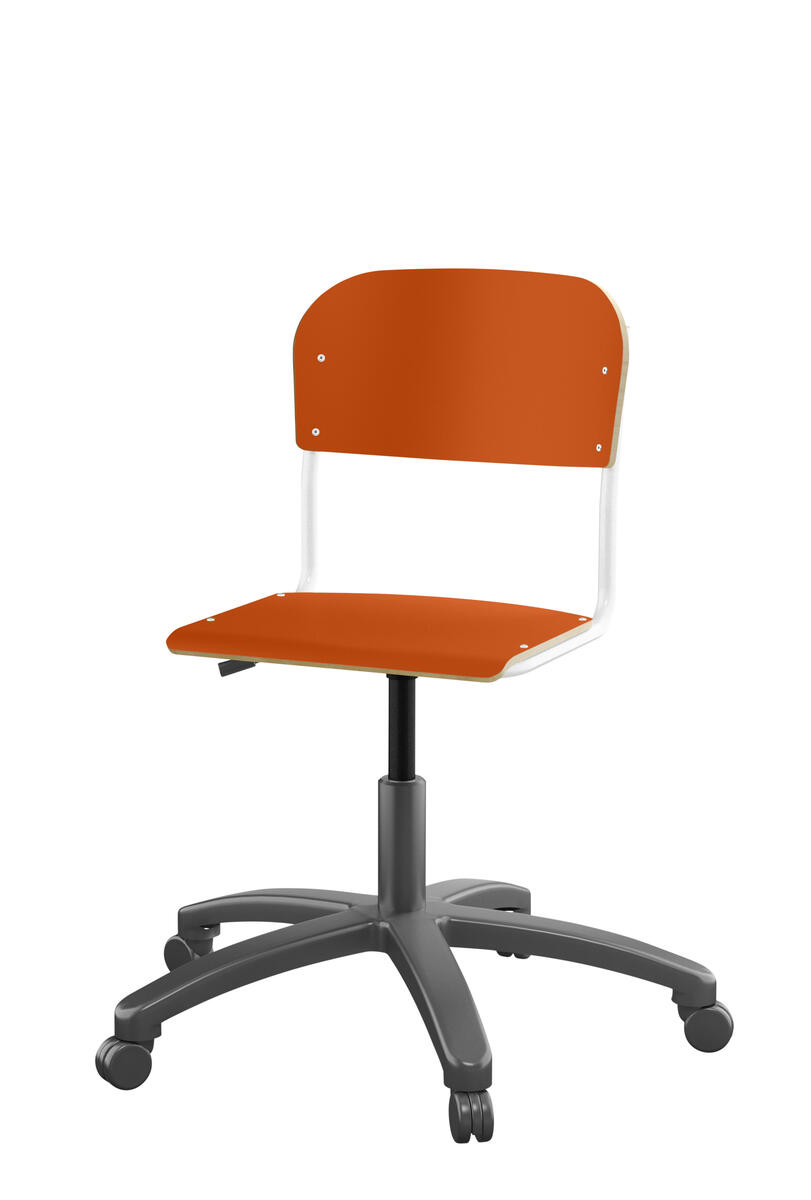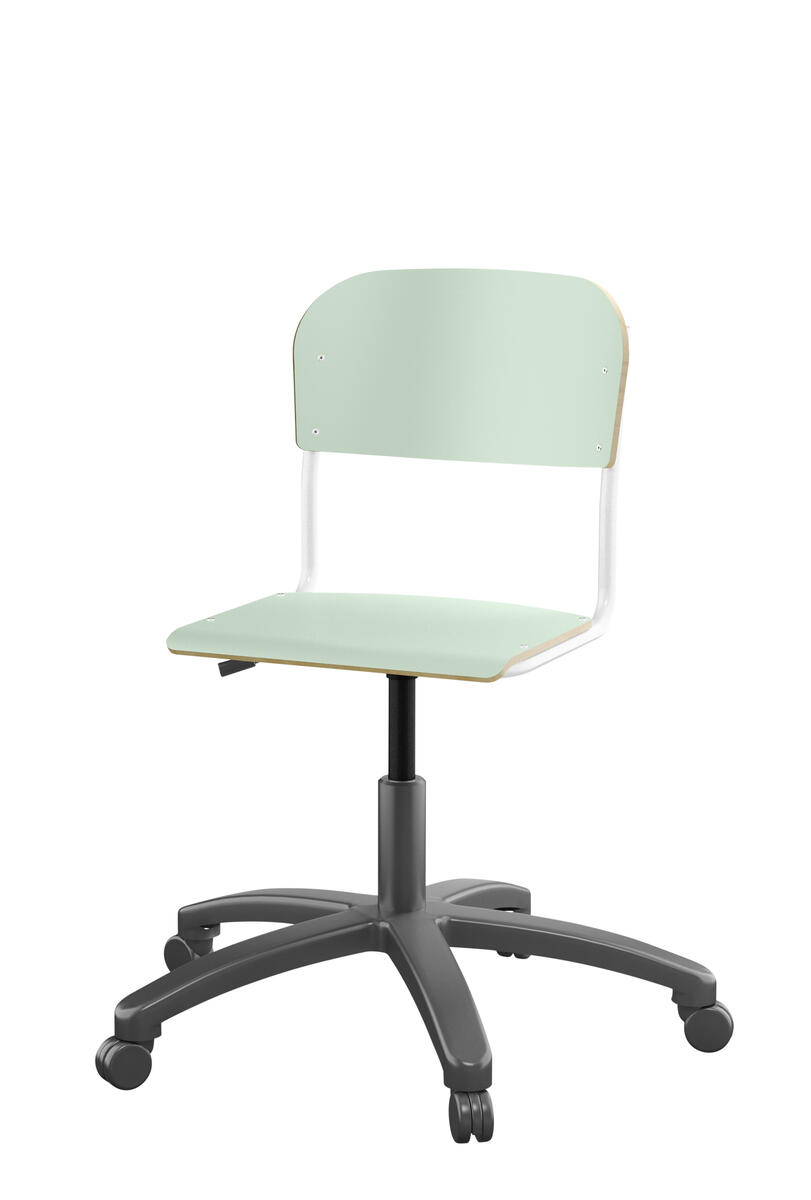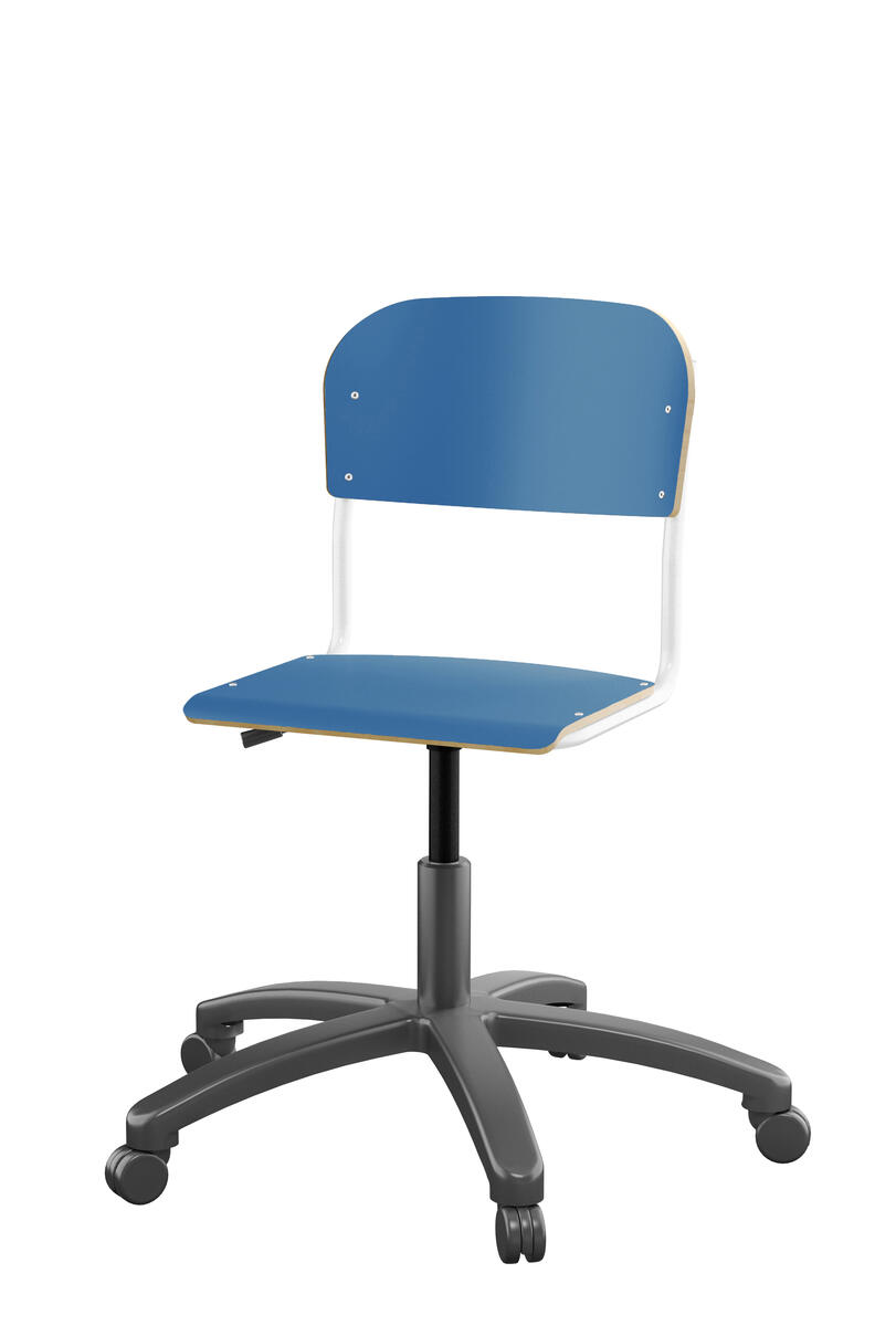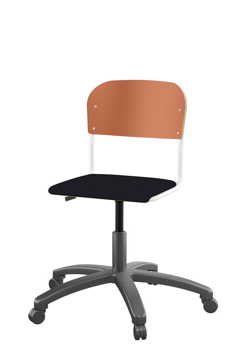 Med gasfjäder. Levereras omonterad. Sitthöjd: steglöst ställbar 38-51 cm. Sitsmått: 36x35 cm. Vikt 7 kg. Sits och rygg i högtryckslaminat.