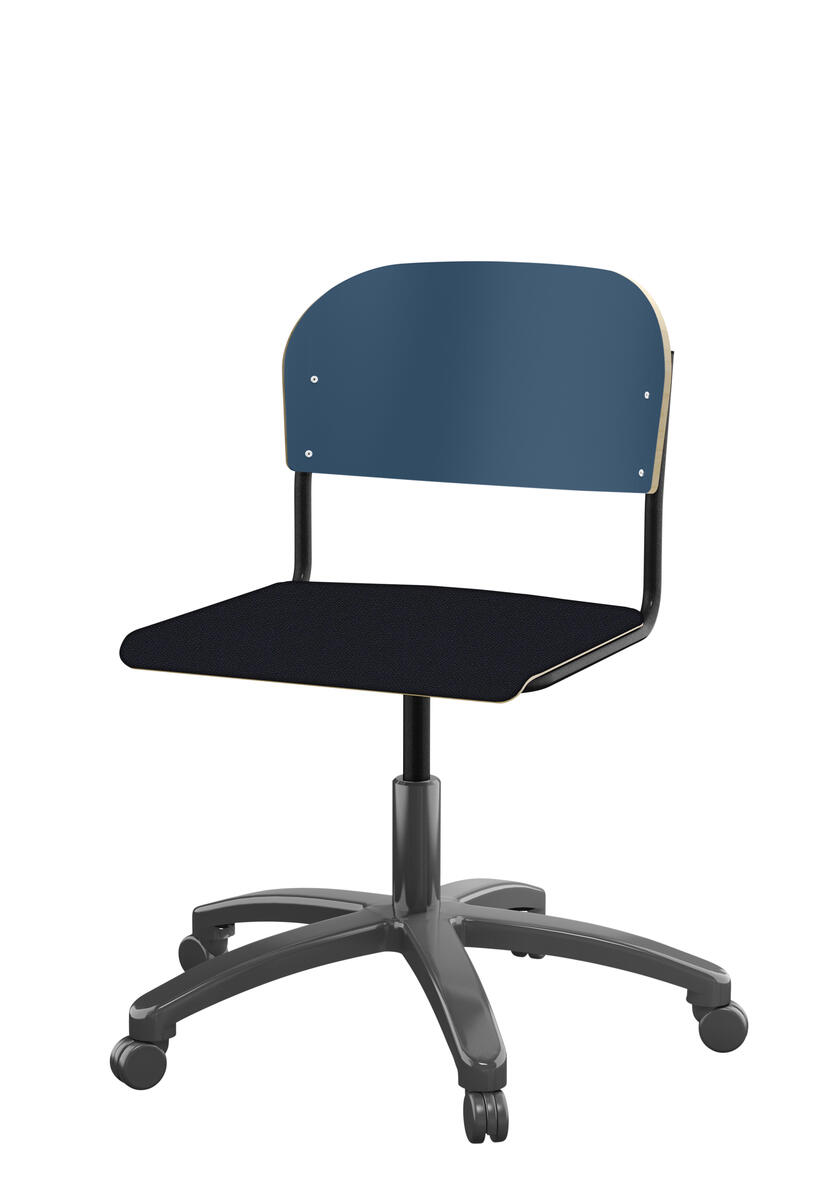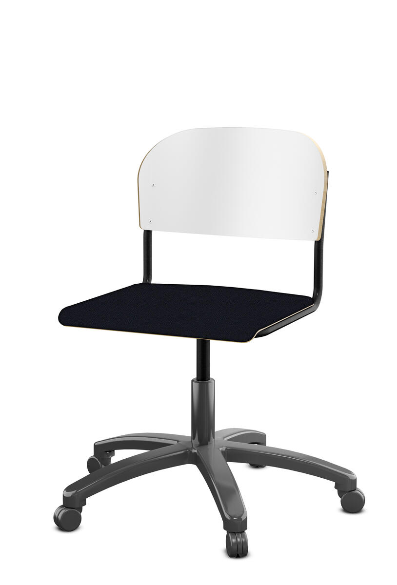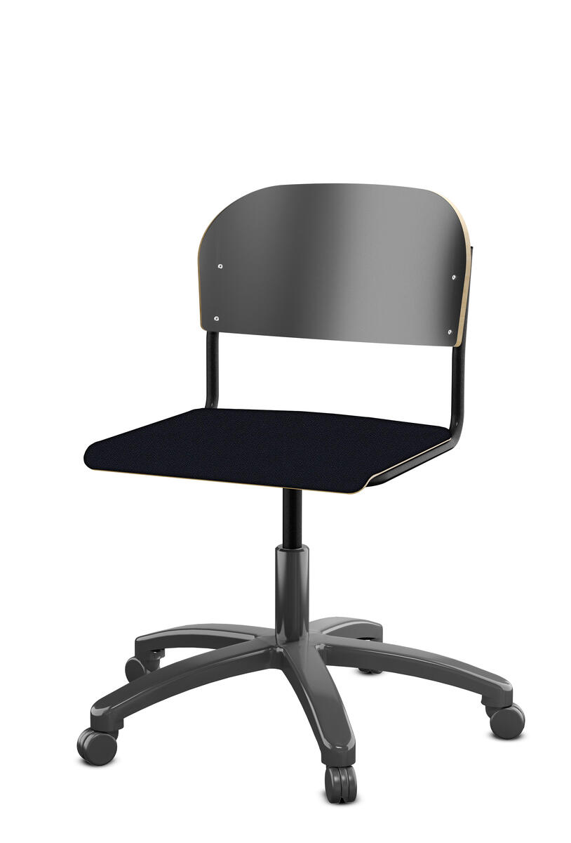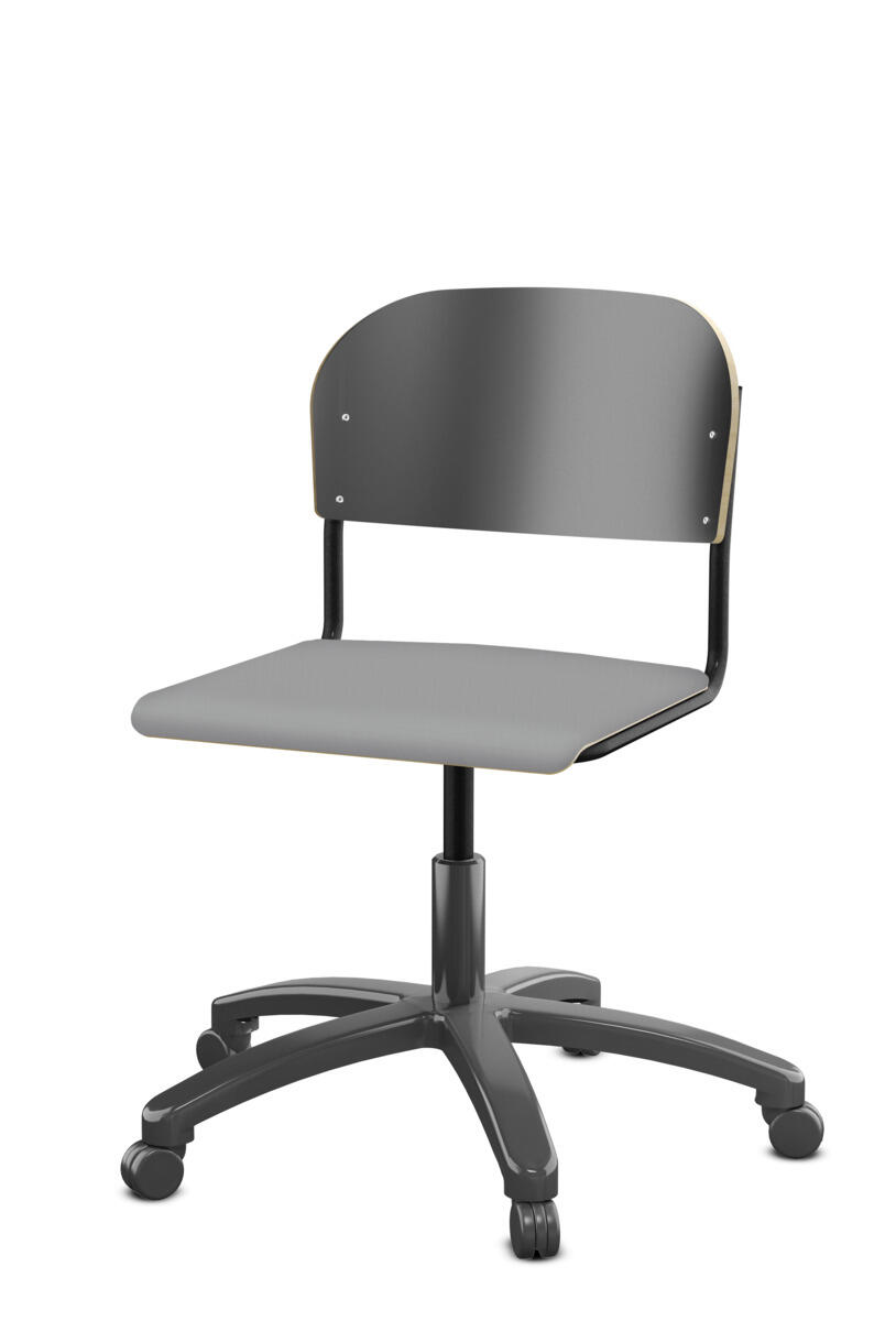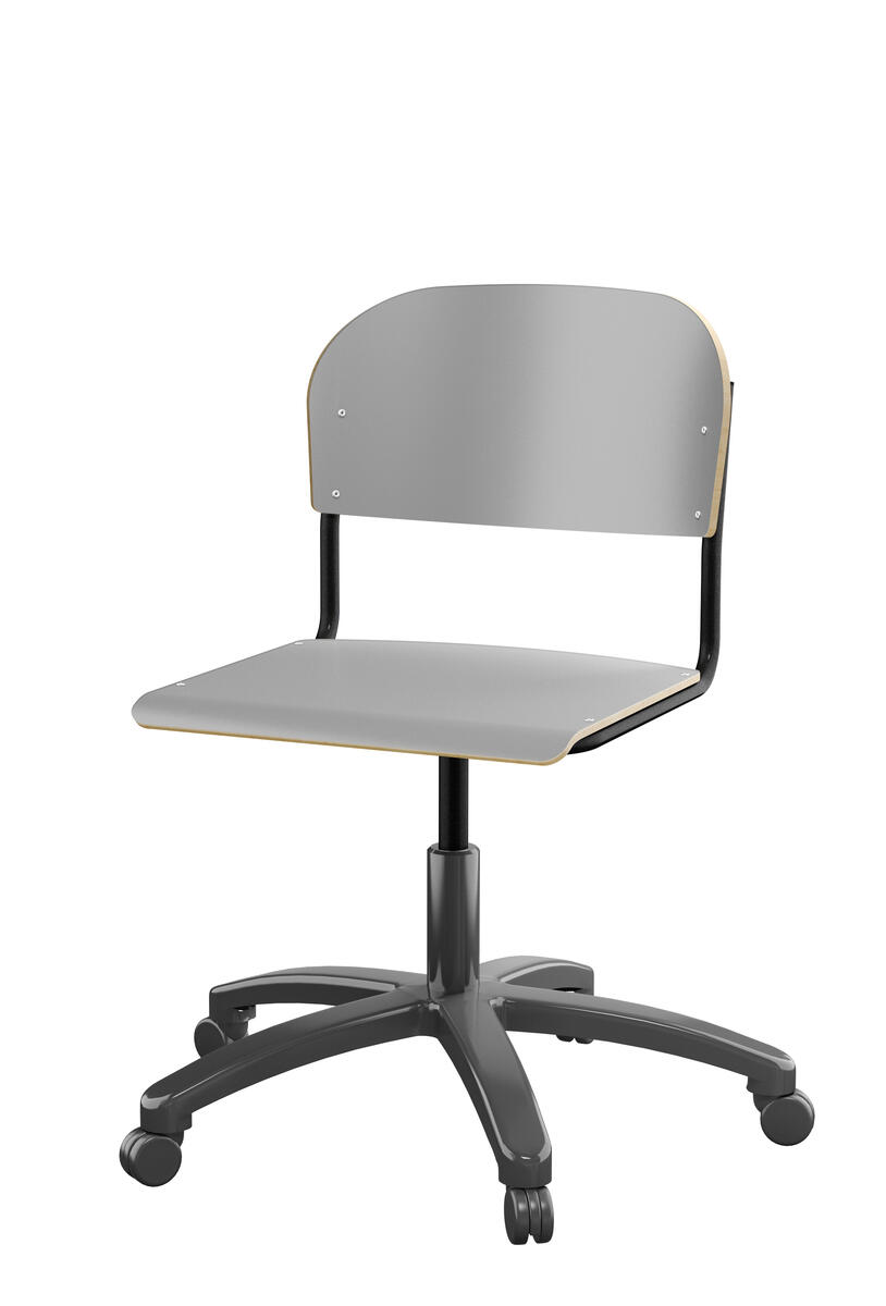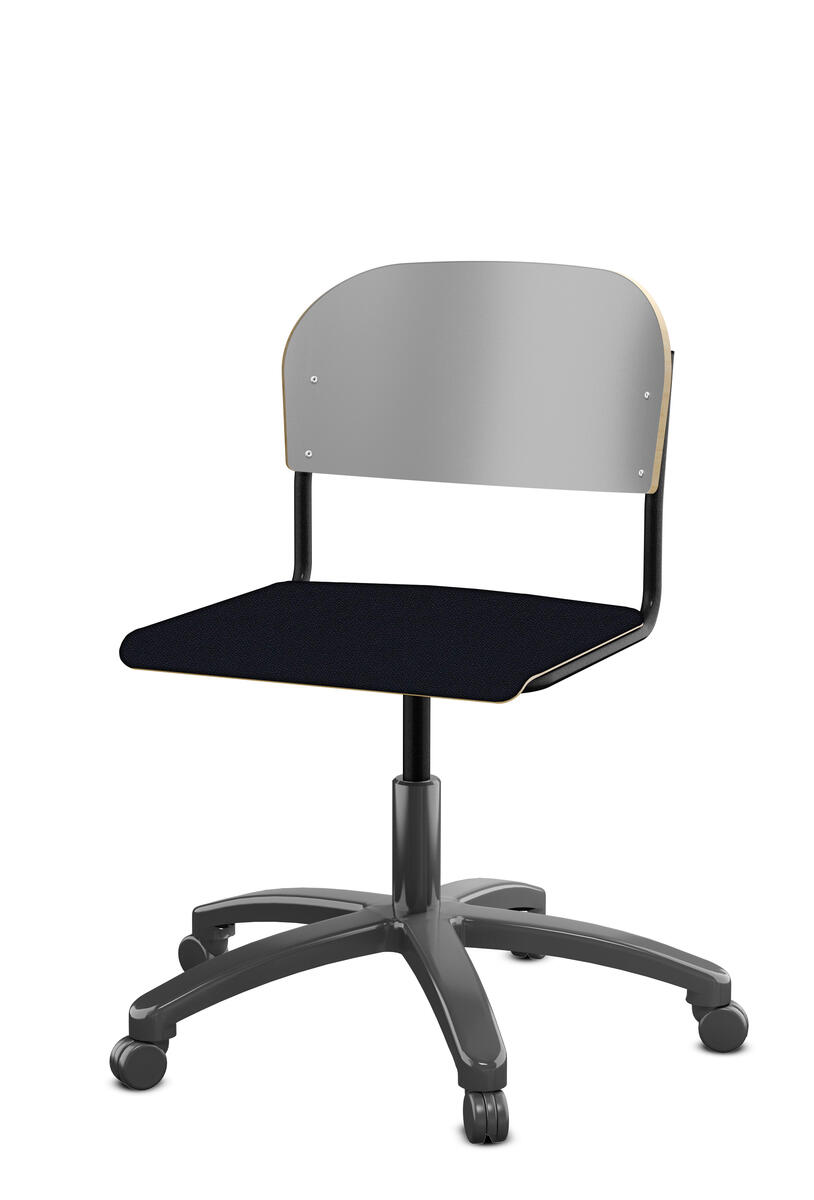 • Stol Matte sh 45-56 cm hög 5-kryss med hjul stor sits silverstativ