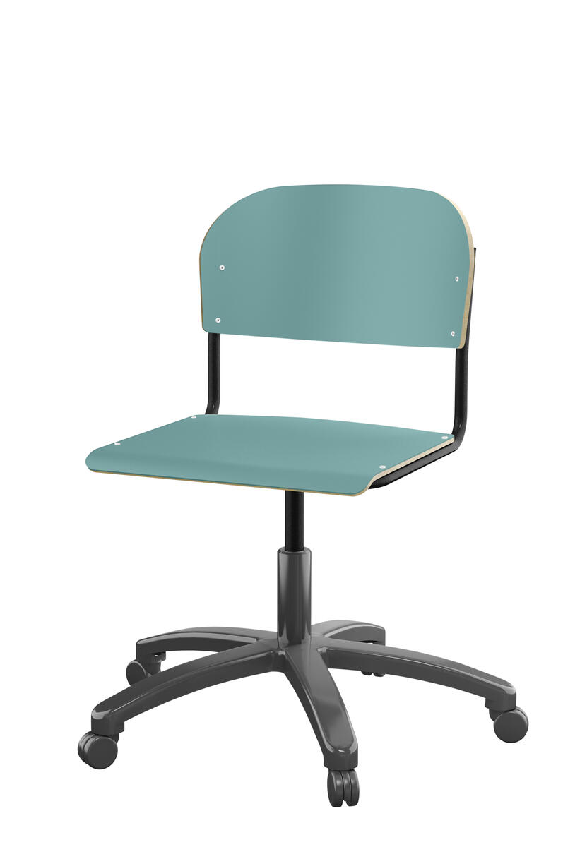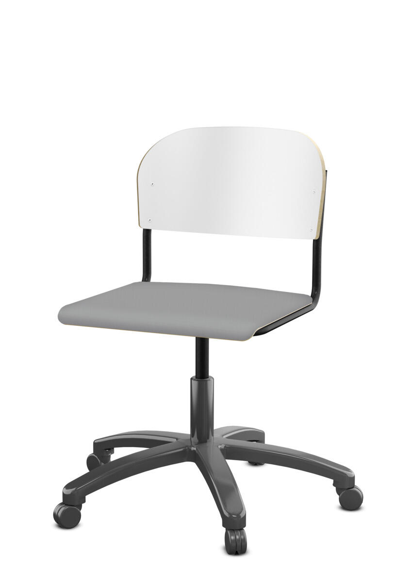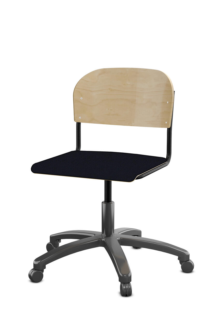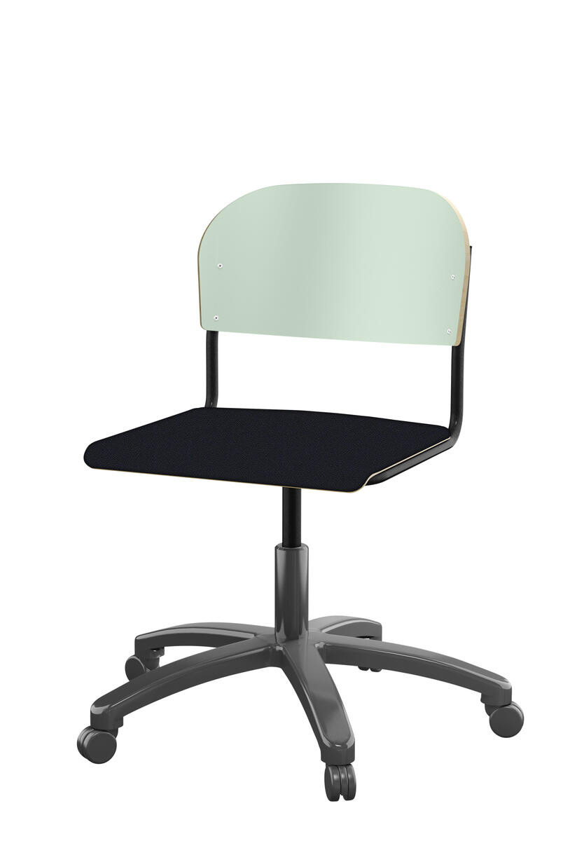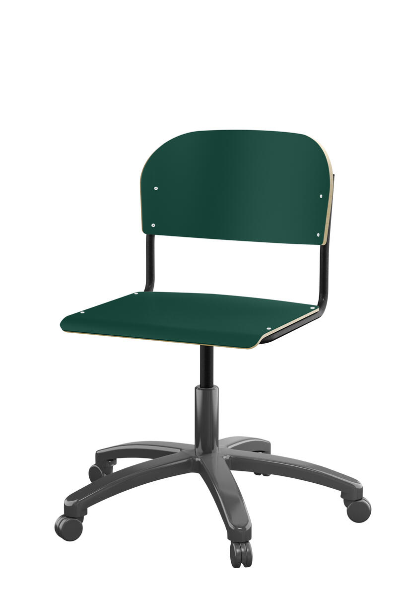 • Stol Matte sh 45-56 cm hög 5-kryss med hjul stor sits silverstativ