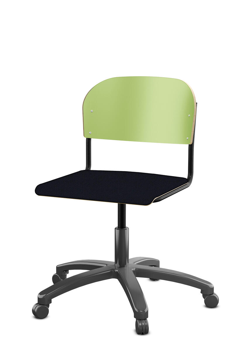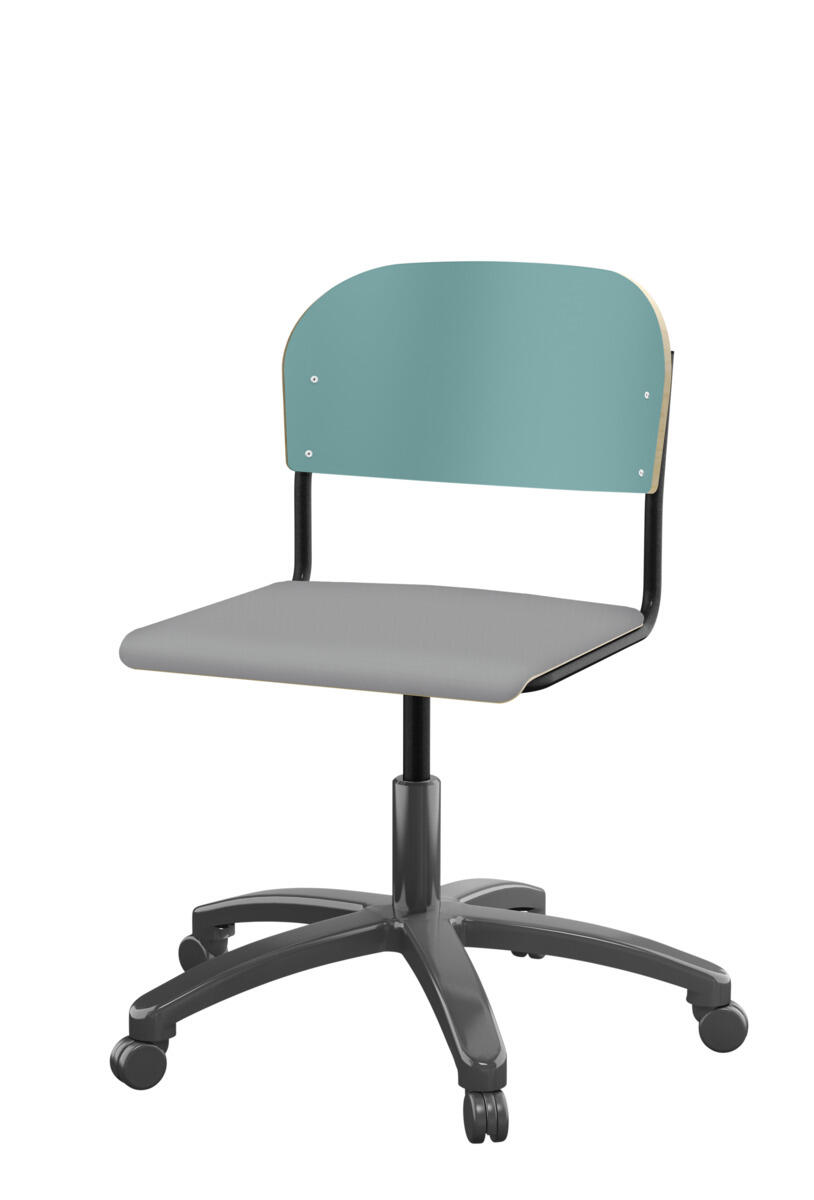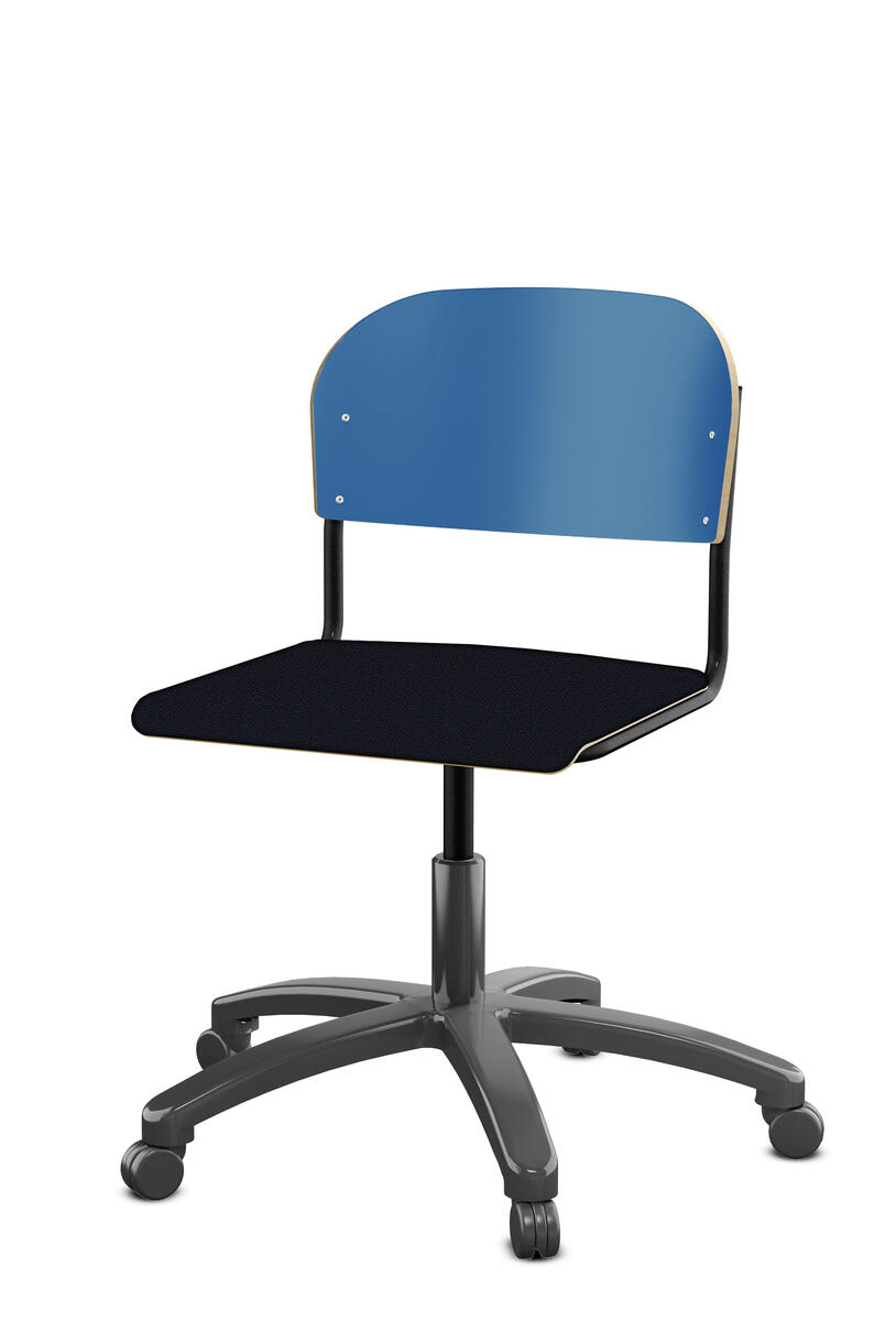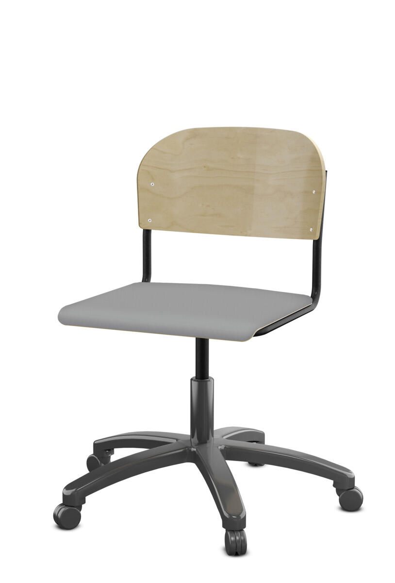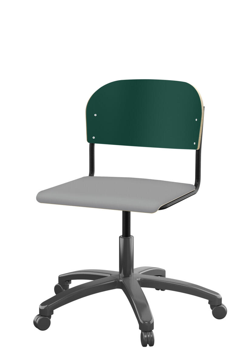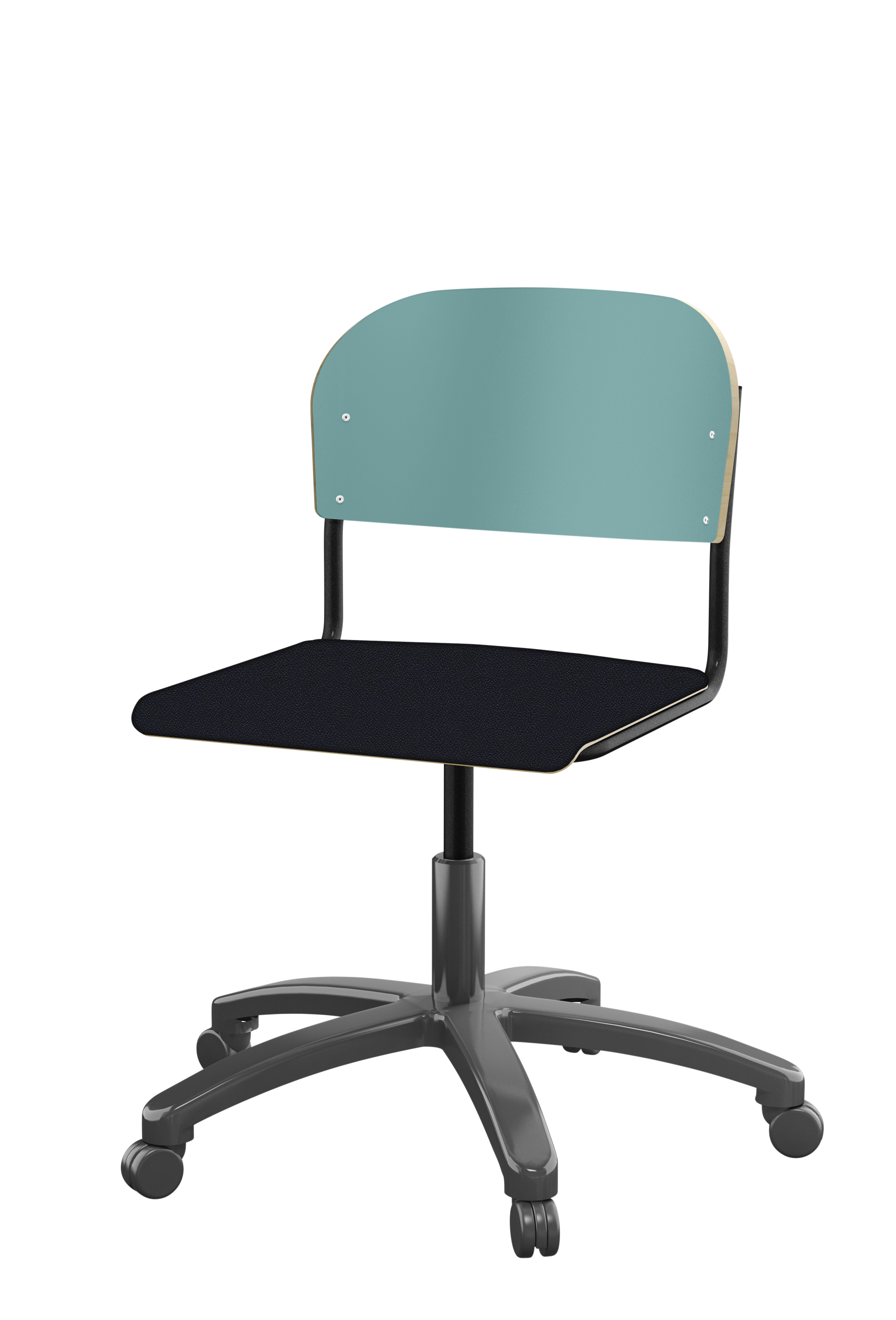 • Stol Matte sh 45-56 cm hög 5-kryss med hjul stor sits silverstativ