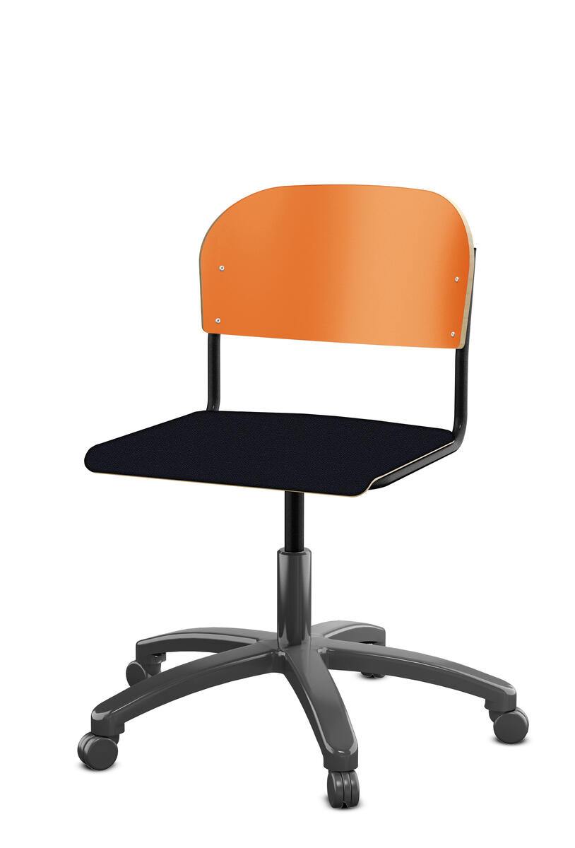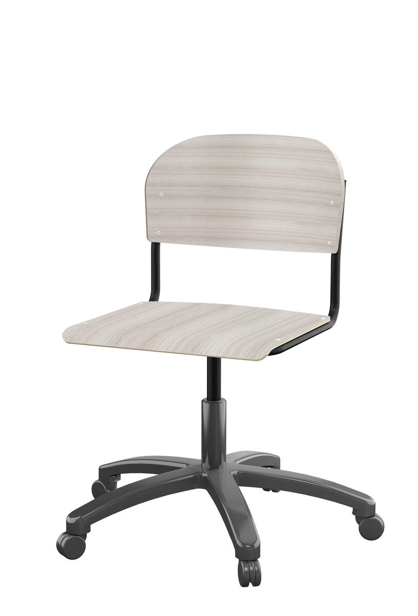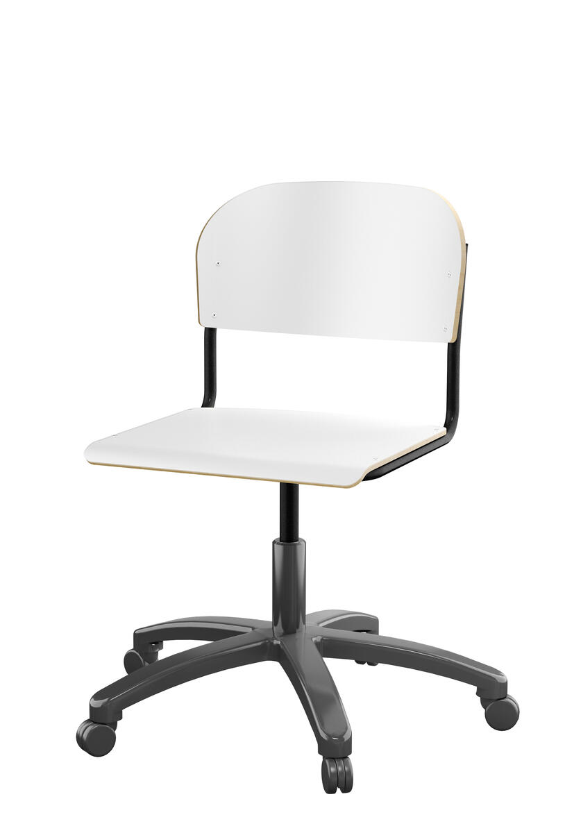 Med gasfjäder. Levereras omonterad. Sitthöjd: steglöst ställbar 38-51 cm. Sitsmått: 36x35 cm. Vikt 7 kg. Sits och rygg i högtryckslaminat.