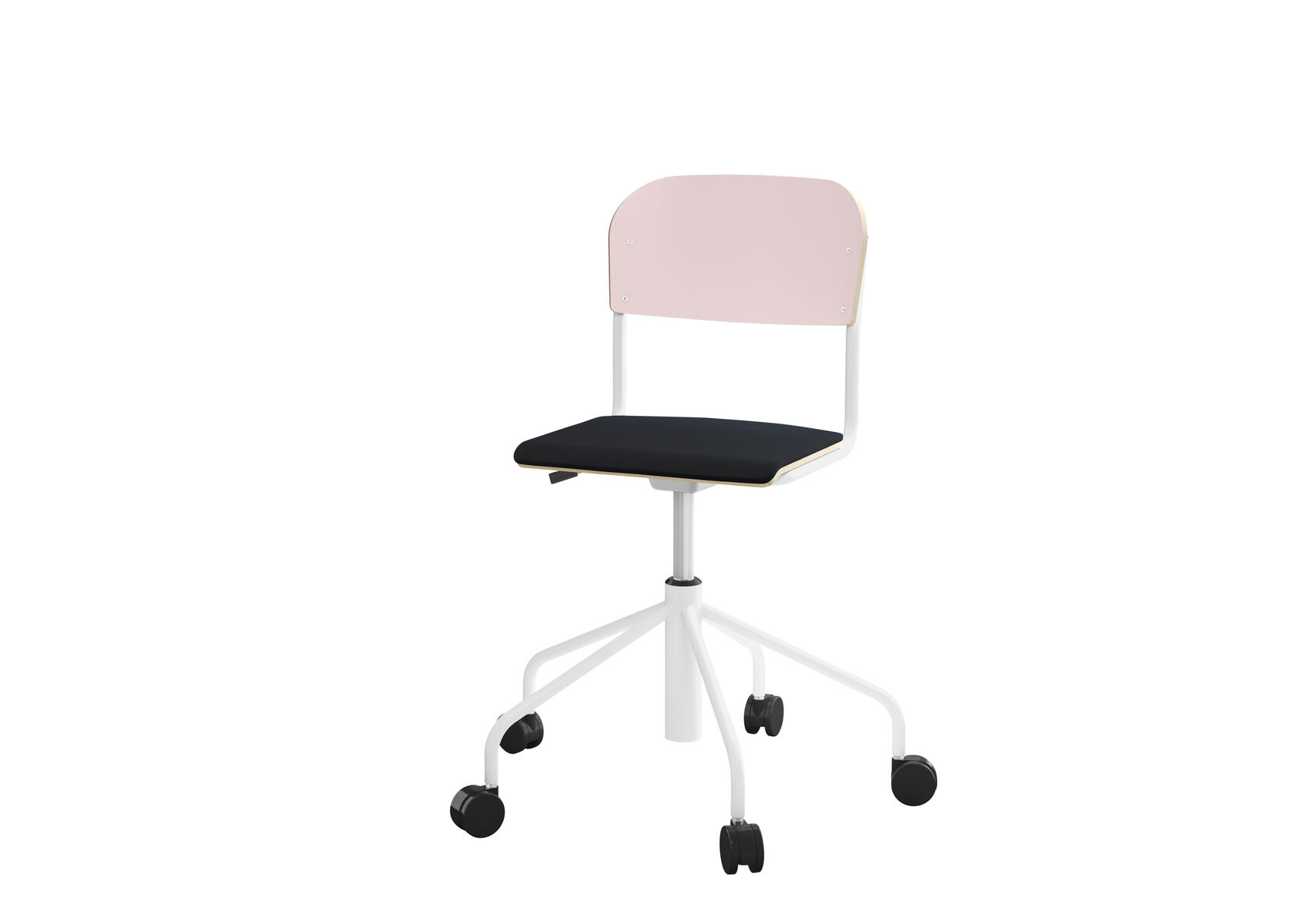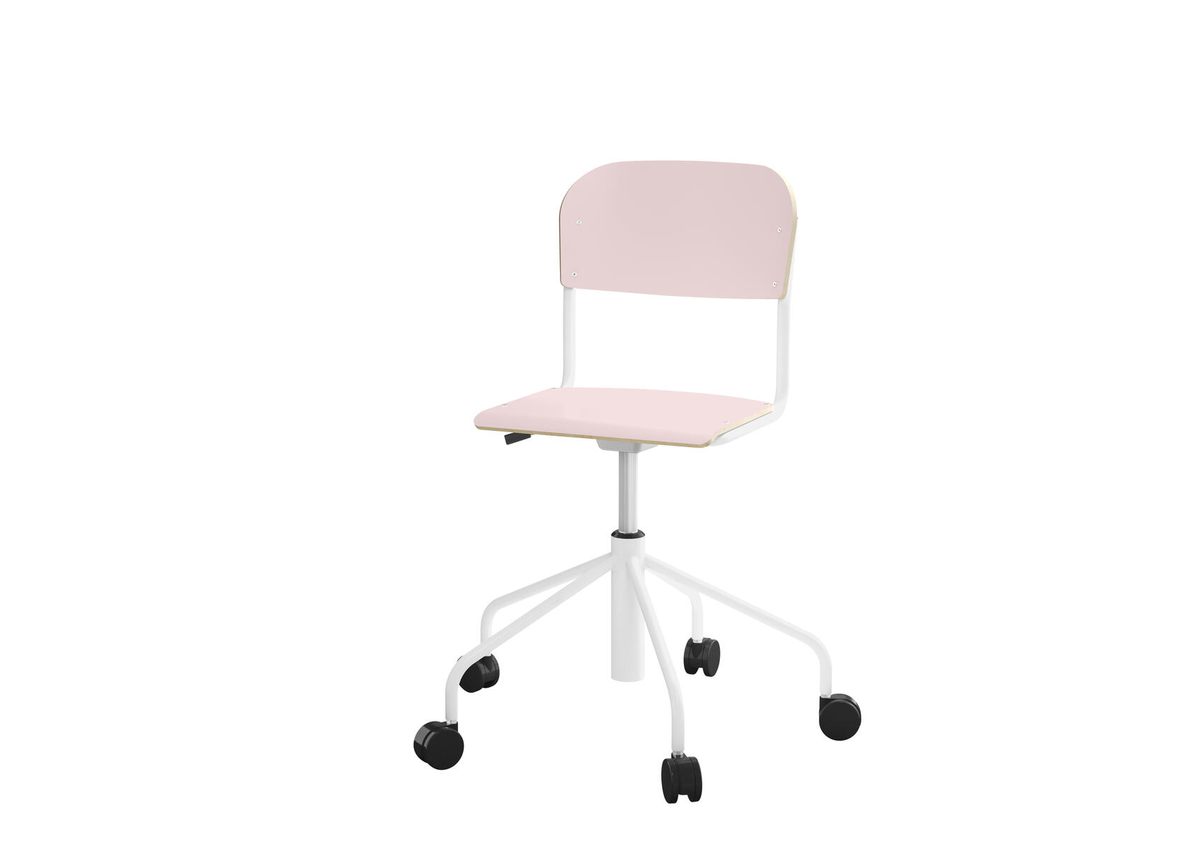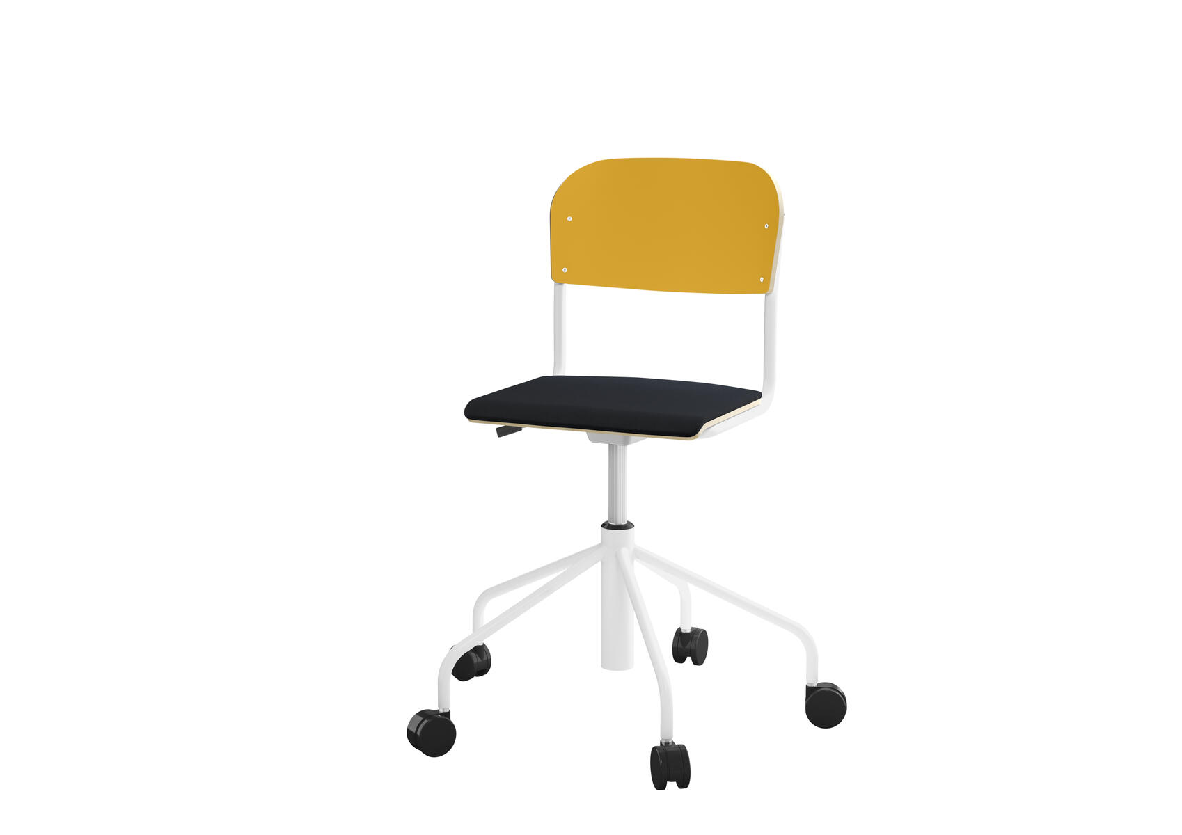Stapelbar. Ljuddämpande tassar. Reglerbart fotstöd. Sitthöjd: 65 cm. Sitsmått: B42xD39 cm. Vikt 5,3 kg. Sits och rygg i högtryckslaminat. Silverlackerat stativ, RAL 9006.