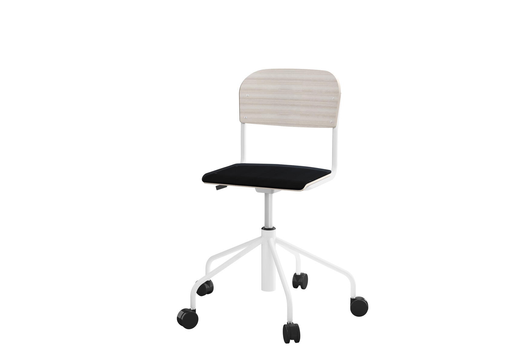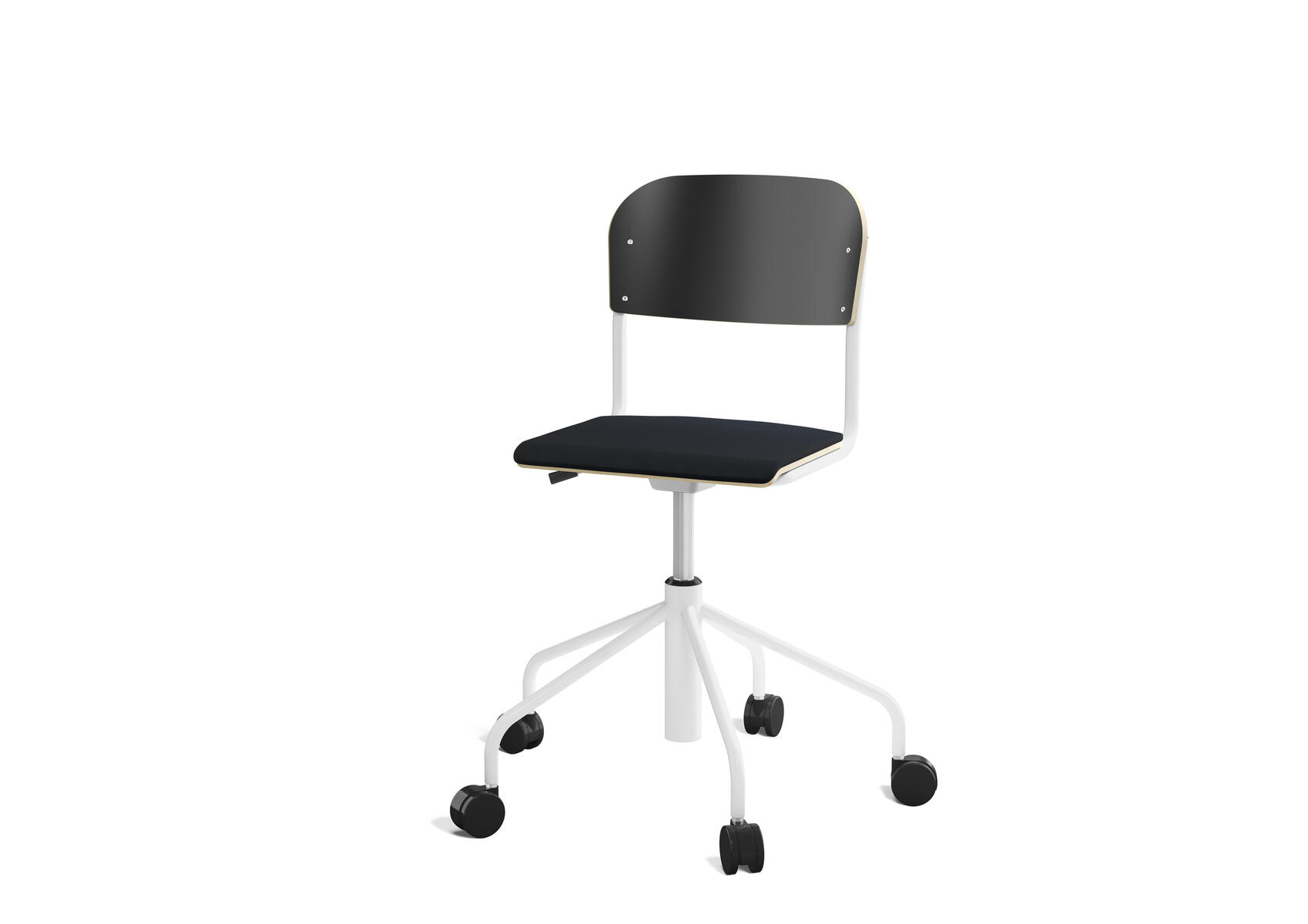 Stapelbar (max 4 st/stapel). Ljuddämpande tassar. Upphängningsbar på bord. Sitthöjd: 45 cm. Sitsmått: B42xD39 cm. Totaldjupet på stativet är 54 cm. Vikt 7,6 kg. Sits och rygg i högtryckslaminat. Svartlackerat stativ, RAL 9005.