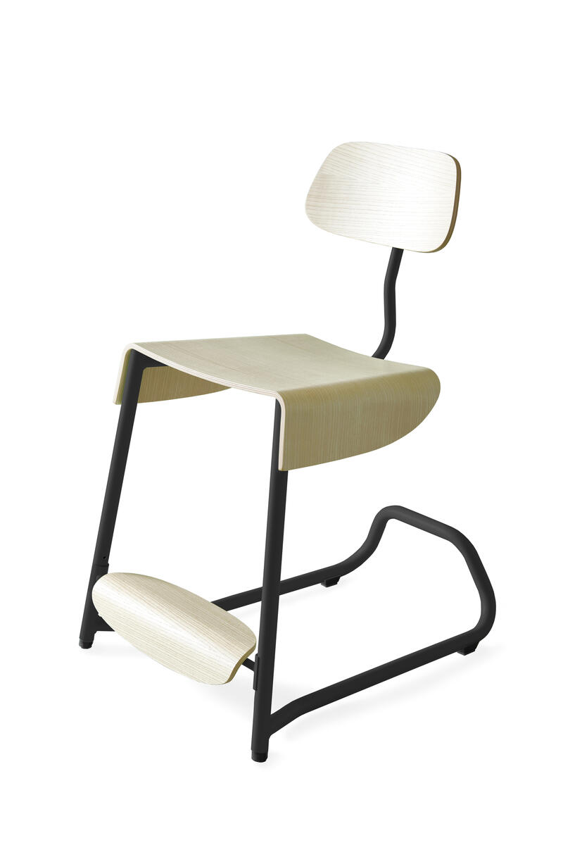 Stol Mody är en stol med möjligheter för flera olika sittställningar vilket bidrar till ett aktivt sittande. Stativ i pulverlackerat stål och sits, rygg och fotstöd i formpressad ask. Stolen uppfyller standard EN 1729-1 & 2 sizemark 4 och 5. Sitthöjder med fotstöd 34, 38 och 42 cm. Design Johan Lindstén.