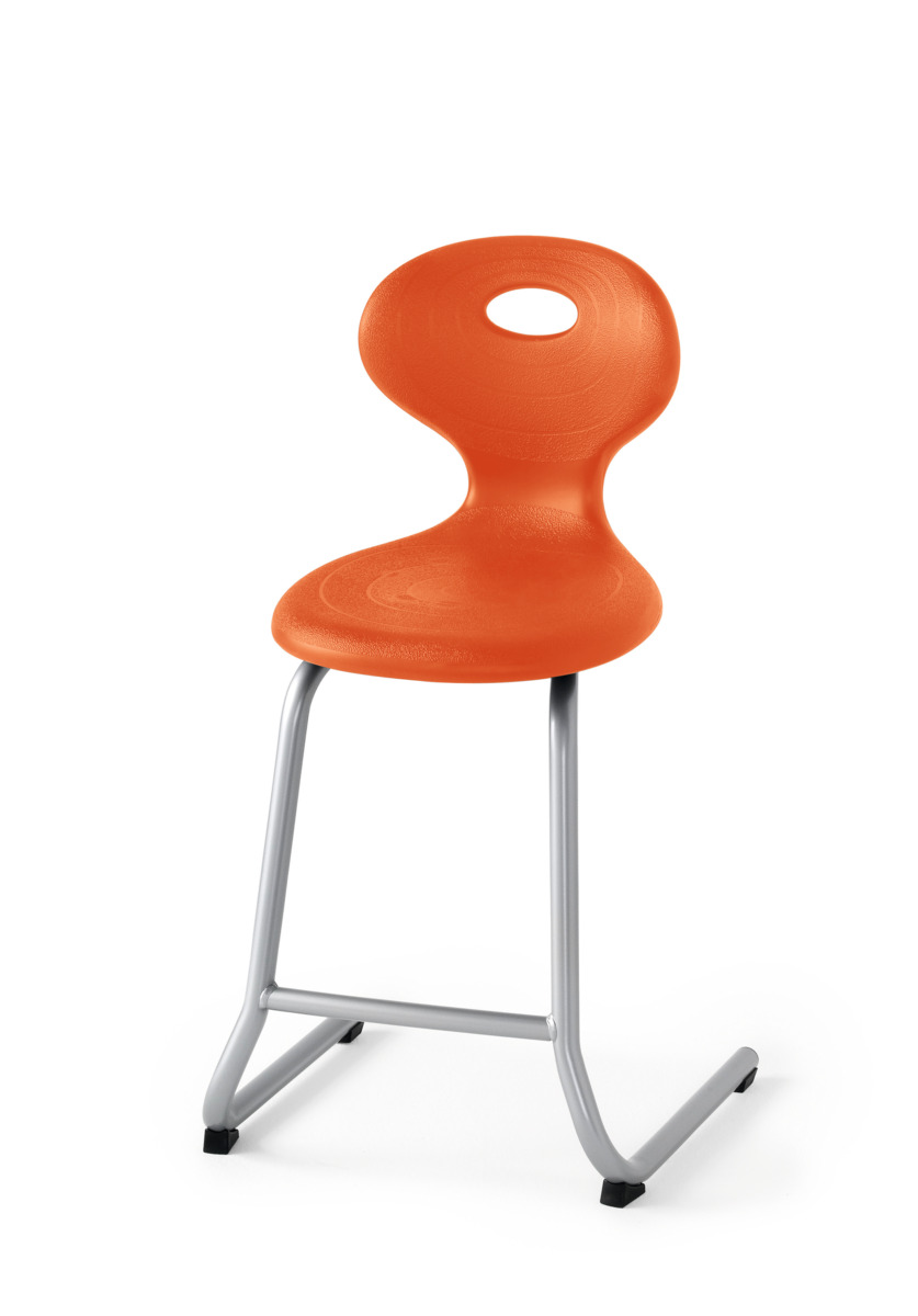 Det ergonomiska utförandet hjälper användaren till en bättre hållning och ger ett flexibelt stöd för ryggen. Stapelbar med max 4 stolar och upphängningsbar när man vänder den. Lätt att rengöra. Skal i polyuretan. Silverlackerat stativ RAL 9006. Mått: Sitthöjd 50 cm. Sitsbredd 38 cm. Sitsdjup 34 cm. Inklusive justerbart fotstöd.