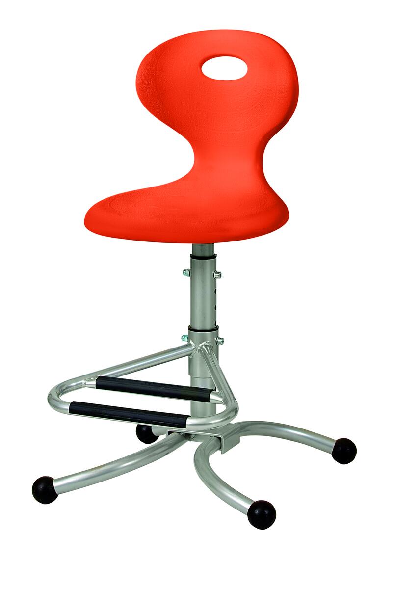 Sitsen är försedd med inbyggd vippfunktion som automatiskt varierar sittställningen. Lämplig för låg- och mellanstadiet. Ställbar sitthöjd 50-65 cm. Sitsmått: B34,5xD35 cm. Sits och fotstöd kan ej rotera. Sits och rygg i formsprutad återvinningsbar polypropen. Stativfärg: silver RAL, 9006.