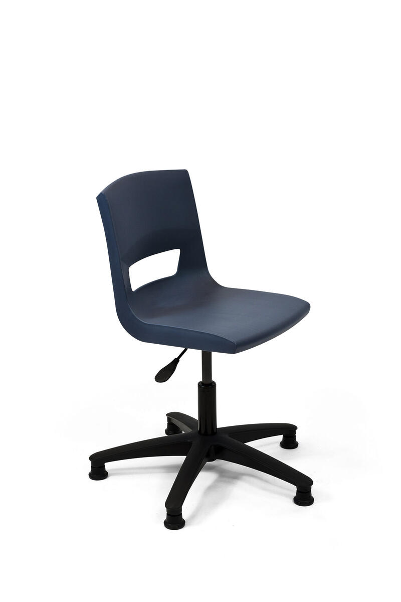 Det ergonomiska utförandet hjälper användaren till en bättre hållning och ger ett flexibelt stöd för ryggen. Lätt att rengöra. Skal i polyuretan. Svart nylonkryss med glidfötter. Mått: Sitthöjd 50-70. Sitsbredd 44 cm. Sitsdjup 40 cm.