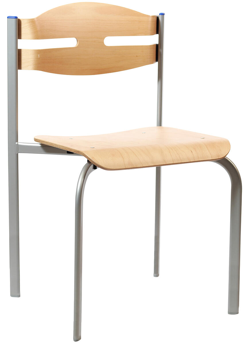 Sits och rygg i faner. Stativ i RAL 9006. Stapelbar.